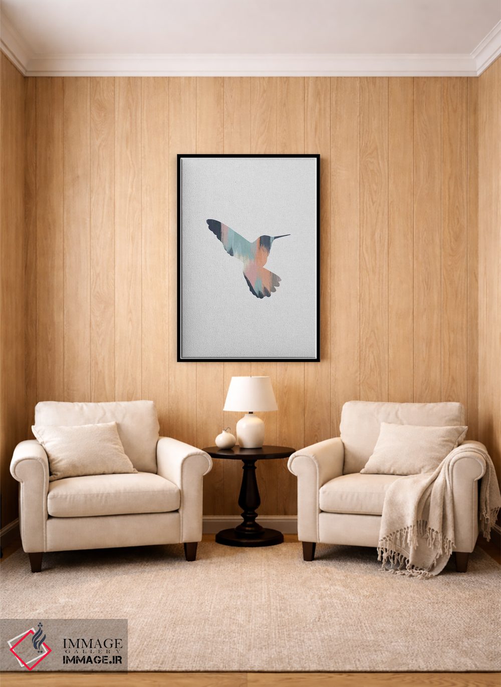 برای دیوارهای ساده، «مرغ مگسخوار پاستلی ۲» اثرِ «اورارا استودیو (استودیو هنری)» بافت و جزئیات را طوری نشان میدهد که نگاه میماند؛ برای کافههای کوچک و صمیمی انتخابی خوشسلیقه است. با قاب چوبی یا مشکی، حس مرتبتری پیدا میکند.