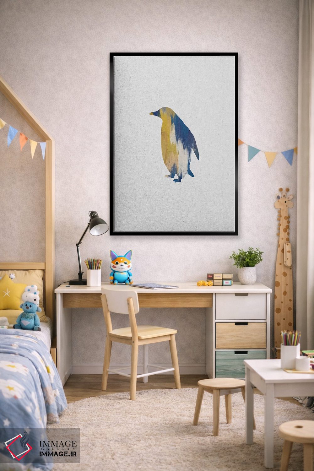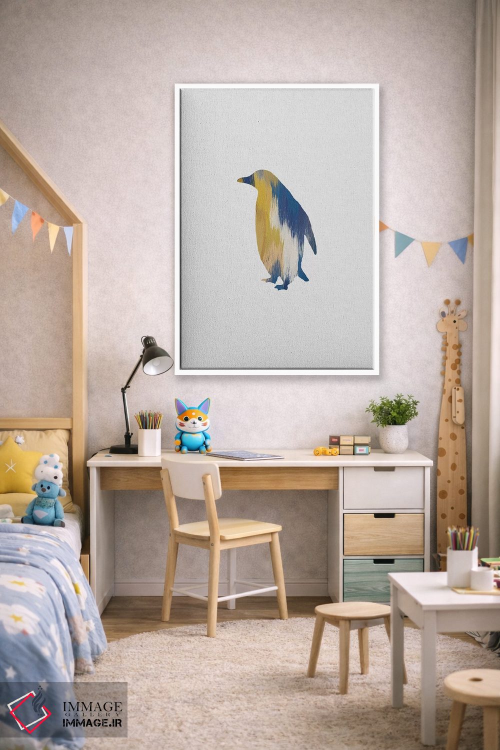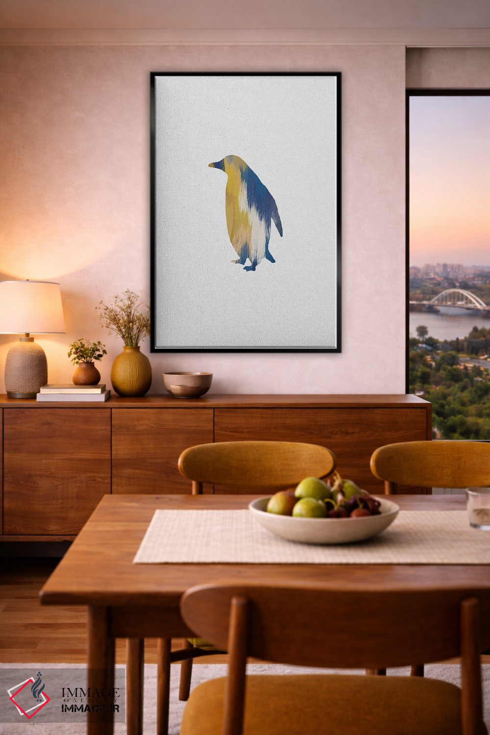 برای اتاقی که به یک عنصر دوستداشتنی نیاز دارد، «پنگوئن آبی و زرد» اثرِ «اورارا استودیو (استودیو هنری)» مثل یک امضای بامزه اما متین عمل میکند؛ برای فضاهای روستیک یا بوهو انتخابی خوشسلیقه است. به دیوار، قصه میدهد—اما قصهای آرام و شیک.