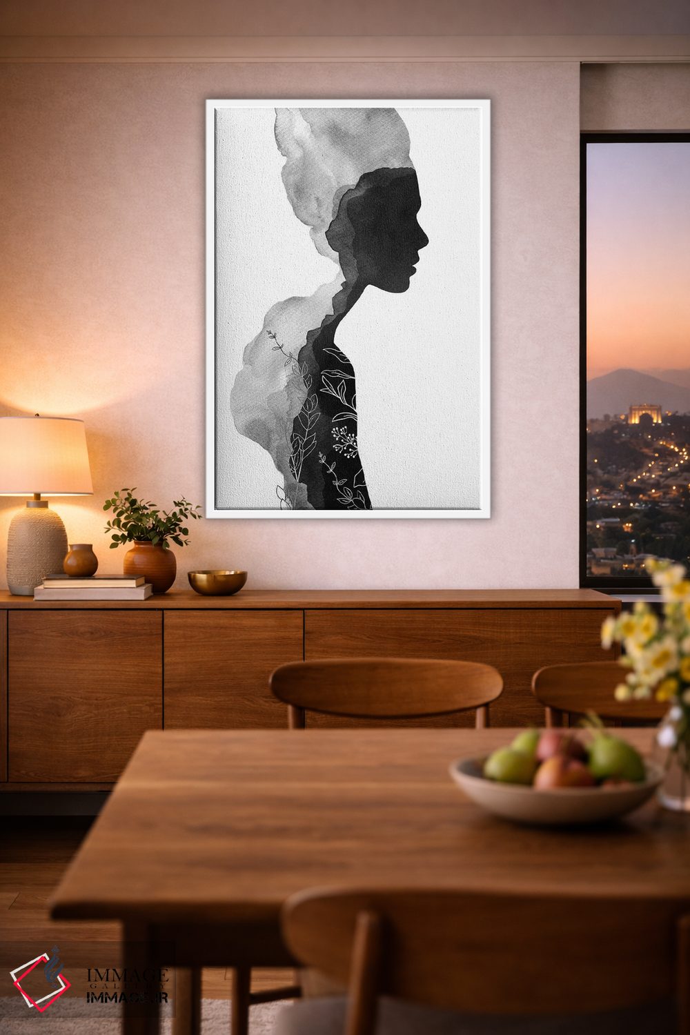 براساس پالت خنثی اثر، قاب مشکی مات (فریم باریک) پیشنهاد اول است و سفید مات (فریم باریک) مکمل. برای سفارشهای پروژهای با ابعاد و قابهای اختصاصی با ایماژ در تماس باشید.