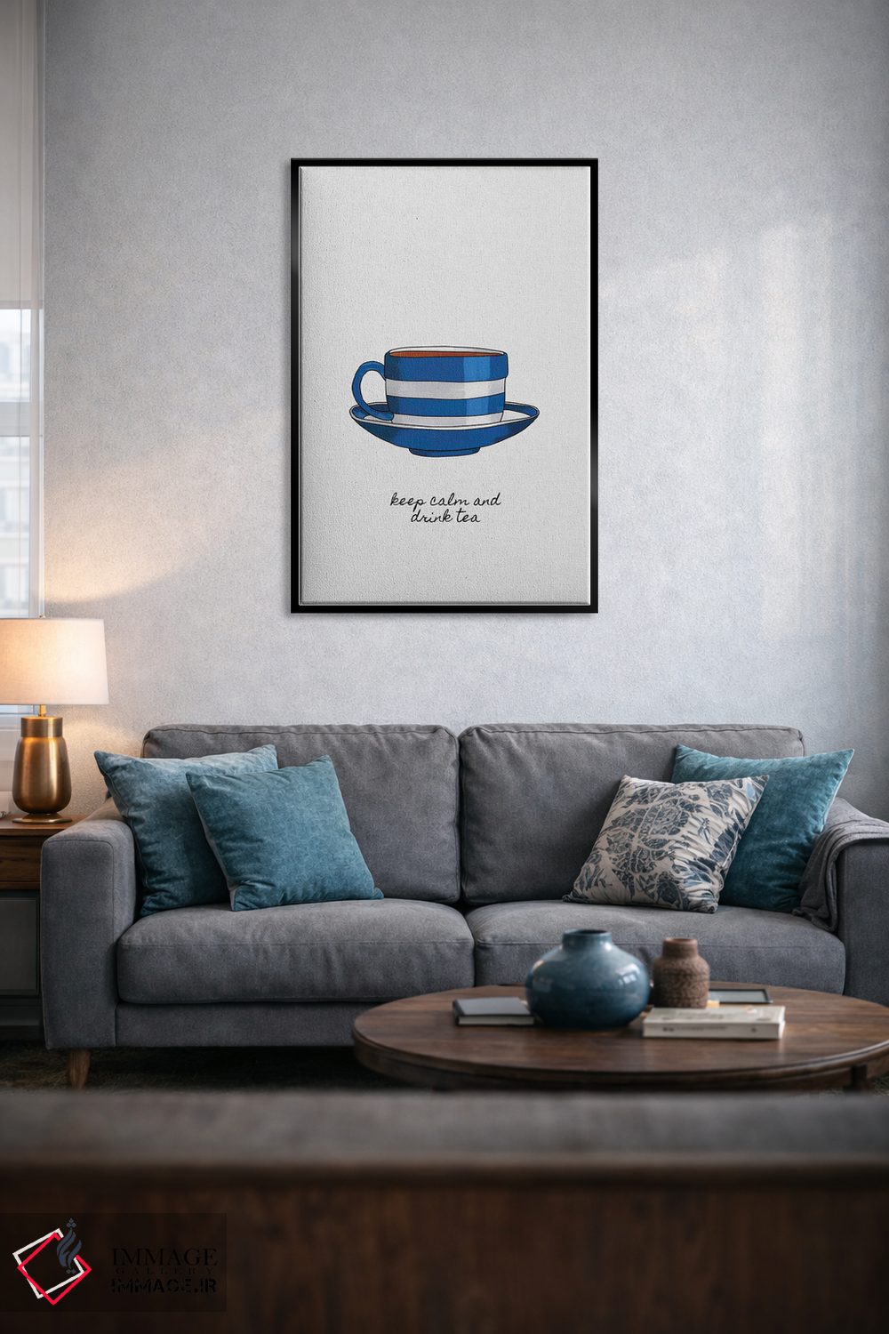 یک عنصر کوچک به رنگ آبی کافی است؛ در کوسن یا پاف هوشمندانه استفاده کنید تا حس طراحی فضا کاملتر شود. انتخاب قاب هم میتواند این اکسنت را تقویت کند.