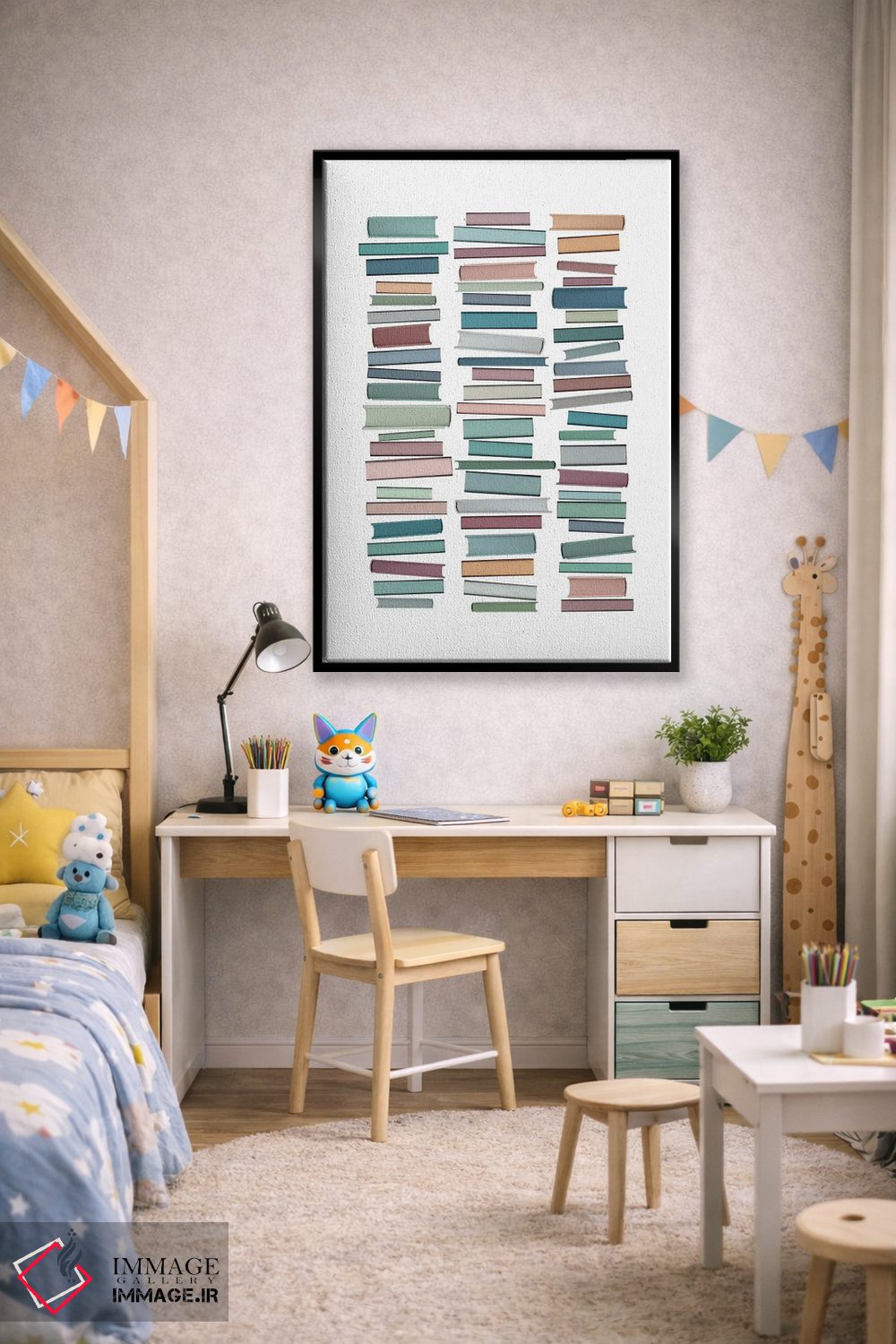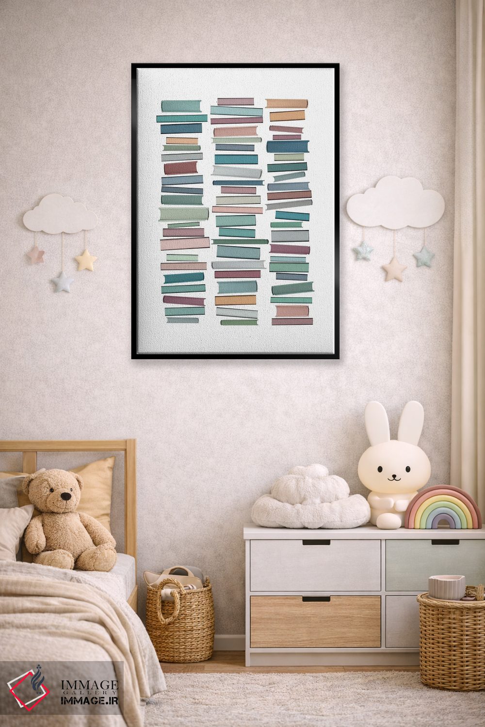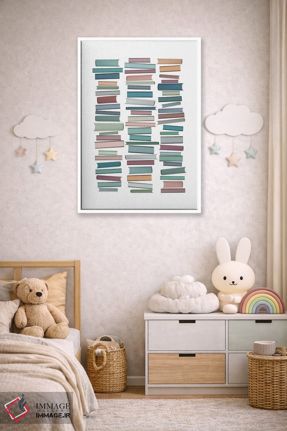 تابلو مینیمال کتاب های پاستلی اثر اورارا استودیو