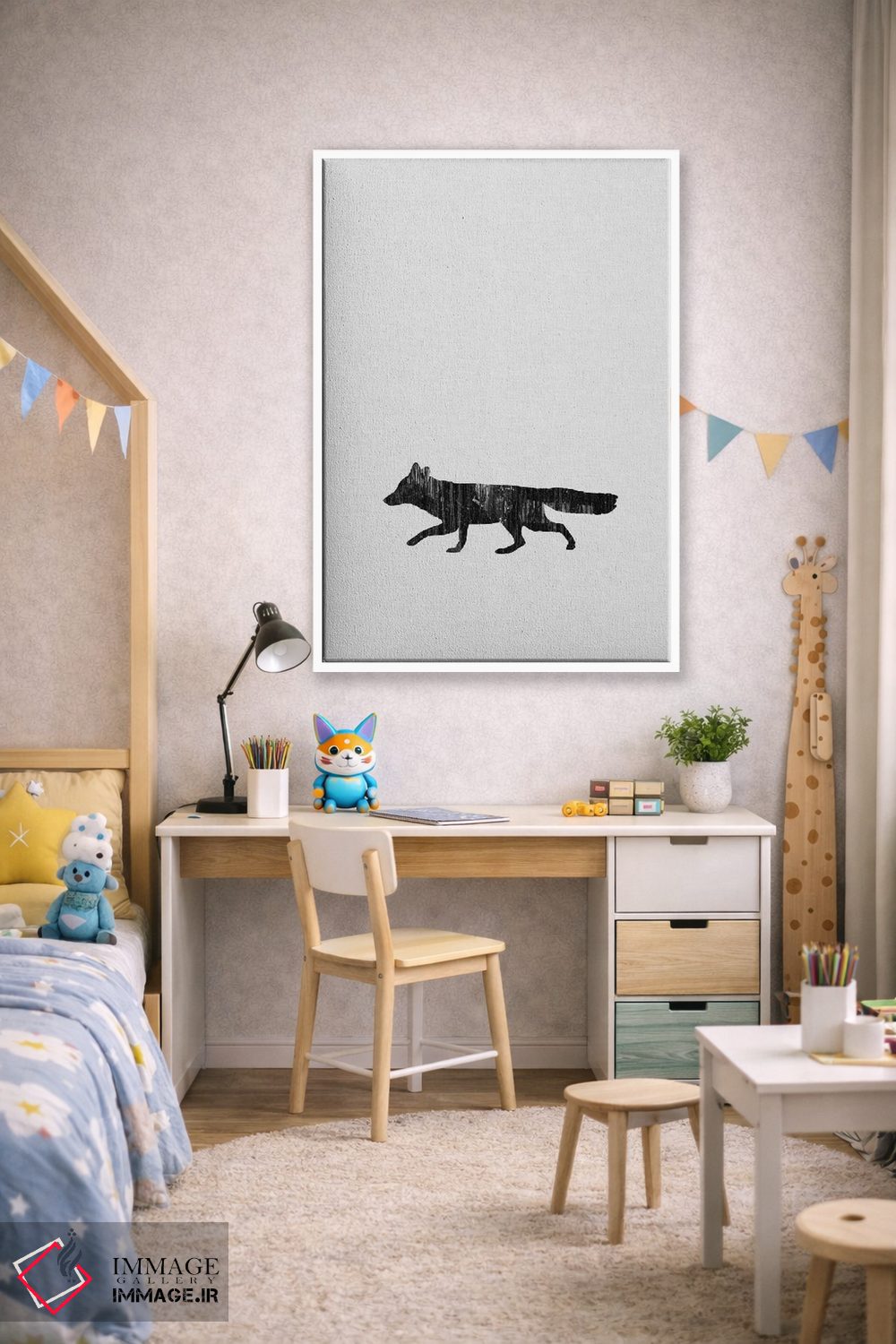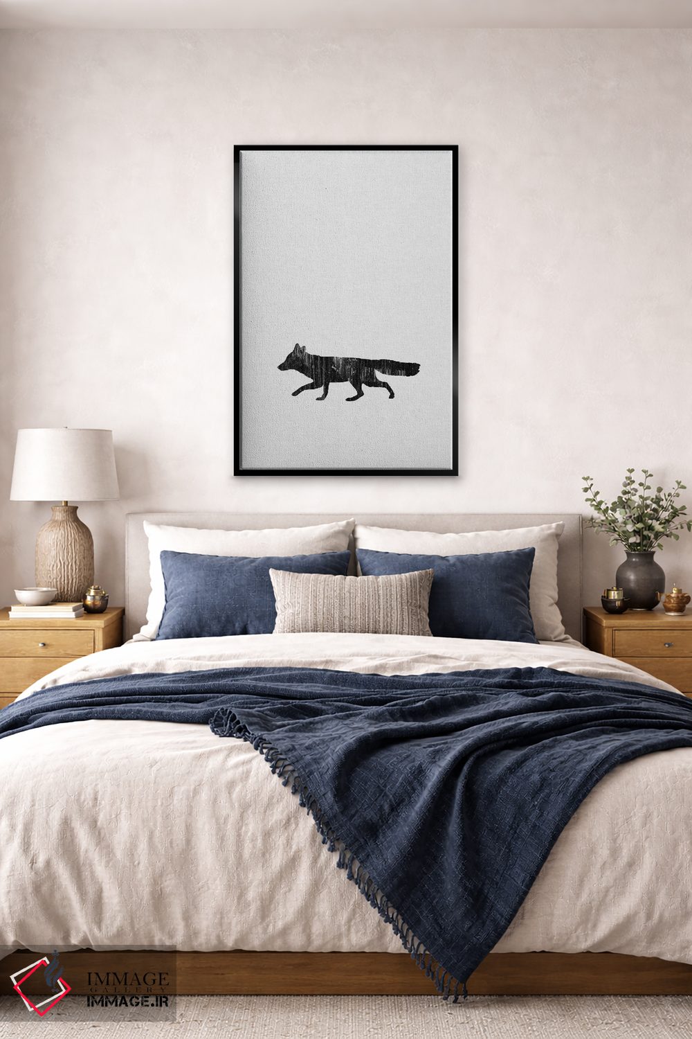 اگر میخواهید دیوار کمی سرزندگیِ محترمانه داشته باشد، «روباه سیاه و سفید» اثرِ «اورارا استودیو (استودیو هنری)» در کنار رنگهای خنثی، تضاد دلچسبی میسازد، برای دکورهای مدرن و مینیمال گزینهٔ مناسبیست. به دیوار، قصه میدهد—اما قصهای آرام و شیک.