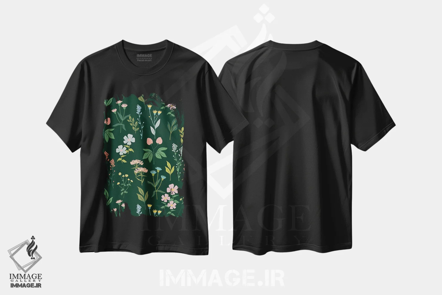 تیشرت مشکی طرح دار بوتانیکا، تزئینی اثر کارولین آلفردز | فروشگاه ایماژ