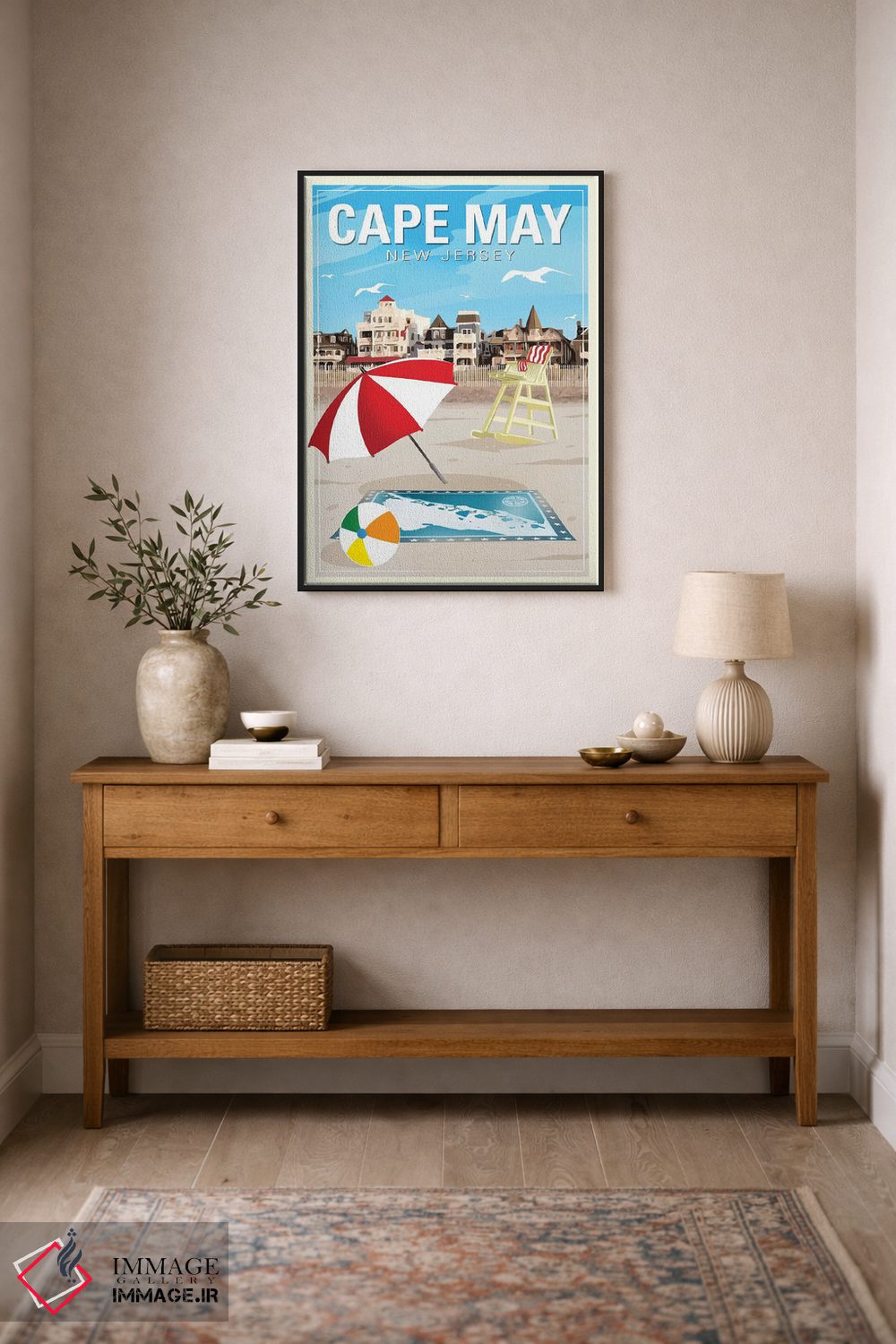 براساس پالت ترکیبی اثر، قاب تیک گرم (چوبی) پیشنهاد اول است و مشکی مات (فریم متوسط) مکمل. برای سفارشهای پروژهای با ابعاد و قابهای اختصاصی با ایماژ در تماس باشید.
