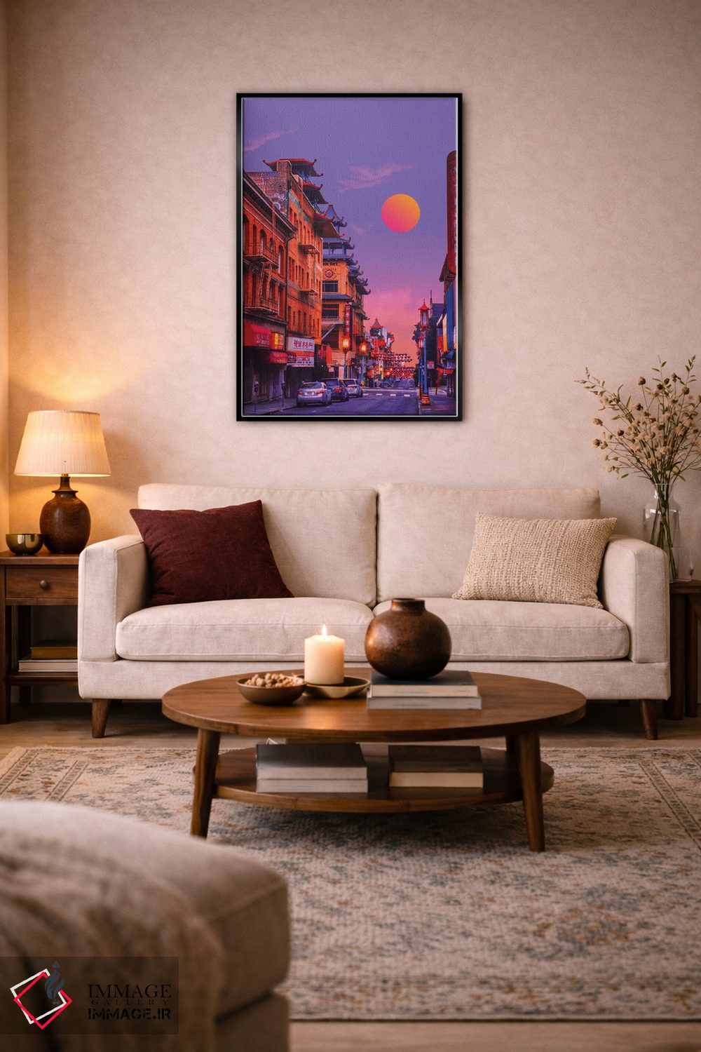 بوم گالری ایماژ نسخهی چیدماناتیوِ حرفهای از یک اثر هنری است؛ روی کنواس بدون اسید با بافت ظریف و یکنواخت با اجرای چاپ هنری جیکلی (Giclée) برای آرتپرینتهای جدی و جوهرهای آرشیوی Epson UltraChrome HDR برای بازنمایی بهتر تونهای حساس؛ روی دیوار، کار یکدستتر و خوشکیفیتتر دیده میشود.