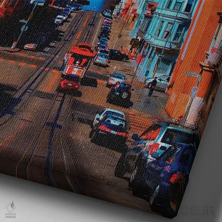 تابلو دکوراتیو شهر رنگین اثر دانر اوروزکو - نمای نزدیک بافت بوم