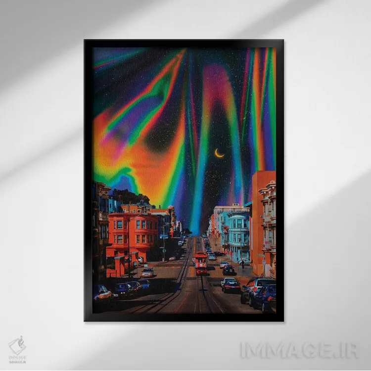 تابلو دکوراتیو شهر رنگین اثر دانر اوروزکو - نمای قاب‌دار مشکی