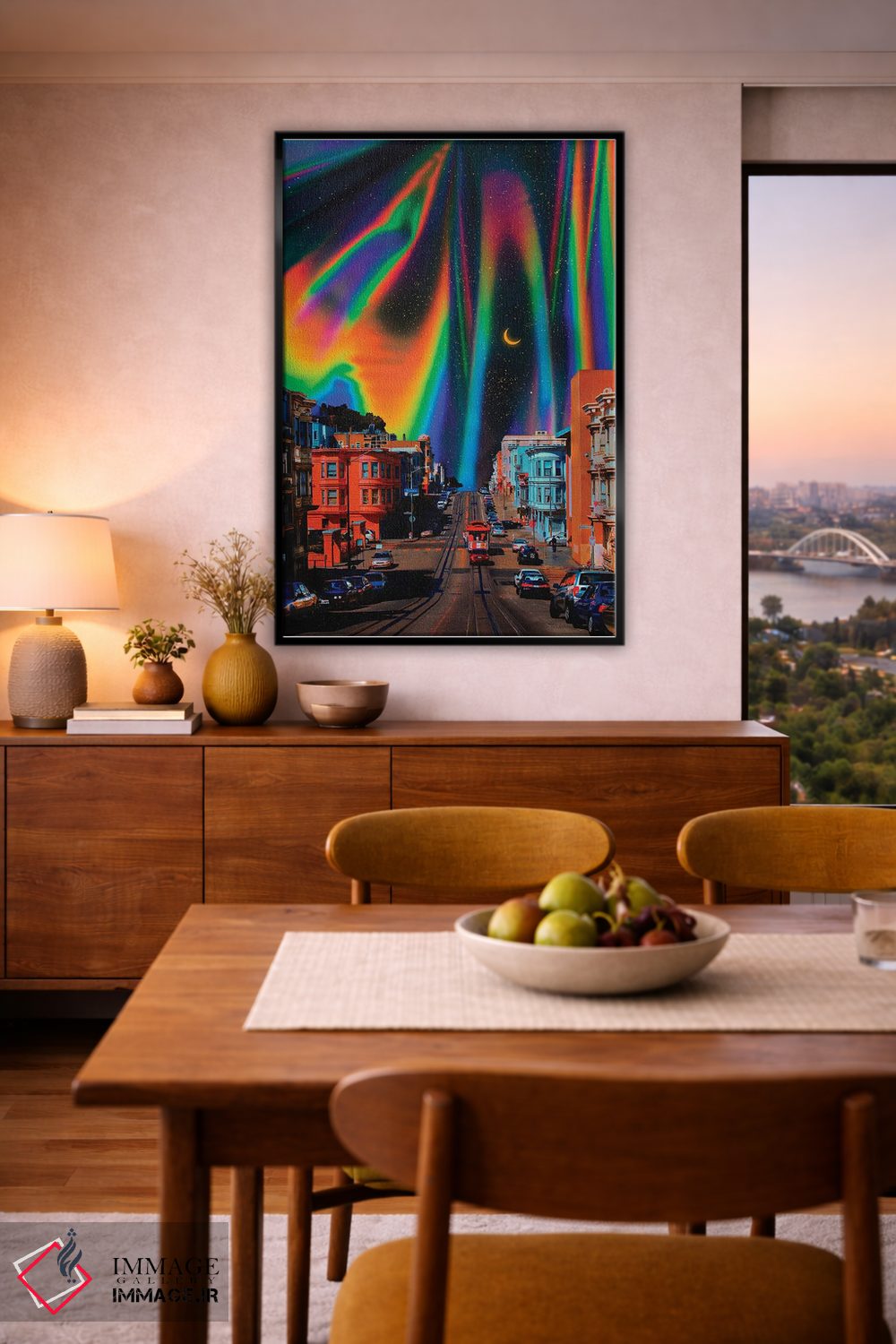 تابلو دکوراتیو شهر رنگین اثر دانر اوروزکو - نمای روبه‌رو روی دیوار