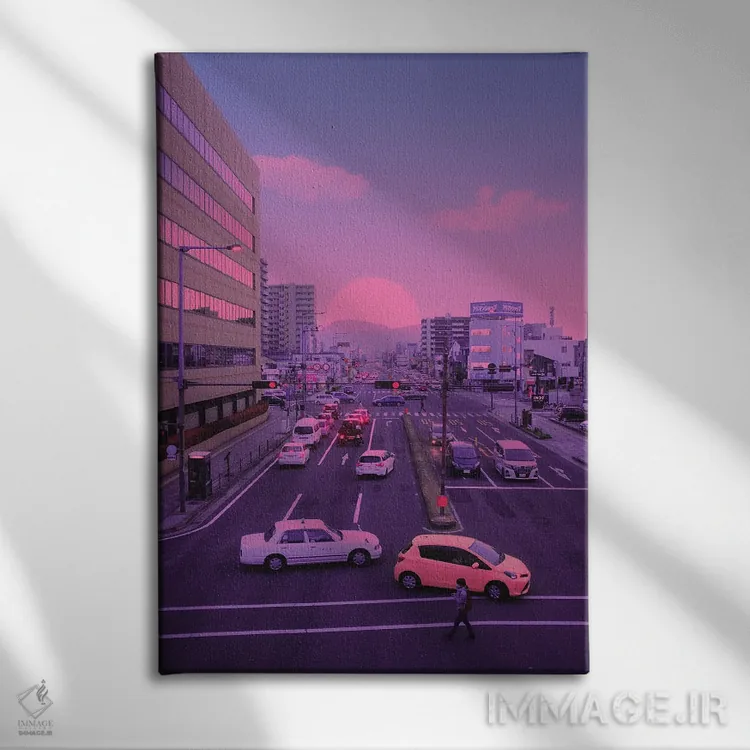 تابلو دکوراتیو غروب ژاپنی اثر دانر اوروزکو - نمای نزدیک بافت بوم