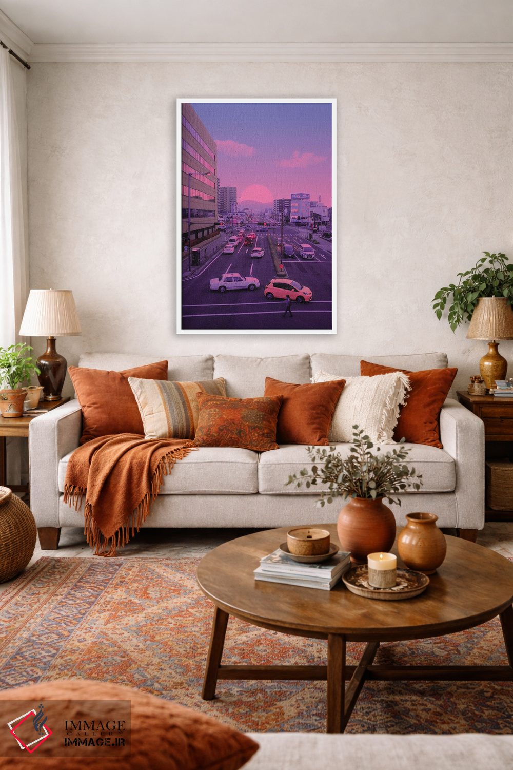 تابلو دکوراتیو غروب ژاپنی اثر دانر اوروزکو - نمای روبه‌رو روی دیوار