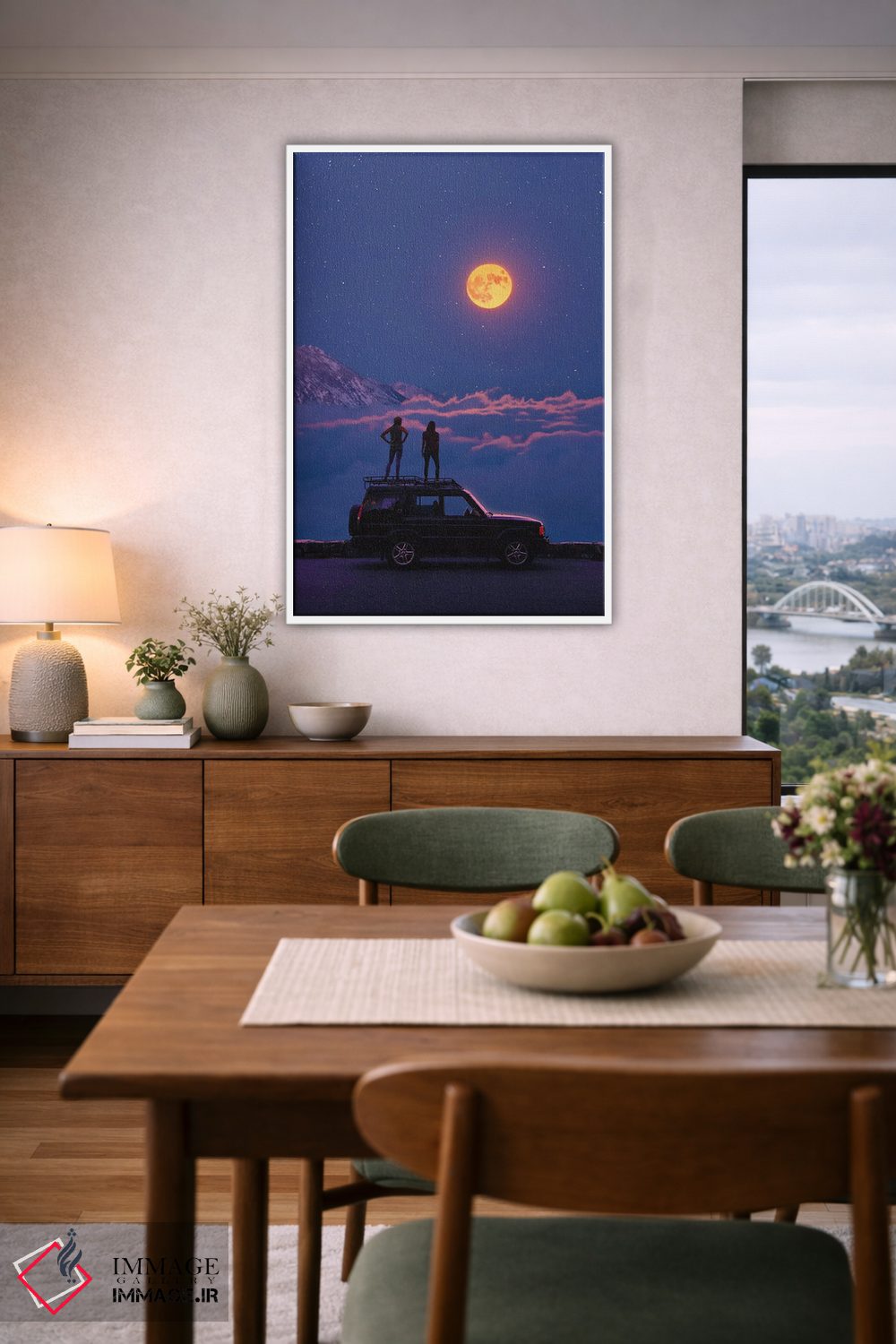 این تصویر دیواری با موضوعِ این اثر و حس پرداختِ هنری، برای فضاهای پذیرایی و اتاق خواب همزمان مناسب است—بیسروصدا اما تاثیرگذار.