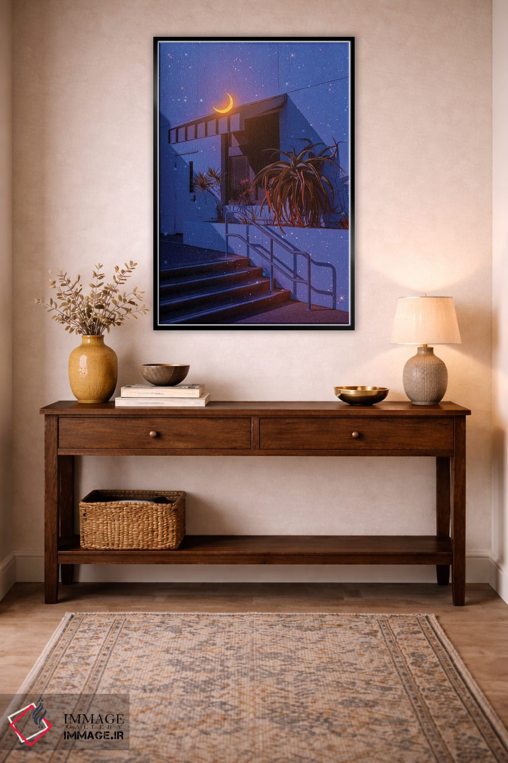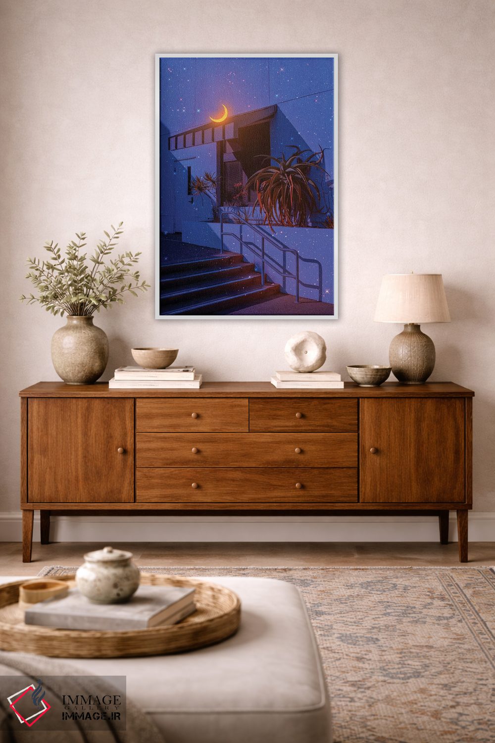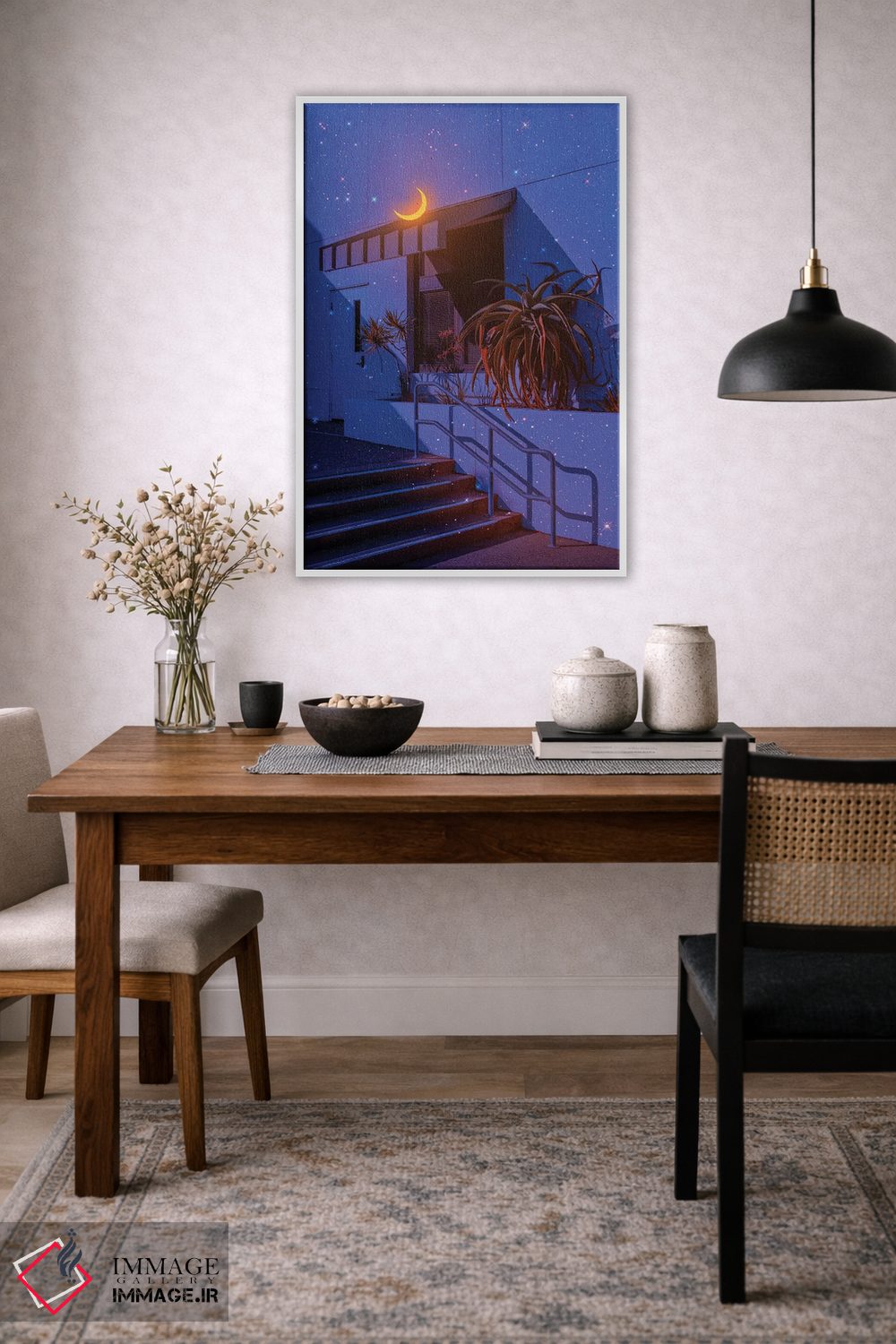 ساختار بوم گالری ایماژ طوری است که اثر روی دیوار «پرداختشده» و حرفهای دیده شود—نه پرزرقوبرقِ بیپایه؛ بلکه دقیق و خوشپرداخت. بافت ظریف کنواس باعث میشود حس اثر هنری را در نگاه نزدیک نگه میدارد بهخصوص وقتی نور موضعی ملایم داشته باشید. در ارائهی آماده نصب، اثر را مرتب و یکدست روی دیوار مینشاند و برای محیطهای رسمیتر هم انتخاب مطمئنی است. حاصل کار، یک تابلو خوشنشین است که هم از دور اثرگذار است و هم از نزدیک خوشخوان؛ و اگر بخواهید، میتوان چیدمان را برای گالریوال هم پیشنهاد داد.