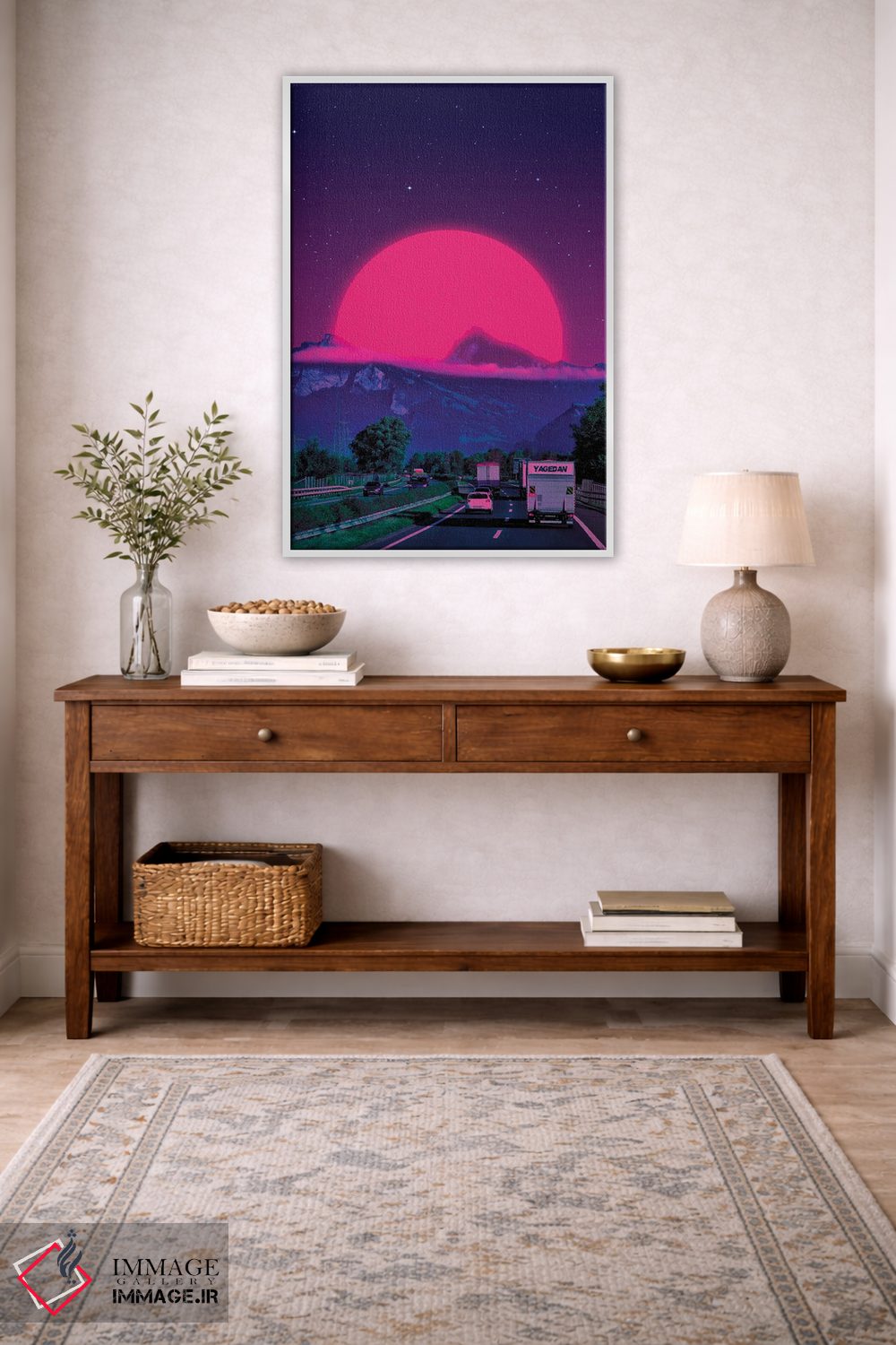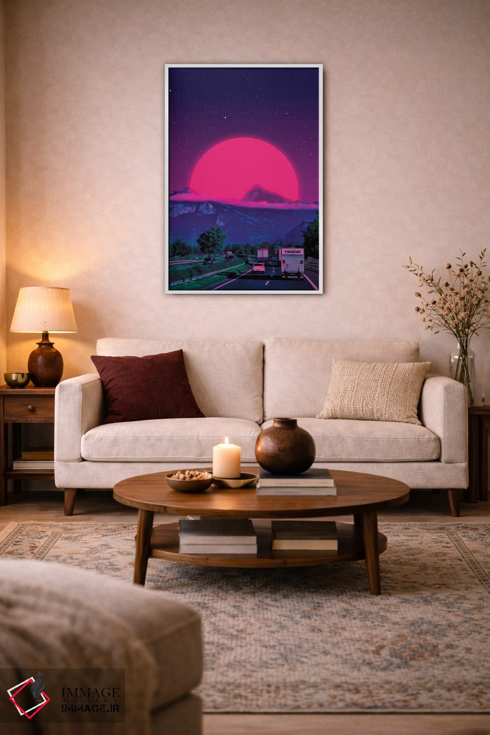 طراحی بوم گالری ایماژ بهگونهای است که اثر روی دیوار «پرداختشده» و حرفهای دیده شود—نه پرزرقوبرقِ بیپایه؛ بلکه دقیق و خوشپرداخت. بافت ظریف کنواس کمک میکند حس اثر هنری را در نگاه نزدیک نگه میدارد و نتیجه را یکدستتر میکند. قابپذیری کمک میکند هماهنگی قاب با پالت رنگ جلوه را تقویت میکند و نتیجه را یکدستتر میکند. حاصل کار، یک تابلو خوشنشین است که هم از دور اثرگذار است و هم از نزدیک خوشخوان؛ برای هدیهی هنری هم انتخاب محترمانهای است.