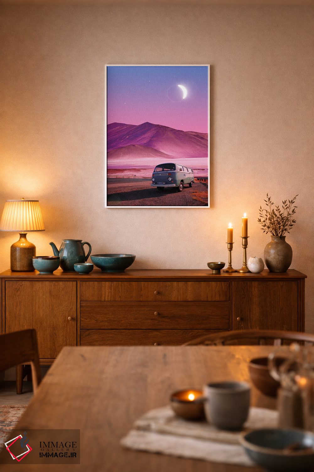 براساس پالت ترکیبی اثر، قاب تیک گرم (چوبی) پیشنهاد اول است و مشکی مات (فریم متوسط) مکمل. برای سفارشهای پروژهای با ابعاد و قابهای اختصاصی با ایماژ در تماس باشید.