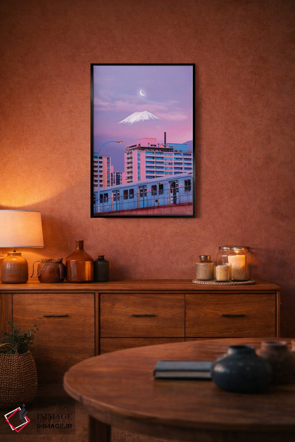 براساس پالت ترکیبی اثر، قاب تیک گرم (چوبی) پیشنهاد اول است و مشکی مات (فریم متوسط) مکمل. برای سفارشهای پروژهای با ابعاد و قابهای اختصاصی با ایماژ در تماس باشید.