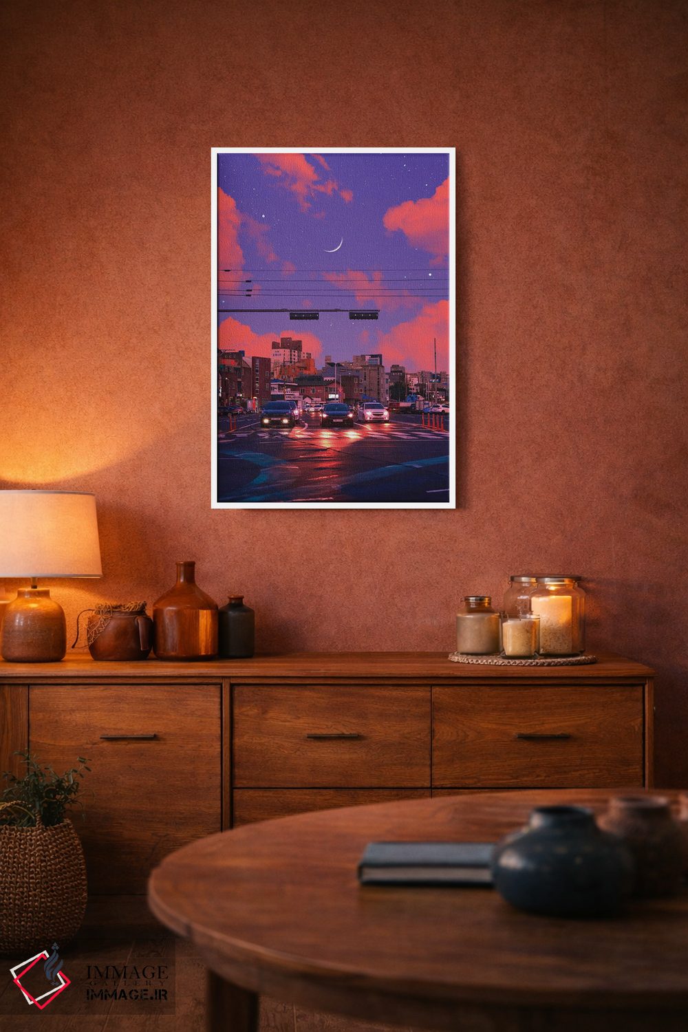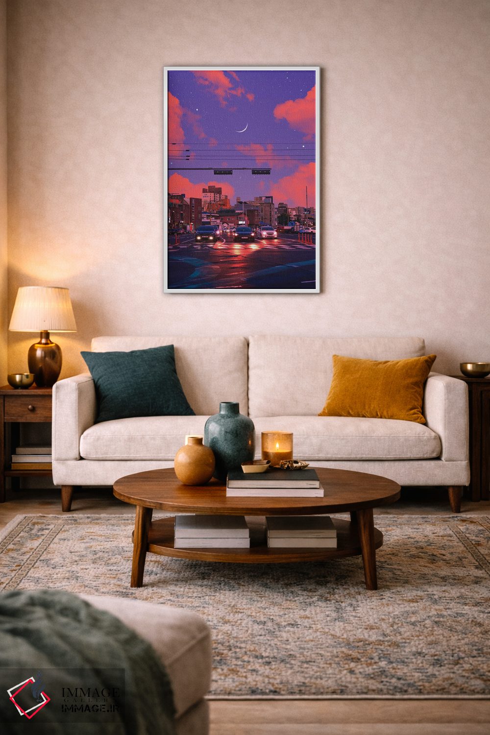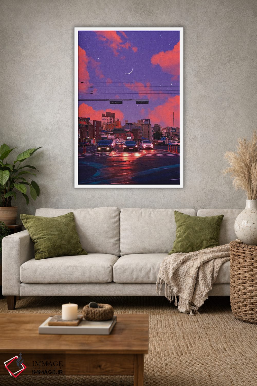 بوم گالری ایماژ طوری طراحی شده که اثر روی دیوار «پرداختشده» و حرفهای دیده شود—نه پرزرقوبرقِ بیپایه؛ بلکه دقیق و خوشپرداخت. بافت ظریف کنواس کمک میکند حس اثر هنری را در نگاه نزدیک نگه میدارد. با بافت ظریف کنواس، حس اثر هنری را در نگاه نزدیک نگه میدارد و نتیجه را یکدستتر میکند. حاصل کار، یک تابلو خوشنشین است که هم از دور اثرگذار است و هم از نزدیک خوشخوان؛ در فضاهای کاری، این نظم بصری خیلی به چشم میآید.