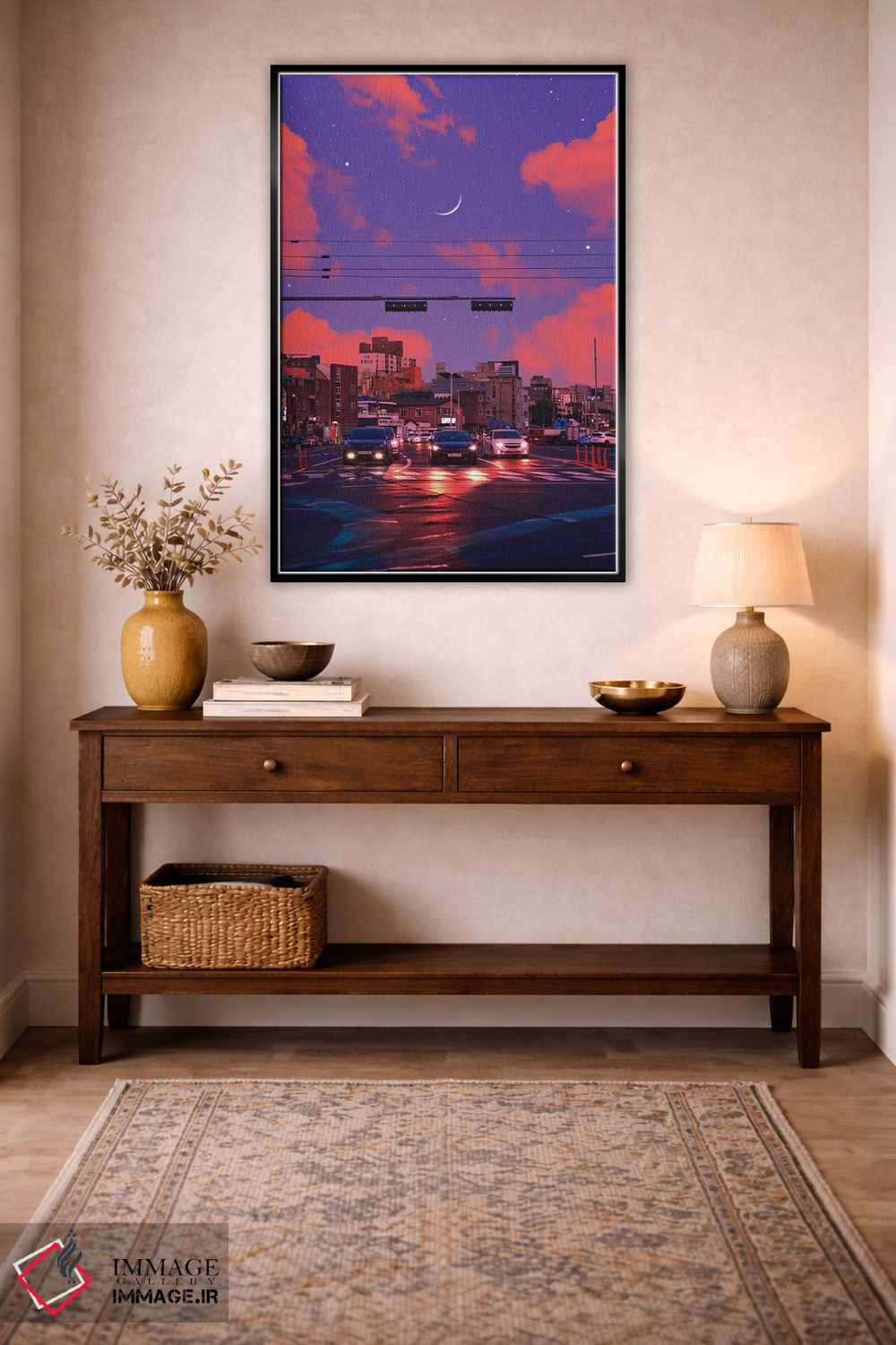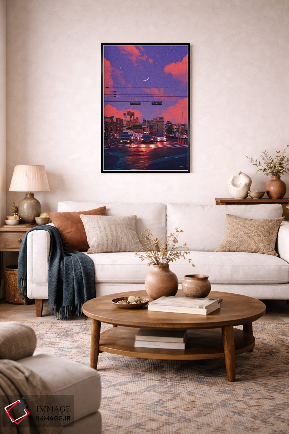 بوم گالری ایماژ نسخهی چیدماناتیوِ حرفهای از یک اثر هنری است؛ روی کنواس بدون اسید با بافت ظریف و یکنواخت با فرآیند چاپ حرفهای جیکلی (Giclée) و کنترل دقیق تونها با رنگدانههای آرشیوی و سیستم رنگ دقیق، رنگها روی دیوار متعادلتر و سایهها جزئیتر دیده میشوند. تابلو پس از آمادهسازی روی کلاف کشیده میشود و نصب آن ساده و بیدردسر است.
