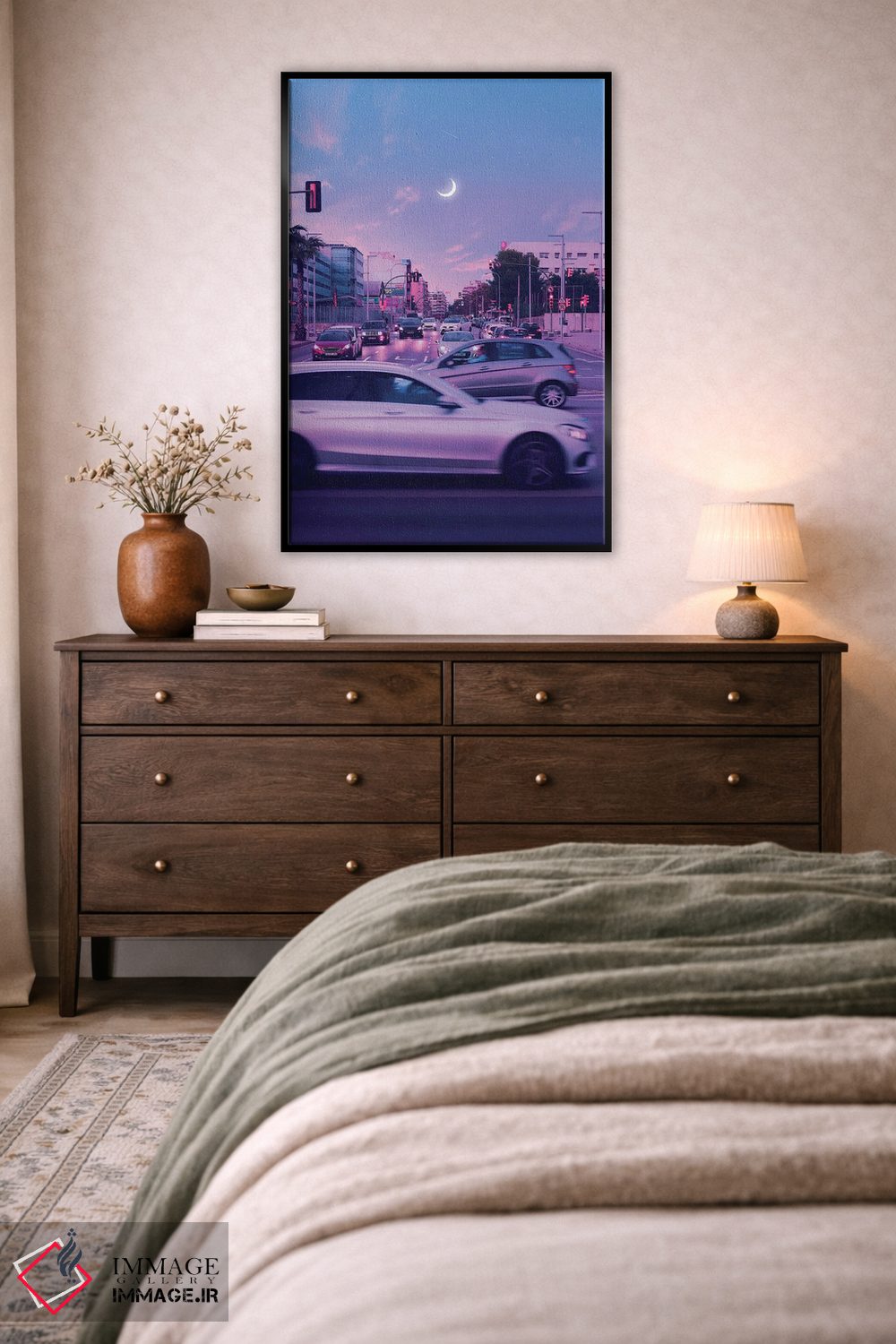 در یک جمله: برای اینکه اثر در فضا «گرم و صمیمی» دیده شود، نور موضعی ملایم نتیجه را بهتر نشان میدهد و جلوهی گالریوار بیشتری میدهد. برای انتخاب قابهای متنوعتر، میتوانید هماهنگ کنید برای اینکه بهترین گزینه را پیدا کنید.