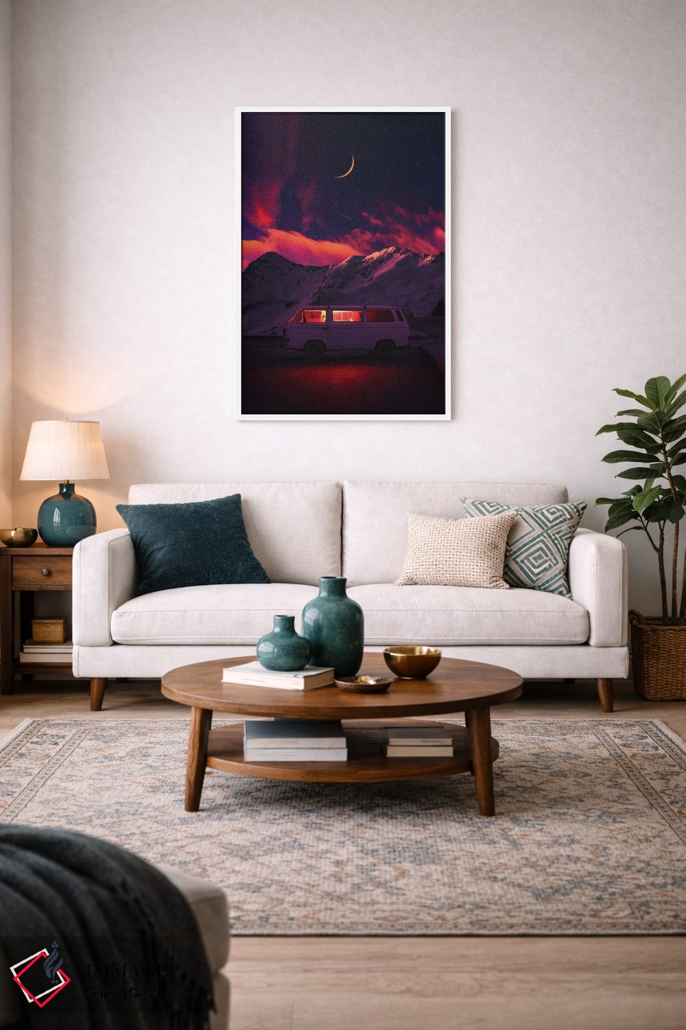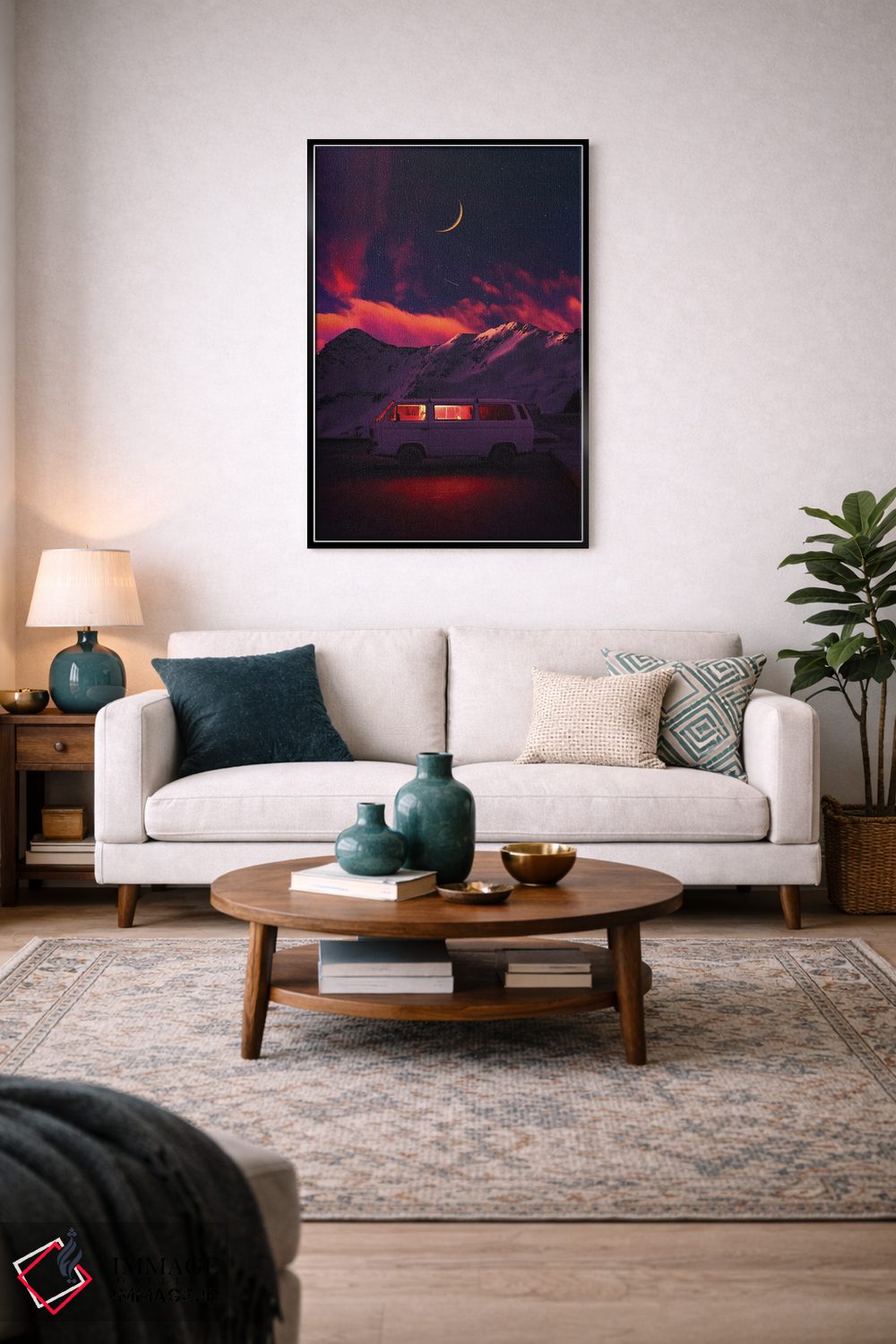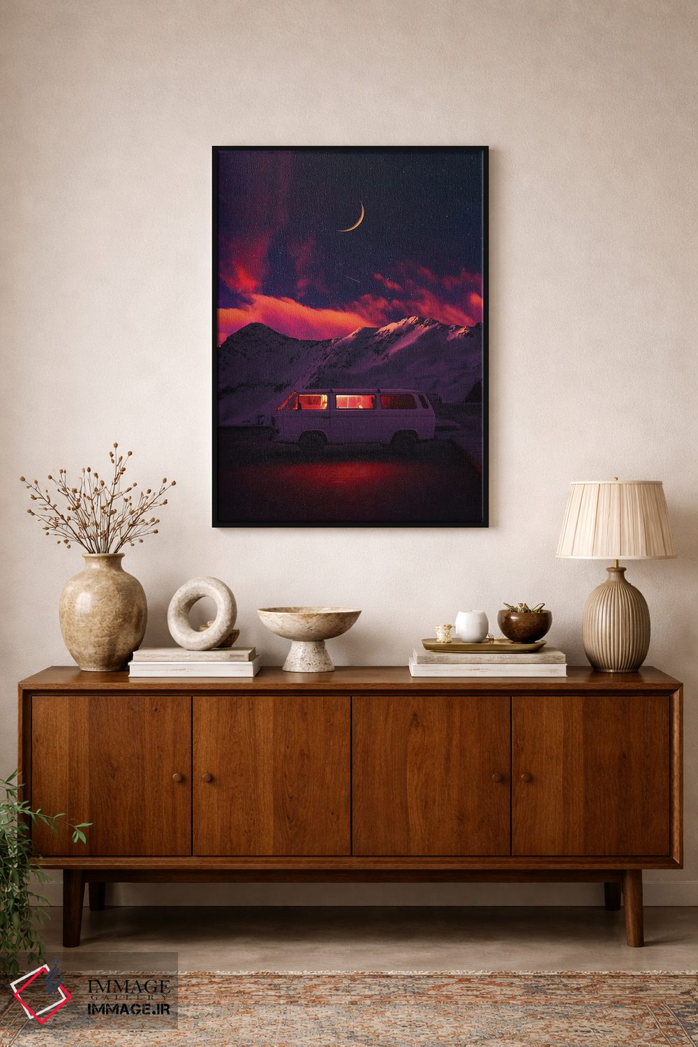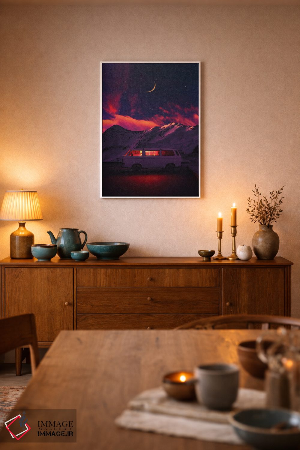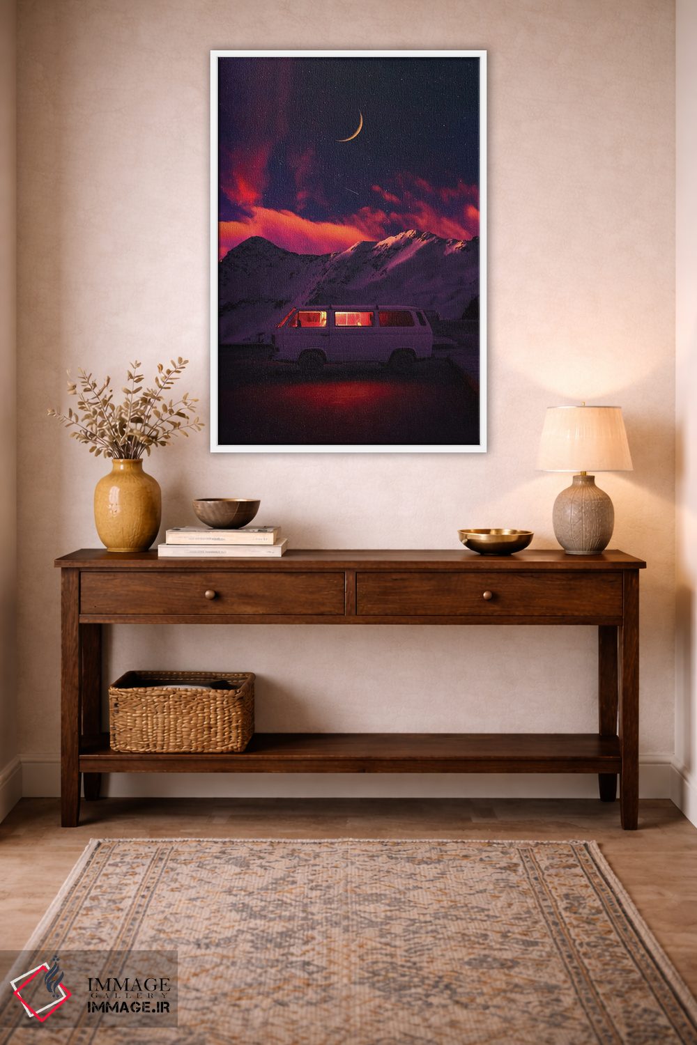 طراحی بوم گالری ایماژ بهگونهای است که اثر روی دیوار «پرداختشده» و حرفهای دیده شود—نه پرزرقوبرقِ بیپایه؛ بلکه دقیق و خوشپرداخت. بافت ظریف کنواس کمک میکند حس اثر هنری را در نگاه نزدیک نگه میدارد و در دکورهای مدرن و کمینهگرا خیلی خوب مینشیند. در ارائهی آماده نصب، اثر را مرتب و یکدست روی دیوار مینشاند و نتیجه را یکدستتر میکند. حاصل کار، یک تابلو خوشنشین است که هم از دور اثرگذار است و هم از نزدیک خوشخوان؛ اگر محیط مینیمال است، همین پرداخت تمیز کافی است.