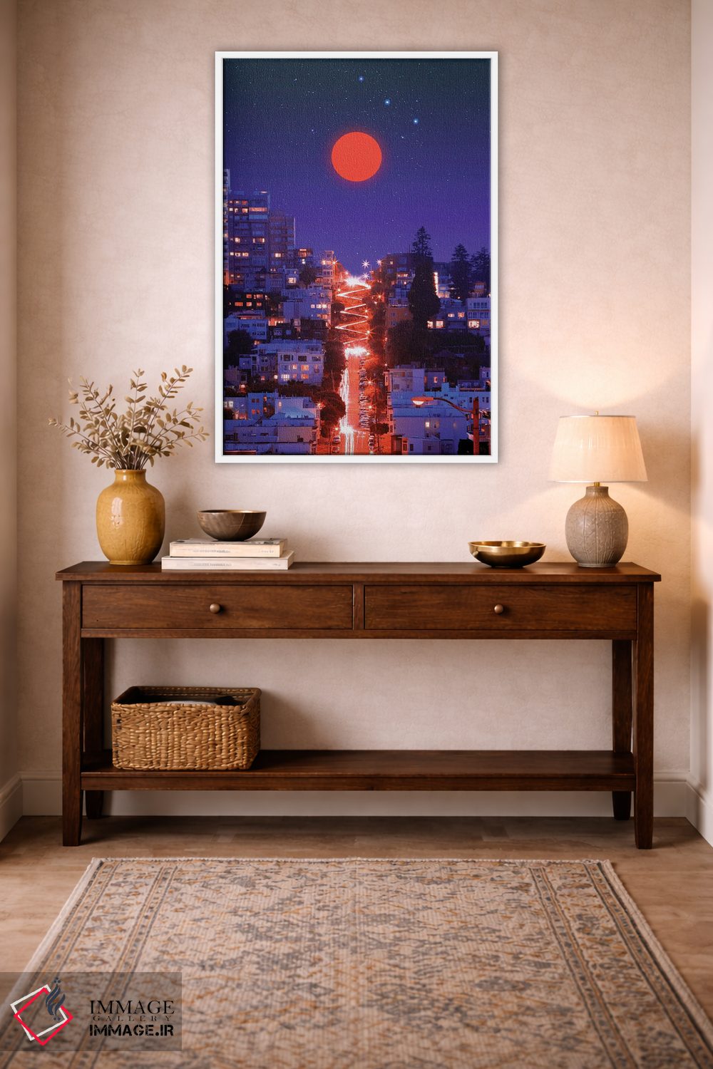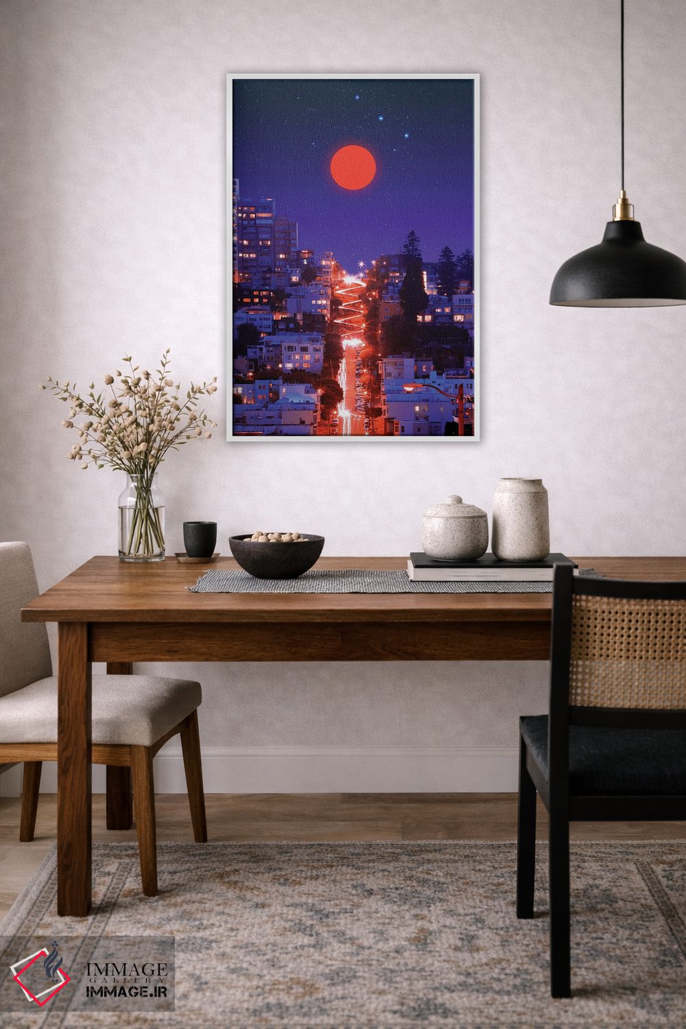 بوم گالری ایماژ نسخهی دکوراتیوِ سطحبالا از یک اثر هنری است. روی کنواس سفیدِ یکدست و بدون اسید با اجرای چاپ هنریِ دقیق به روش جیکلی (Giclée) با سیستم رنگ Epson UltraChrome HDR برای نیمسایههای نرمتر و سایههای جزئیتر؛ حس نهایی نزدیکتر به ارائهی گالریوار است؛ نه صرفاً یک تصویر. آمادهی نصب روی دیوار؛ کشیدگی دقیق روی چهارچوب و ارائهی مرتب.