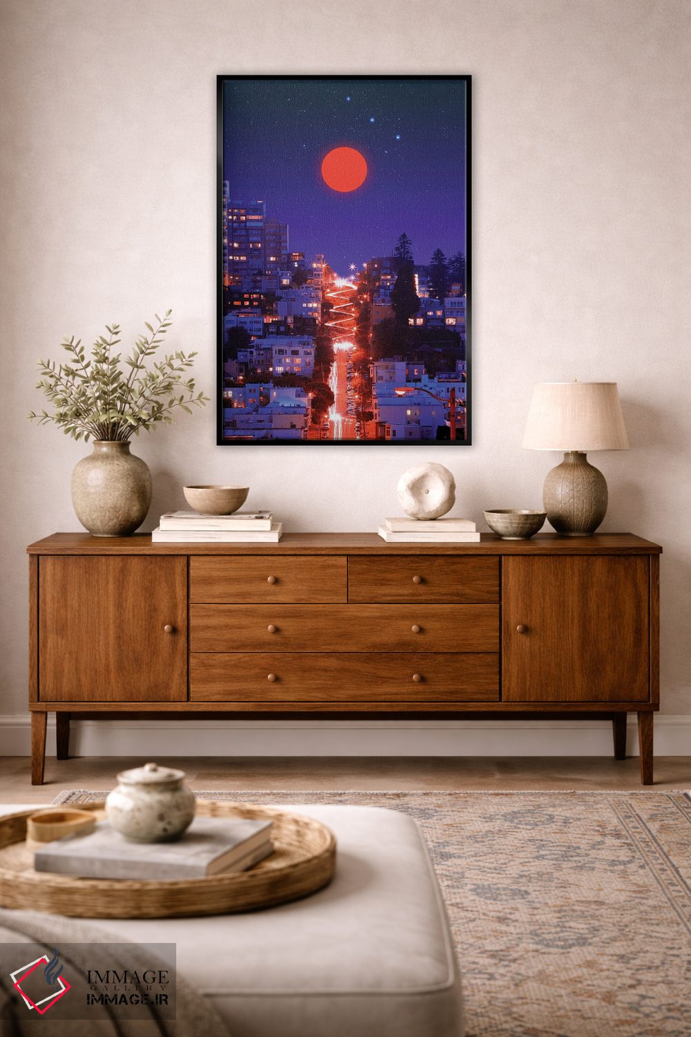 بوم گالری ایماژ طوری طراحی شده که اثر روی دیوار «پرداختشده» و حرفهای دیده شود—نه پرزرقوبرقِ بیپایه؛ بلکه دقیق و خوشپرداخت. با بافت ظریف کنواس، حس اثر هنری را در نگاه نزدیک نگه میدارد و نتیجه را یکدستتر میکند. در رنگهای آرشیوی Epson UltraChrome HDR، نیمسایهها را لطیفتر نگه میدارند و همین «پرداخت» تفاوت را میسازد. اگر دوست دارید قاب هم اضافه شود، میتوانید از گزینههای سایت استفاده کنید یا برای انتخاب سفارشی هماهنگ کنید؛ و اگر بخواهید، میتوان چیدمان را برای گالریوال هم پیشنهاد داد. همراهِ چوب و متریالهای طبیعی، بافت کنواس دلنشینتر دیده میشود.