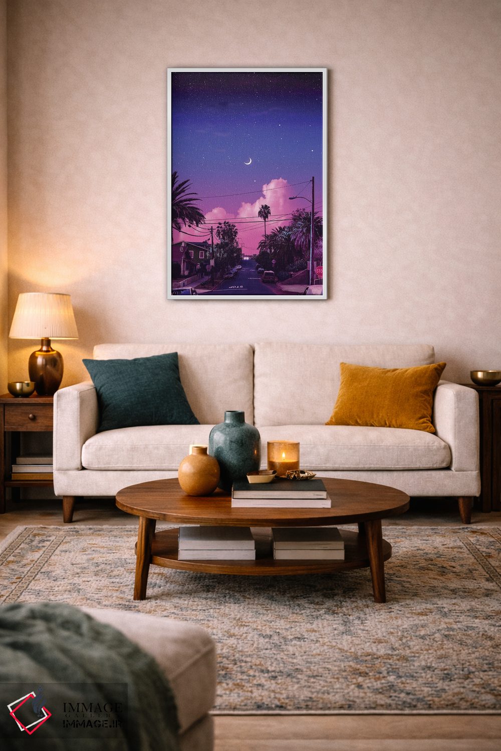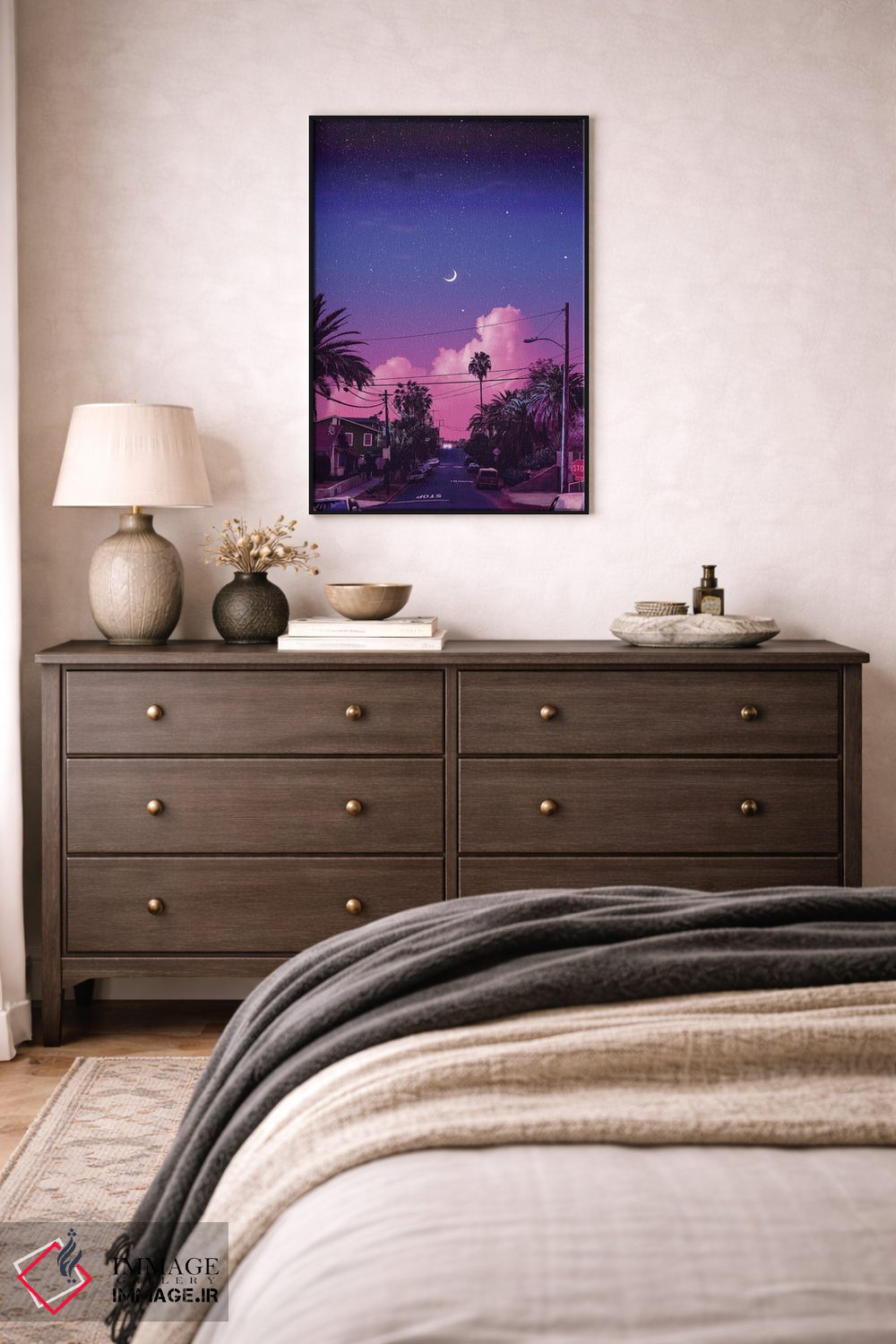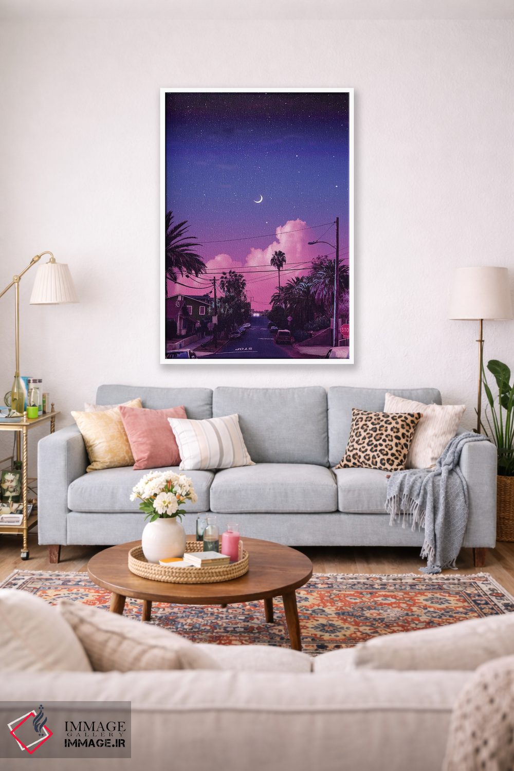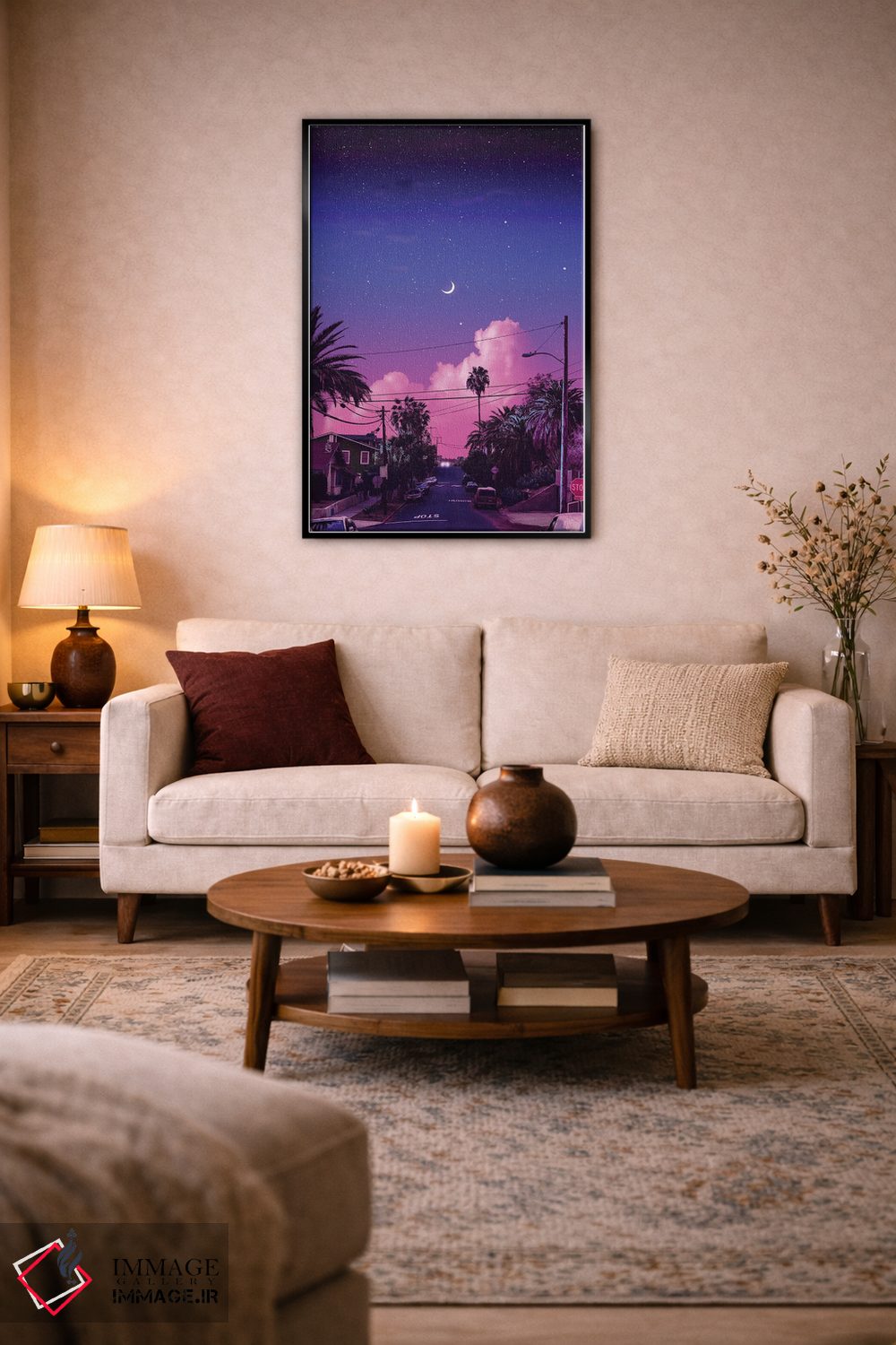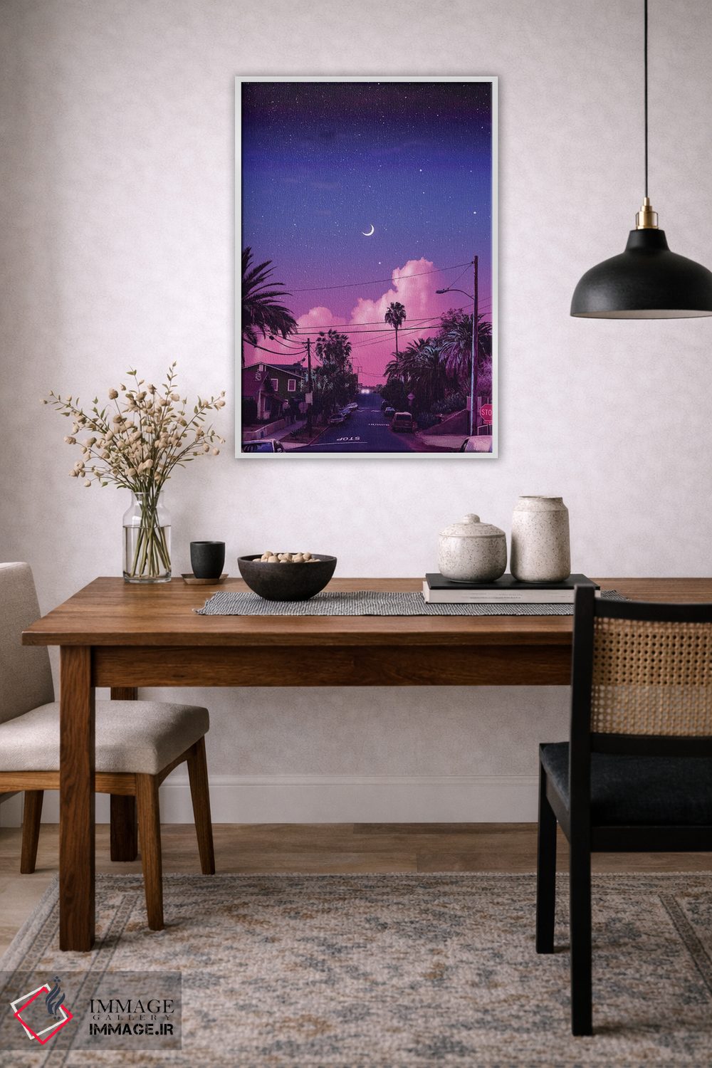 طراحی بوم گالری ایماژ بهگونهای است که اثر روی دیوار «پرداختشده» و حرفهای دیده شود—نه پرزرقوبرقِ بیپایه؛ بلکه دقیق و خوشپرداخت. بافت ظریف کنواس باعث میشود حس اثر هنری را در نگاه نزدیک نگه میدارد بدون اغراق؛ فقط دقیقتر. با کنترل تونها، تعادل بهتری بین نور و رنگ ایجاد میکند. حاصل کار، یک تابلو خوشنشین است که هم از دور اثرگذار است و هم از نزدیک خوشخوان؛ و اگر بخواهید، میتوان چیدمان را برای گالریوال هم پیشنهاد داد.