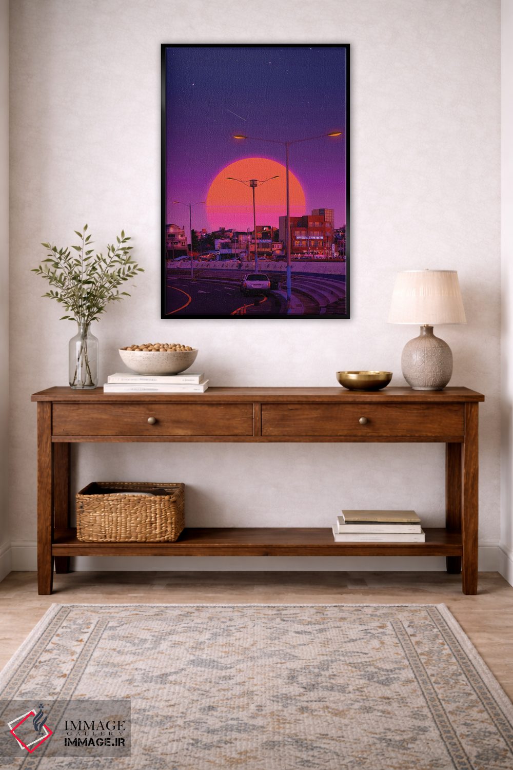 بوم گالری ایماژ طوری طراحی شده که اثر روی دیوار «پرداختشده» و حرفهای دیده شود—نه پرزرقوبرقِ بیپایه؛ بلکه دقیق و خوشپرداخت. بافت ظریف کنواس کمک میکند حس اثر هنری را در نگاه نزدیک نگه میدارد و همین «پرداخت» تفاوت را میسازد. در ارائهی آماده نصب، برای یک ارائهی حرفهای ضروری است و در دکورهای مدرن و مینیمال خیلی خوب مینشیند. حاصل کار، یک تابلو خوشنشین است که هم از دور اثرگذار است و هم از نزدیک خوشخوان؛ و اگر بخواهید، میتوان چیدمان را برای گالریوال هم پیشنهاد داد.