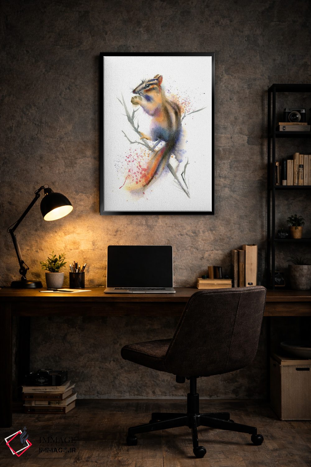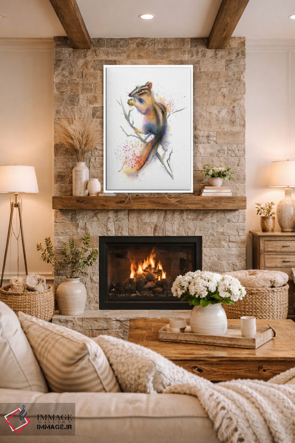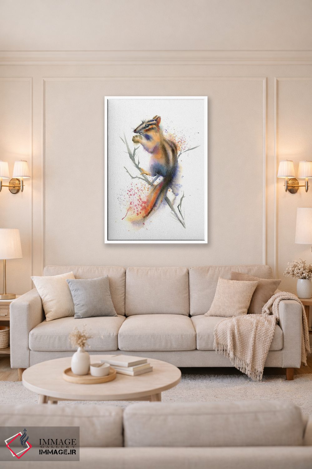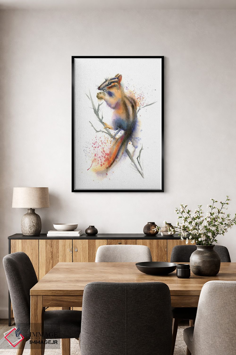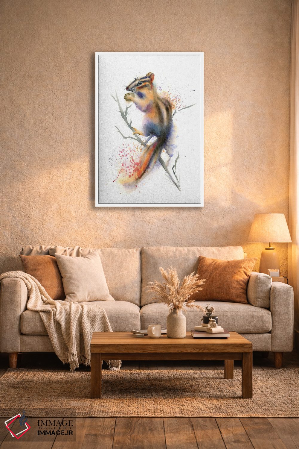 برای دکورهای صمیمی، «سنجابک روی شاخه» اثرِ «الگا چفرانوف» به دیوار، انرژیِ نرم و زنده میدهد؛ برای خانههایی با چوب و پارچههای گرم انتخابی خوشسلیقه است. با نورپردازی نقطهای، جذابتر هم میشود.