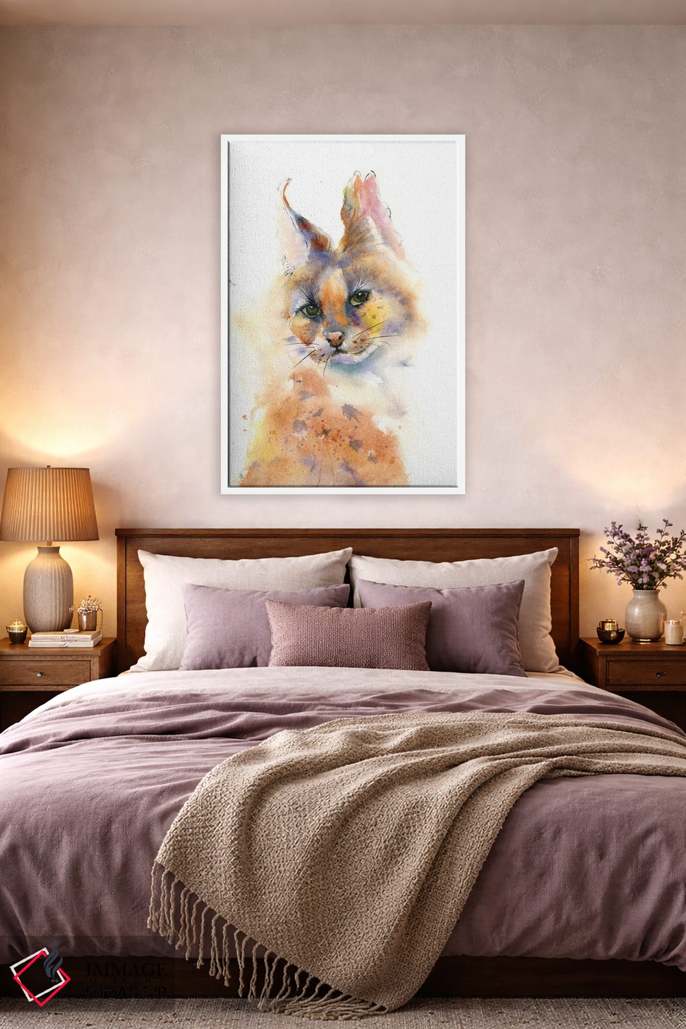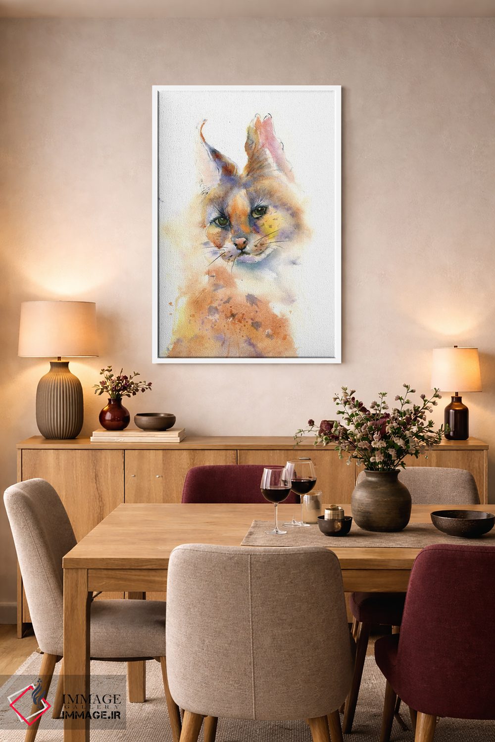 براساس پالت گرم اثر، قاب بلوط روشن (چوبی) پیشنهاد اول است و استخوانی ملایم مکمل. برای سفارشهای پروژهای با ابعاد و قابهای اختصاصی با ایماژ در تماس باشید.