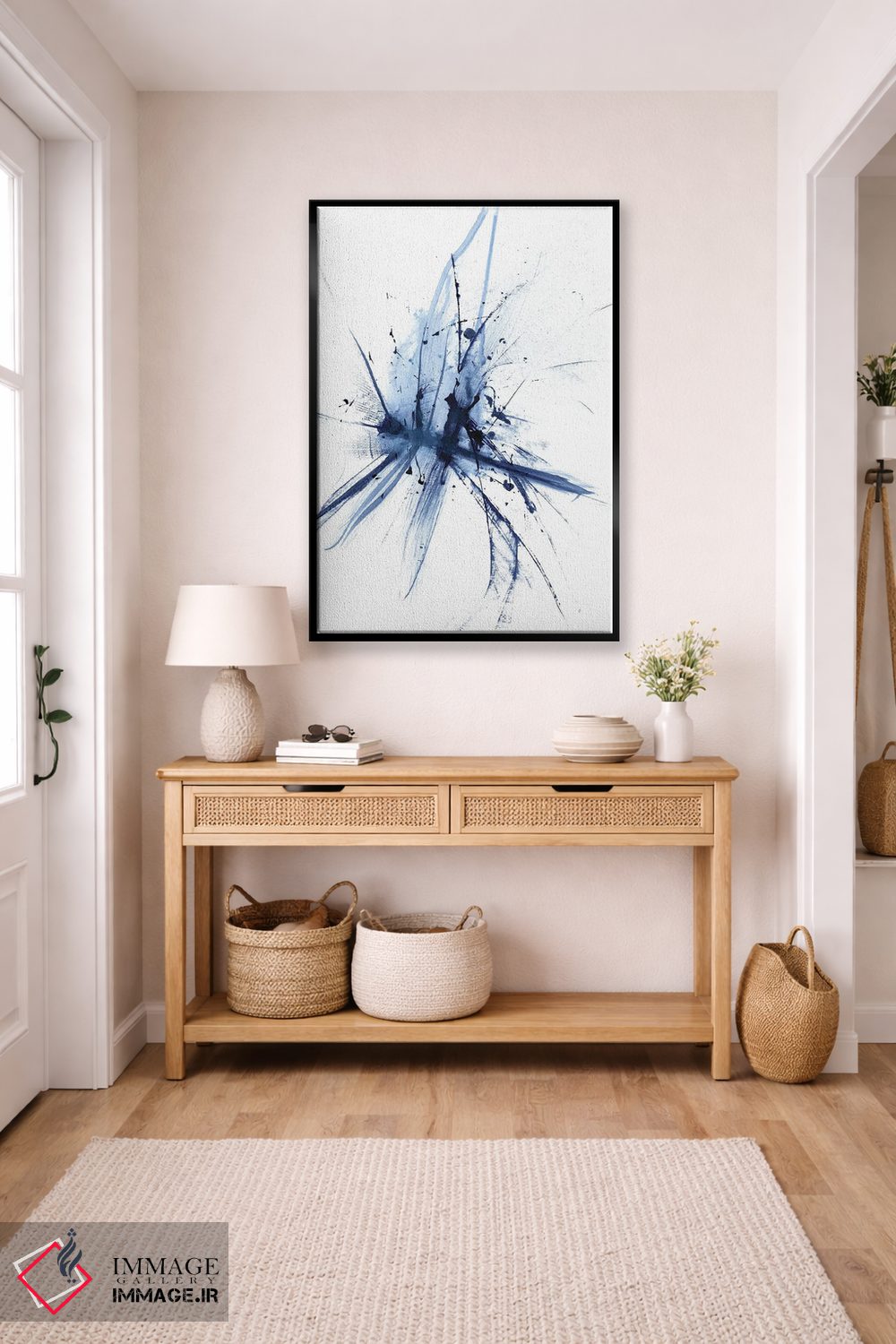 آبی میتواند بهخوبی یک اکسنتِ کوچک اما موثر باشد؛ یک شیء سرامیکی/فلزی را با آبی هوشمندانه استفاده کنید تا تعادل بین گرم و سرد بهتر برقرار شود. انتخاب قاب هم میتواند این اکسنت را تقویت کند.
