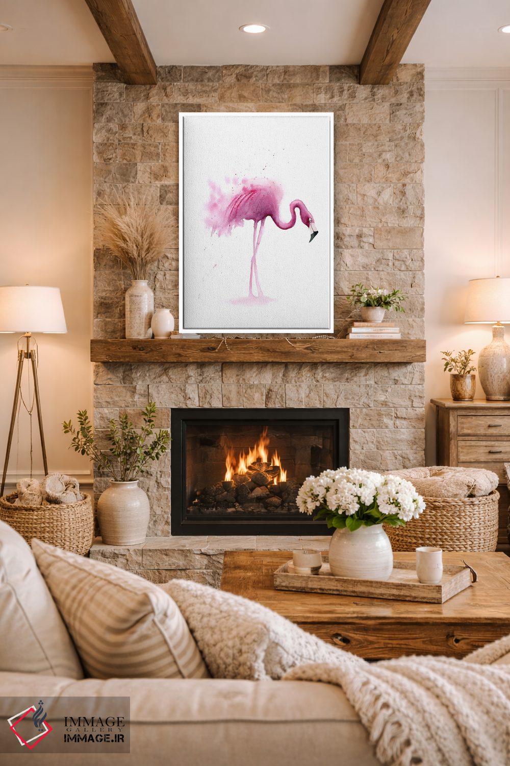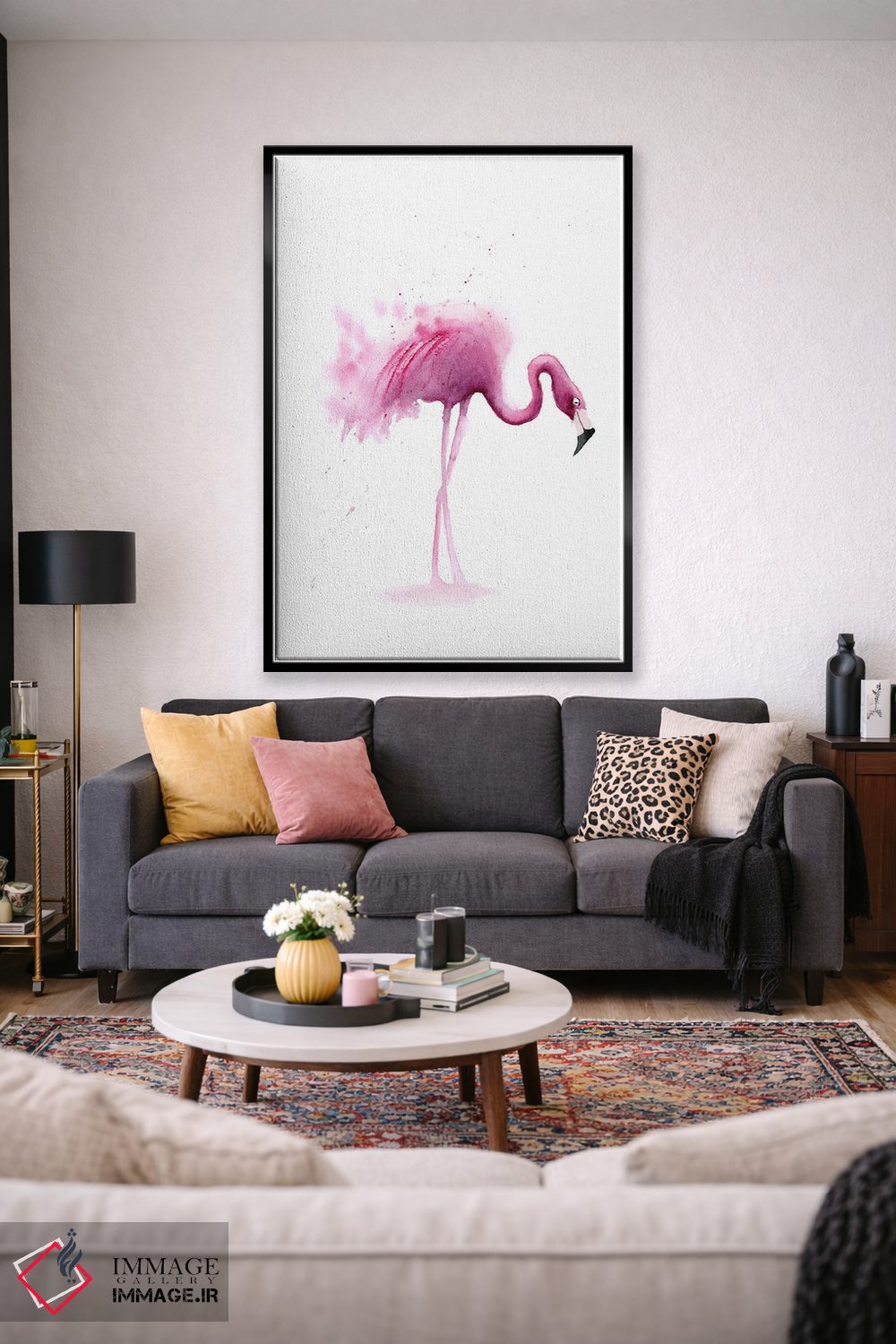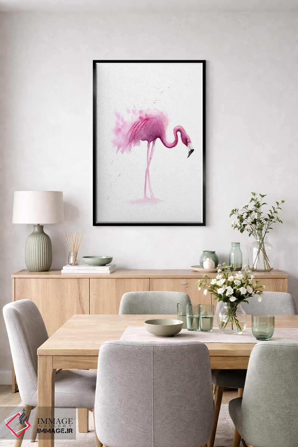 تابلو دکوراتیو ۴ فلامینگو ۱ اثر الگا چفرانوف - نمای روبه‌رو روی دیوار