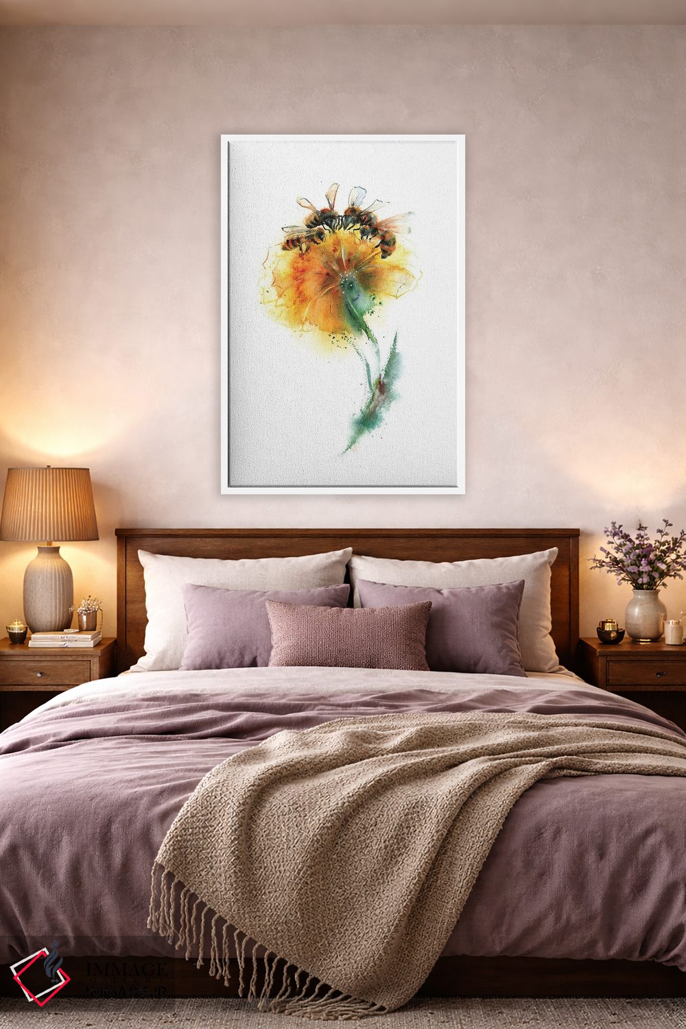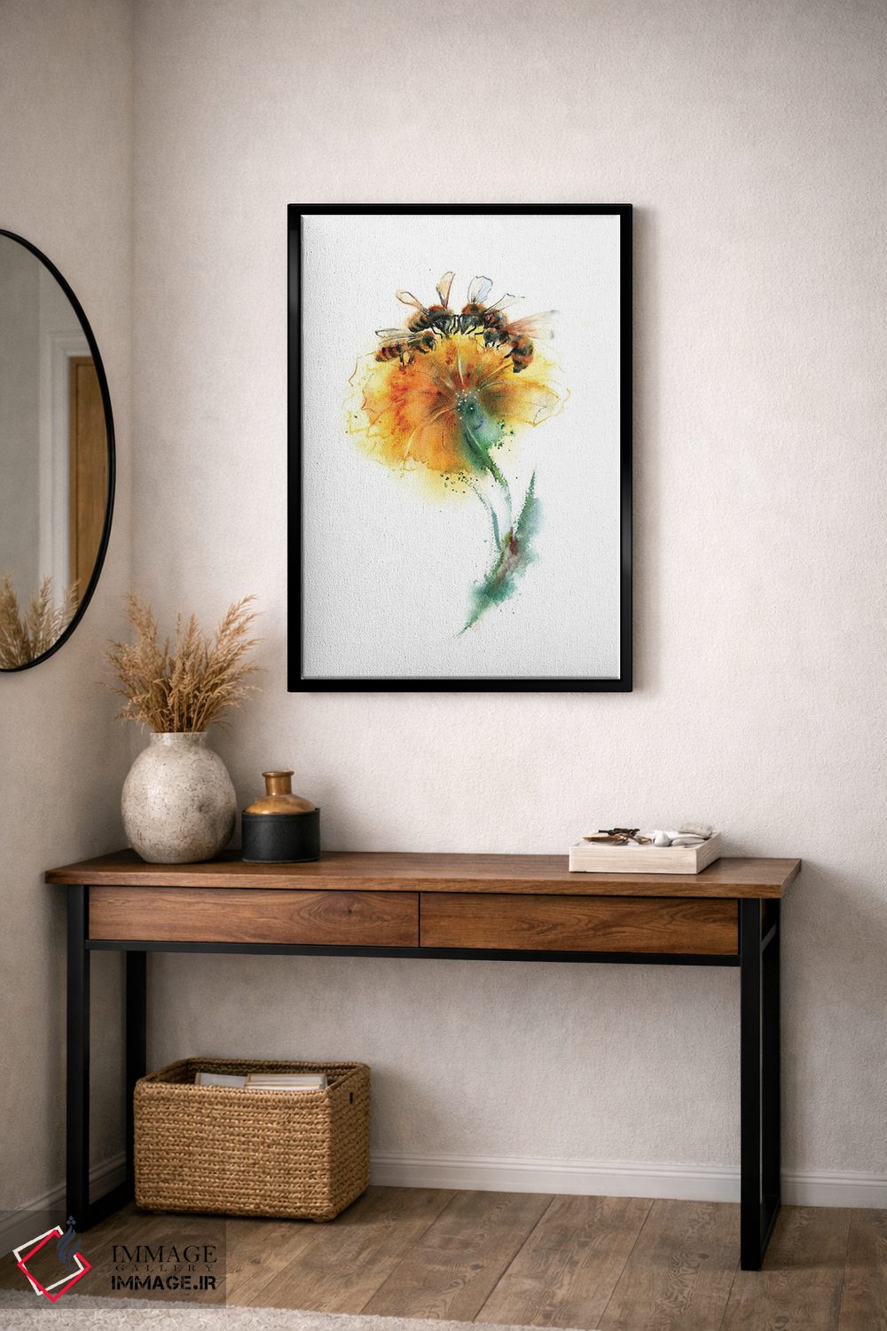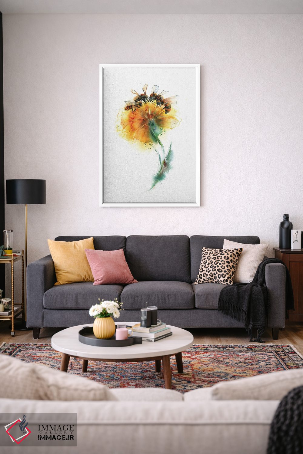 برای دیوارهای ساده، «سه زنبور و گل» اثرِ «الگا چفرانوف» بافت و جزئیات را طوری نشان میدهد که نگاه میماند؛ برای دکورهای مدرن و مینیمال انتخابی خوشسلیقه است. با نورپردازی نقطهای، جذابتر هم میشود.