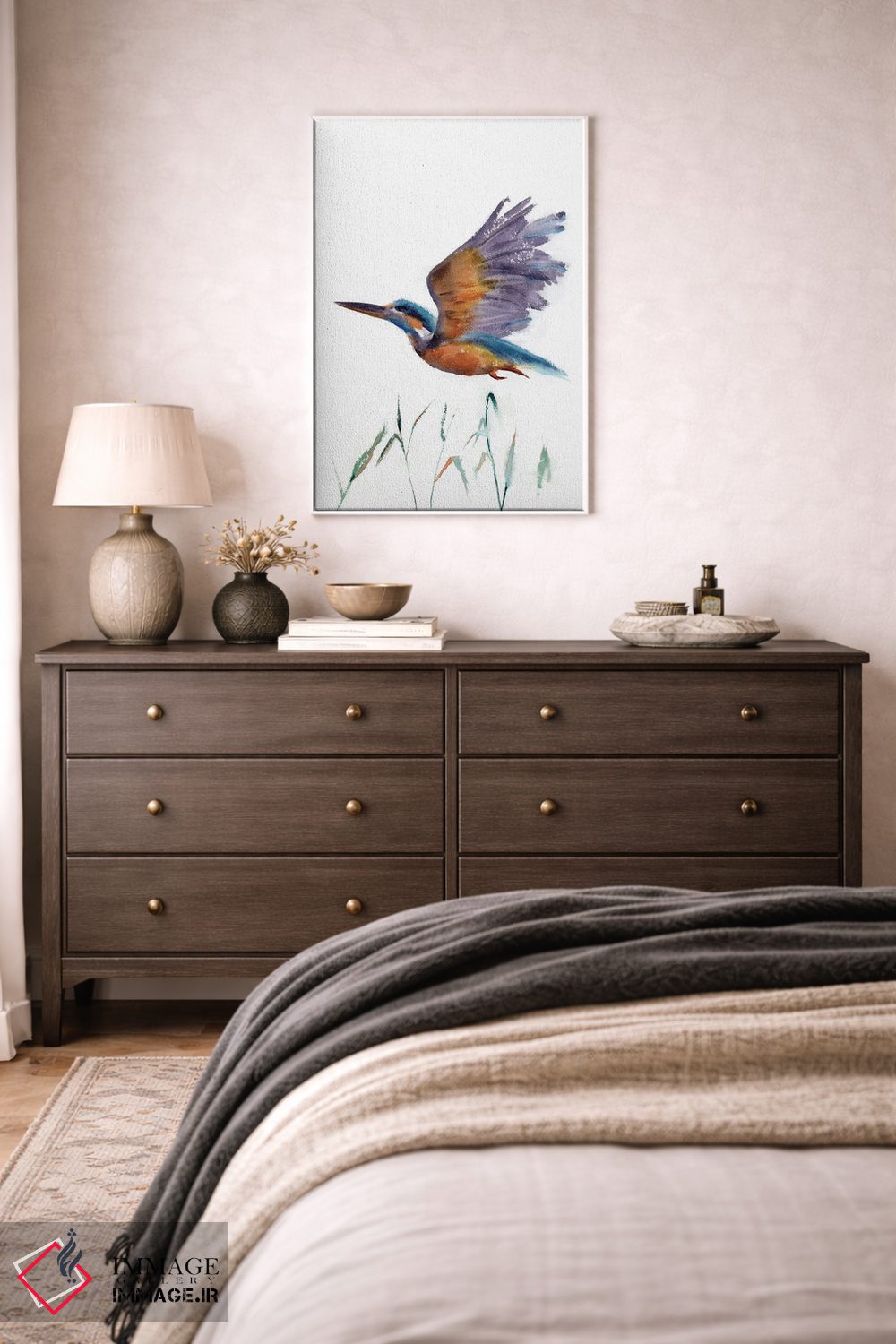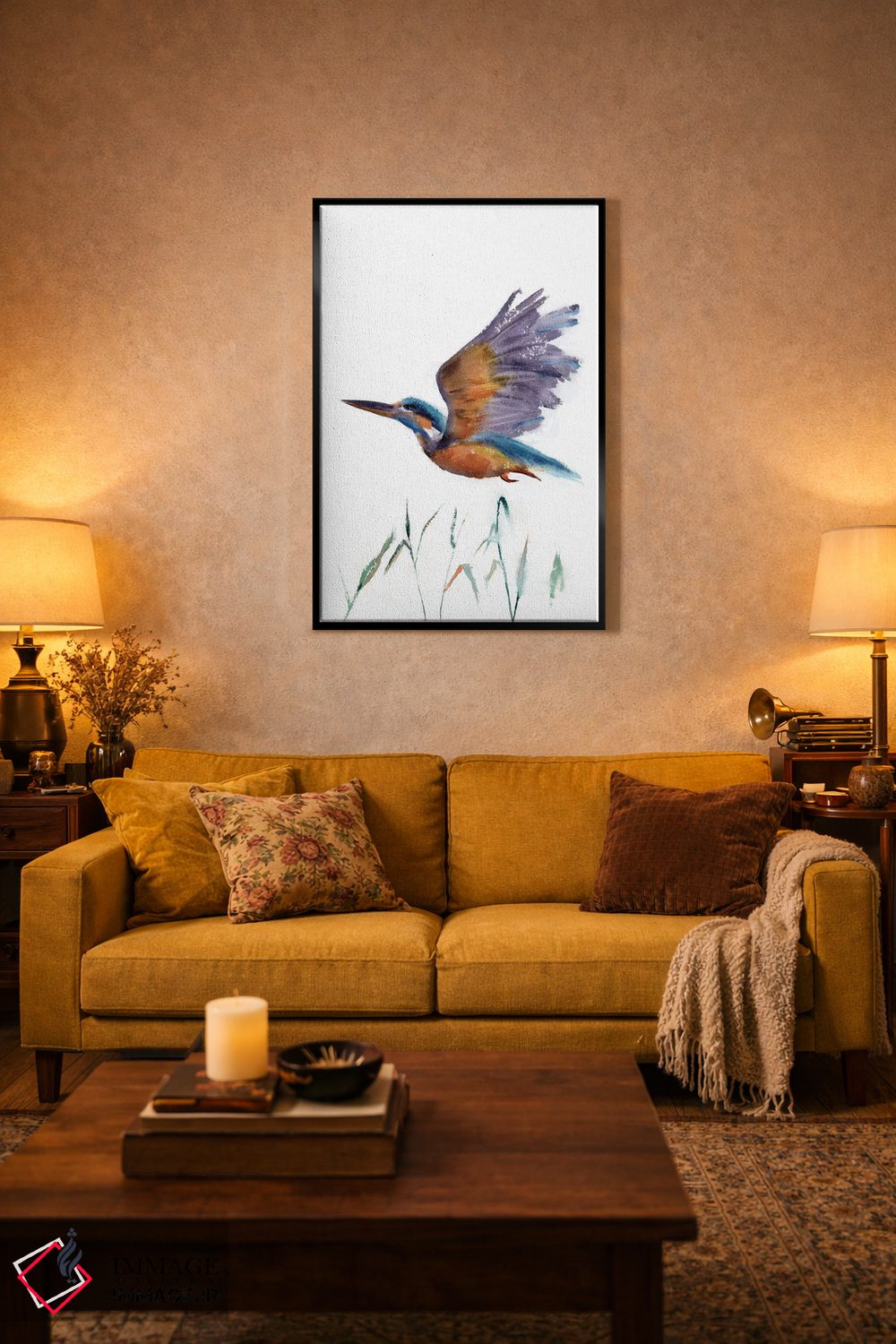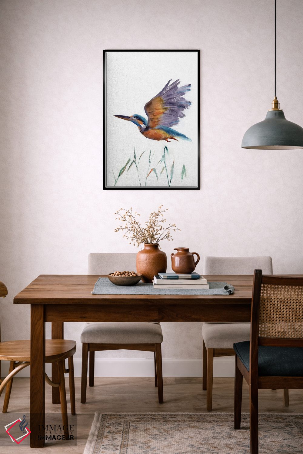 برای دیوارهای ساده، «ماهیخورک پروازکننده» اثرِ «الگا چفرانوف» برای دکورهای مینیمال، یک نقطهٔ توجه میسازد؛ برای نشیمنهای خانوادگی انتخابی خوشسلیقه است. با قاب چوبی یا مشکی، حس مرتبتری پیدا میکند.