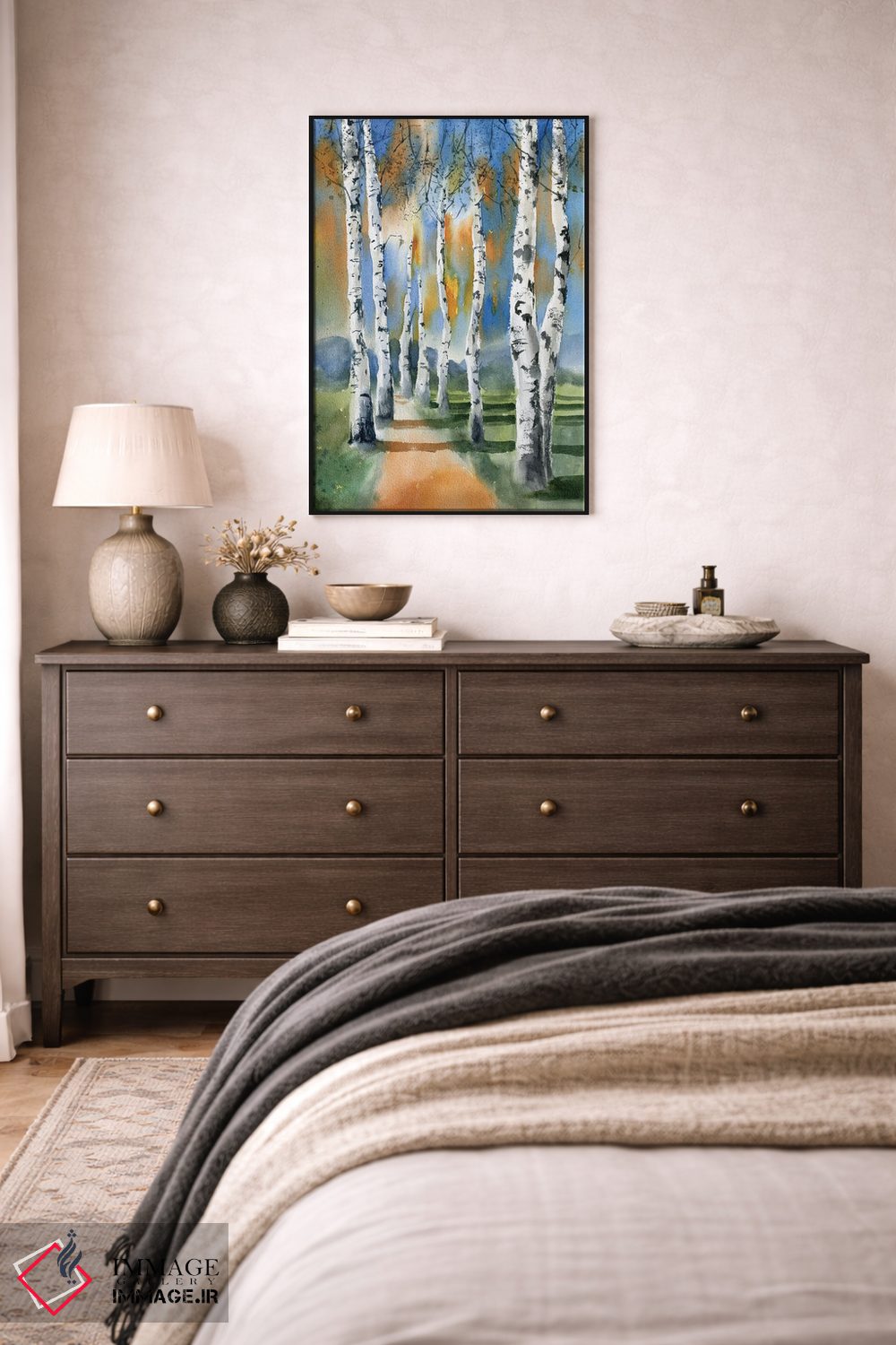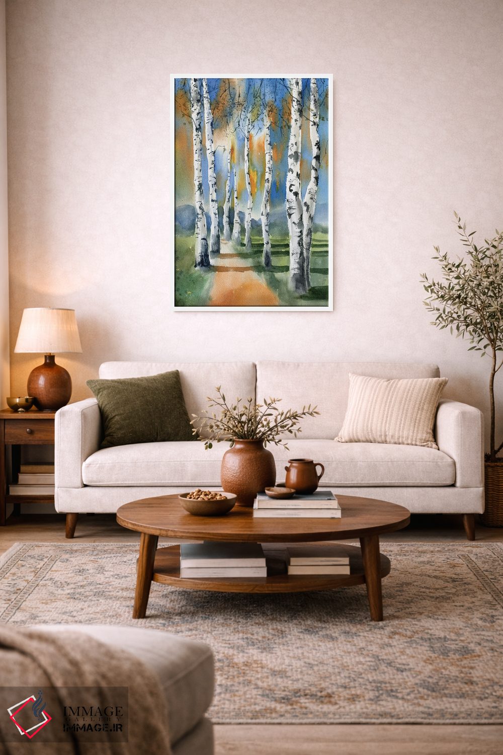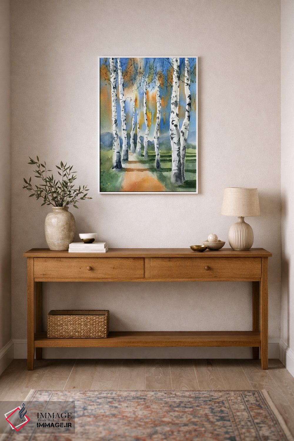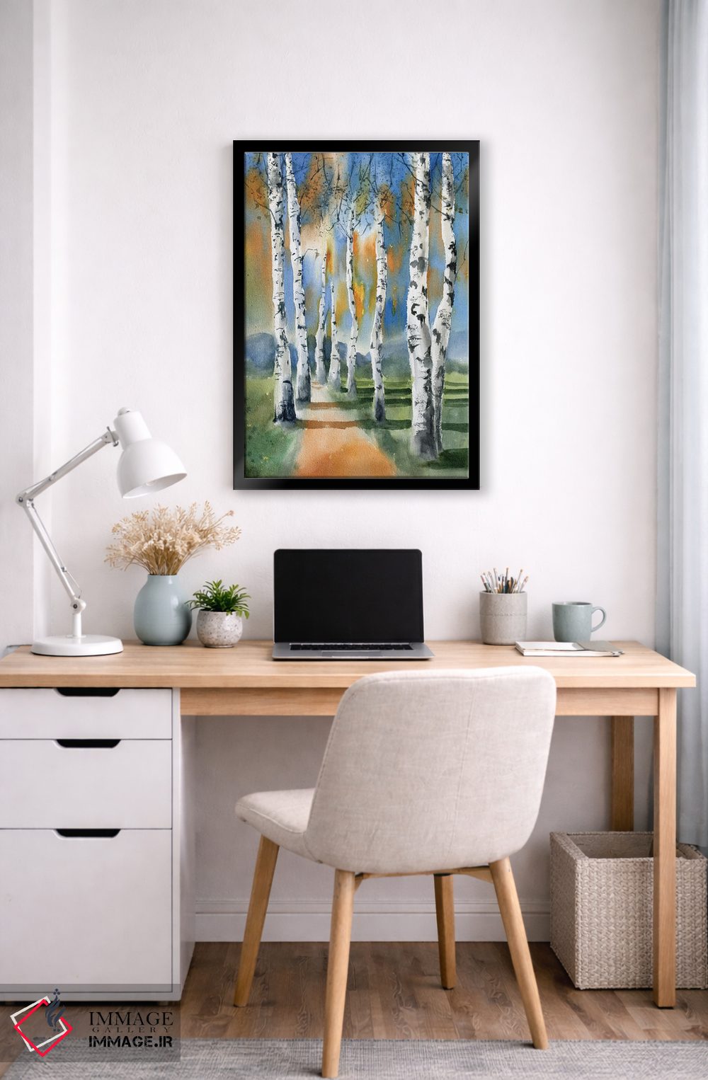 برای فضاهایی که به لطافت نیاز دارند، «درختان توس ۱» اثرِ «الگا چفرانوف» مثل یک قطعهٔ دکورِ همیشهبهروز عمل میکند؛ برای کافهها و فضاهای آرام انتخابی خوشسلیقه است. در کنار گیاهان آپارتمانی، هماهنگتر هم میشود.