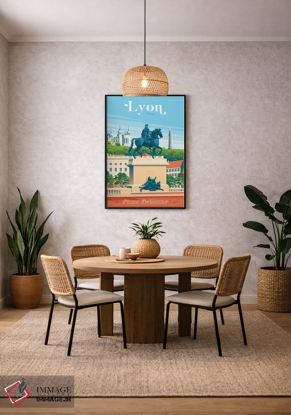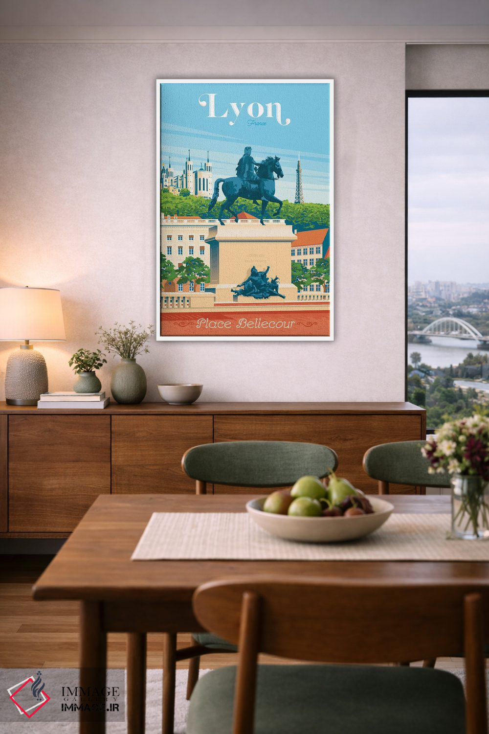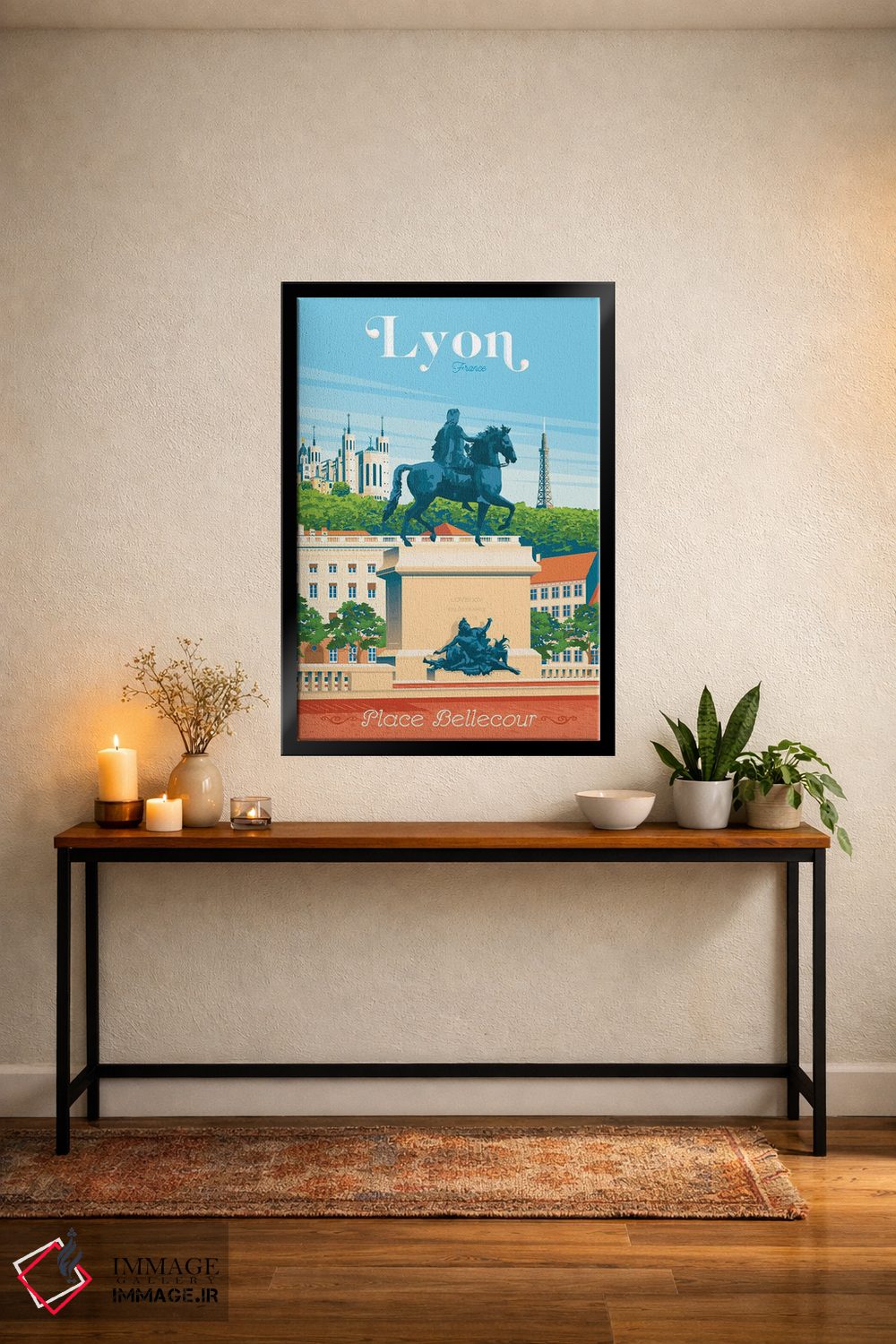 اگر میخواهی یک قاب متفاوت اما حرفهای داشته باشی، «پوستر سفر لیون فرانسه» اثرِ «اولا هوپ تراول پوسترز (پوسترهای مسافرتی؛ استودیو هنری)» با موضوعِ این اثر و اجرای هنری انتخاب خوبی است.