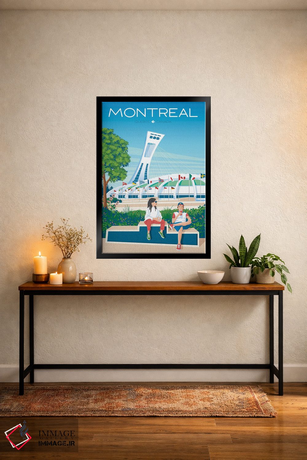«پوستر سفر مونترال کبک» اثرِ «اولا هوپ تراول پوسترز (پوسترهای مسافرتی؛ استودیو هنری)» از آن کارهای دیجیتال است که هم مرتب است، هم چشمگیر—بهخصوص با موضوعِ این اثر.