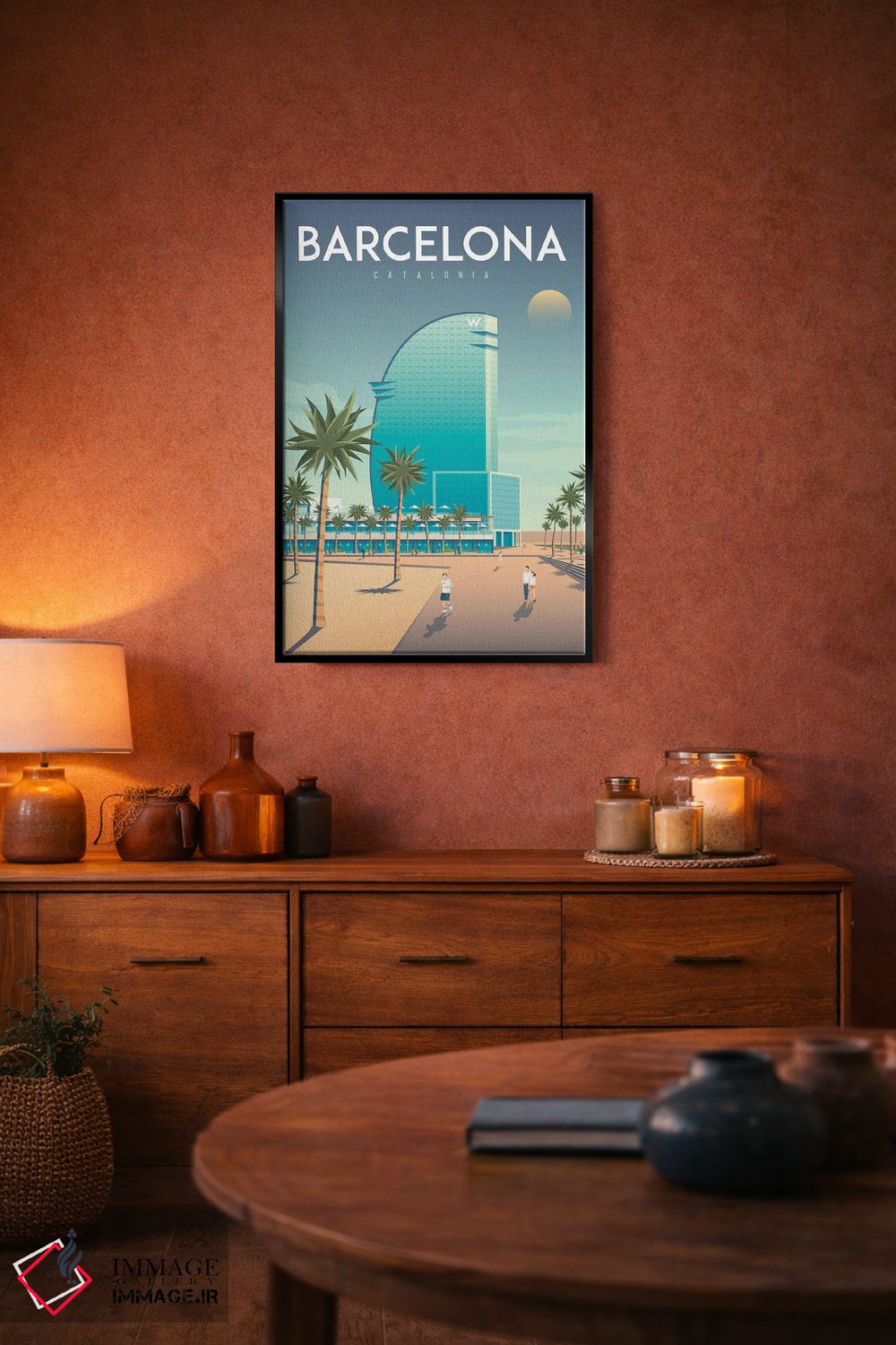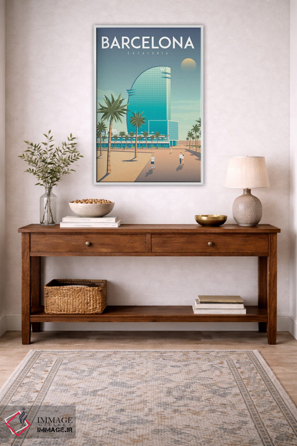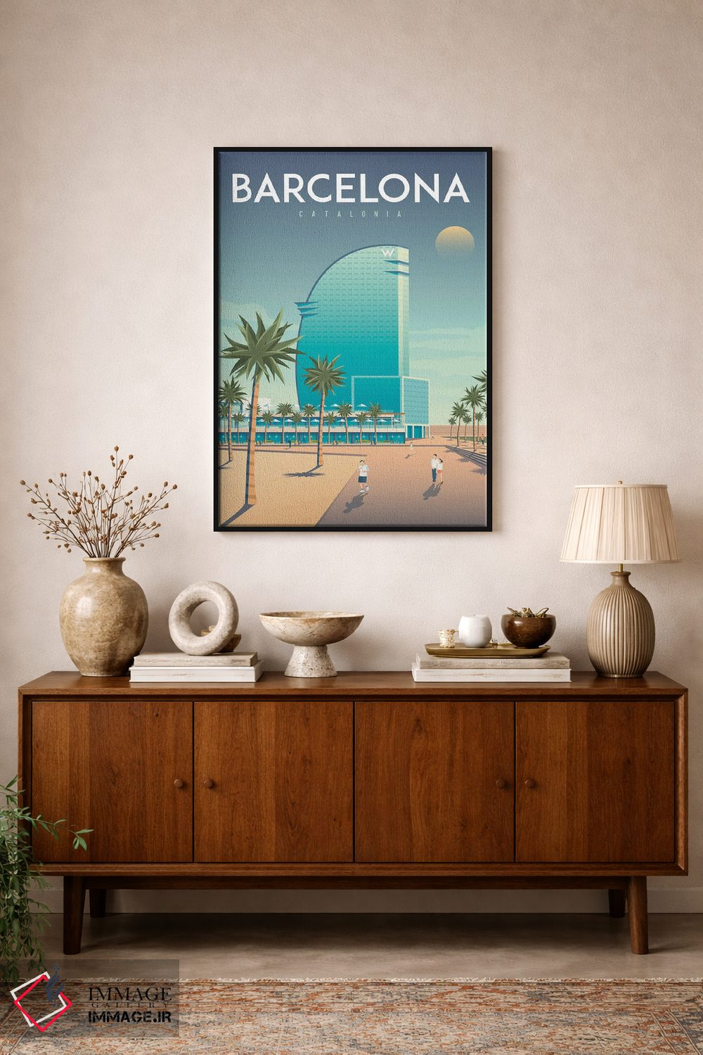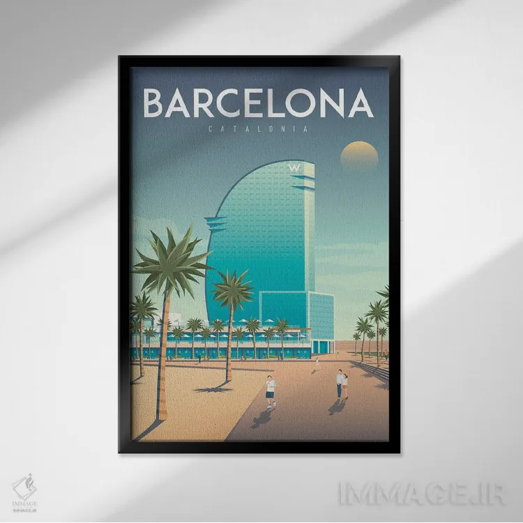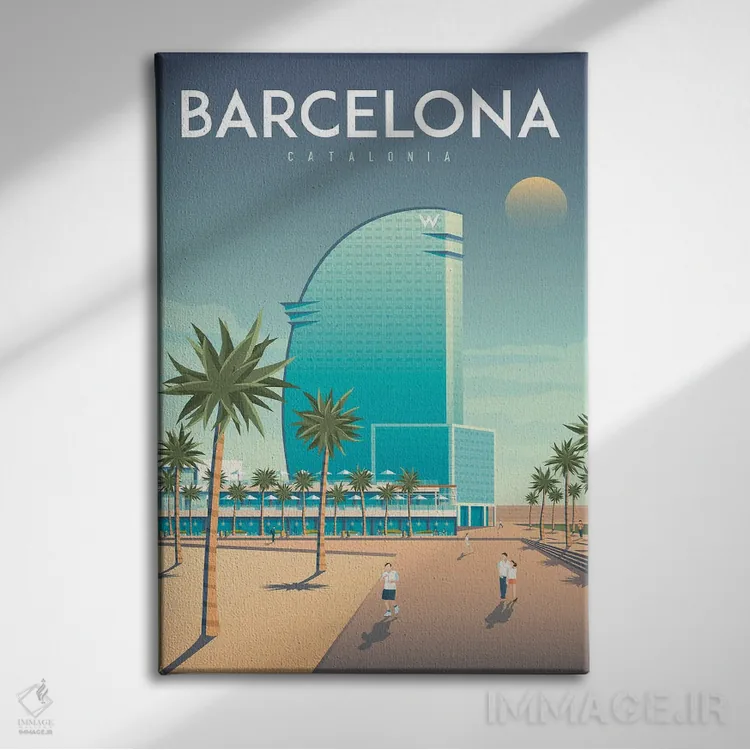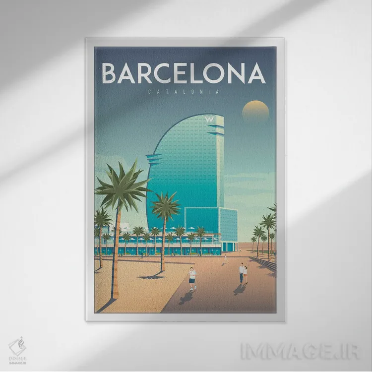 تابلو دکوراتیوِ «تصویر سفر هتل W بارسلونا اسپانیا» با حالوهوای این اثر؛ مناسب برای فضاهای مدرن، مینیمال و حتی صنعتی اثرِ «اولا هوپ تراول پوسترز (پوسترهای مسافرتی؛ استودیو هنری)».