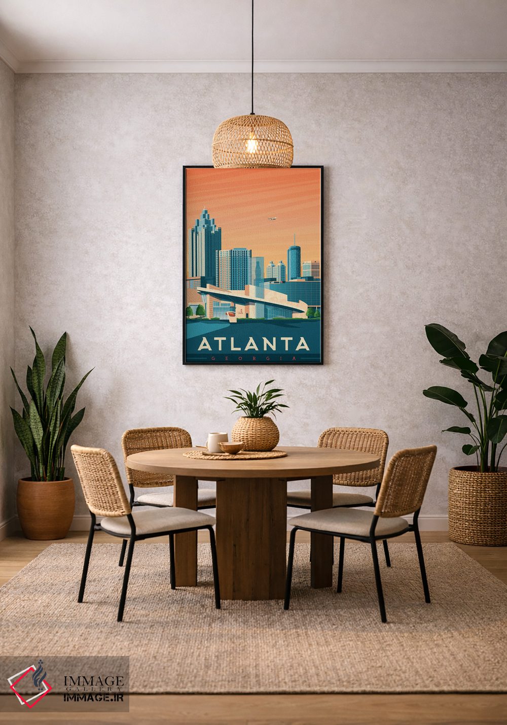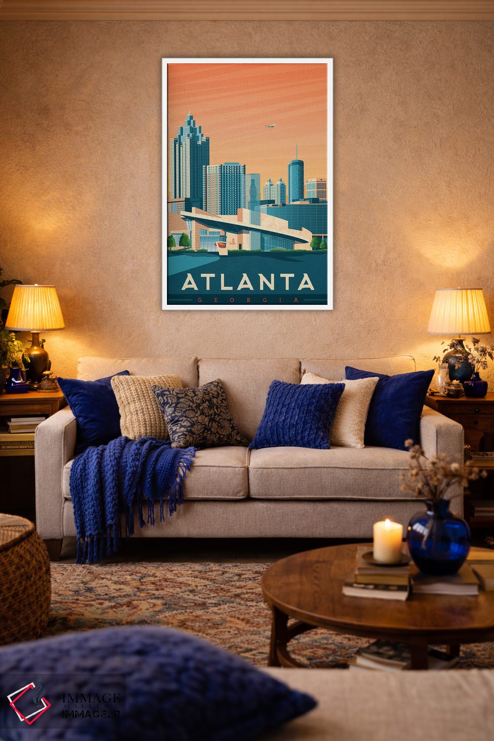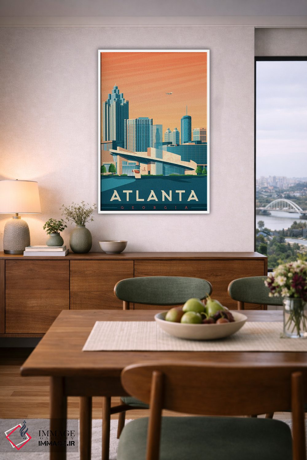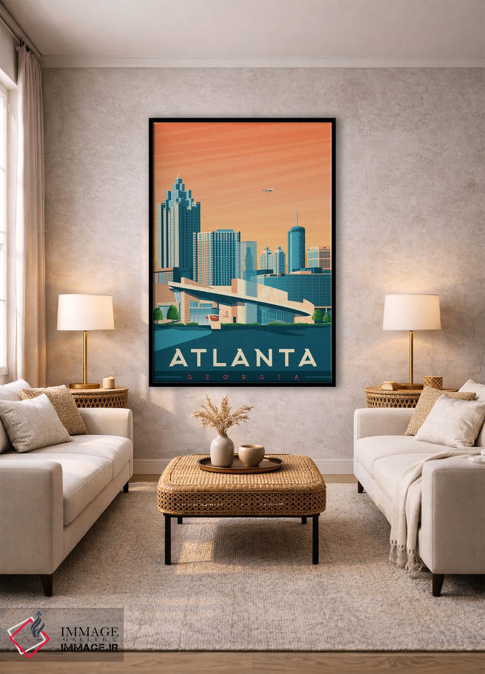 اگر میخواهید فضا «بهروز» به نظر برسد، «تصویر سفر آتلانتا جورجیا» اثرِ «اولا هوپ تراول پوسترز (پوسترهای مسافرتی؛ استودیو هنری)» با موضوعِ این اثر و سبک هنری انتخاب خوبی است.