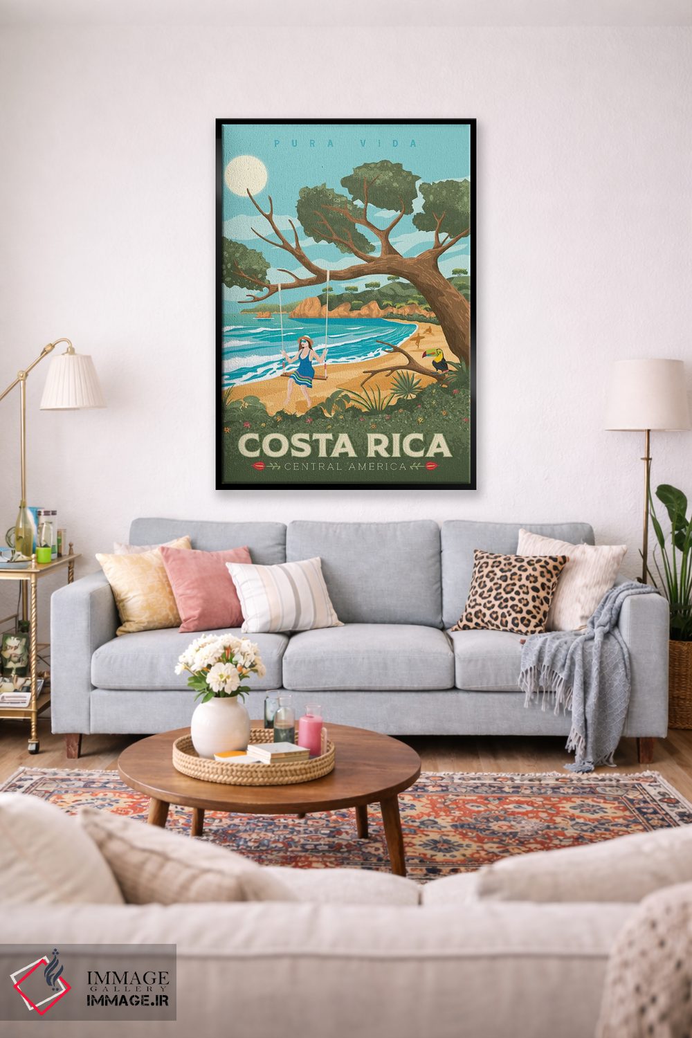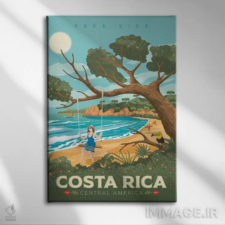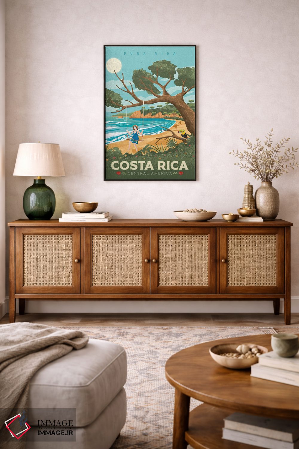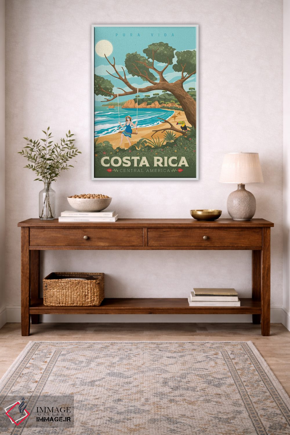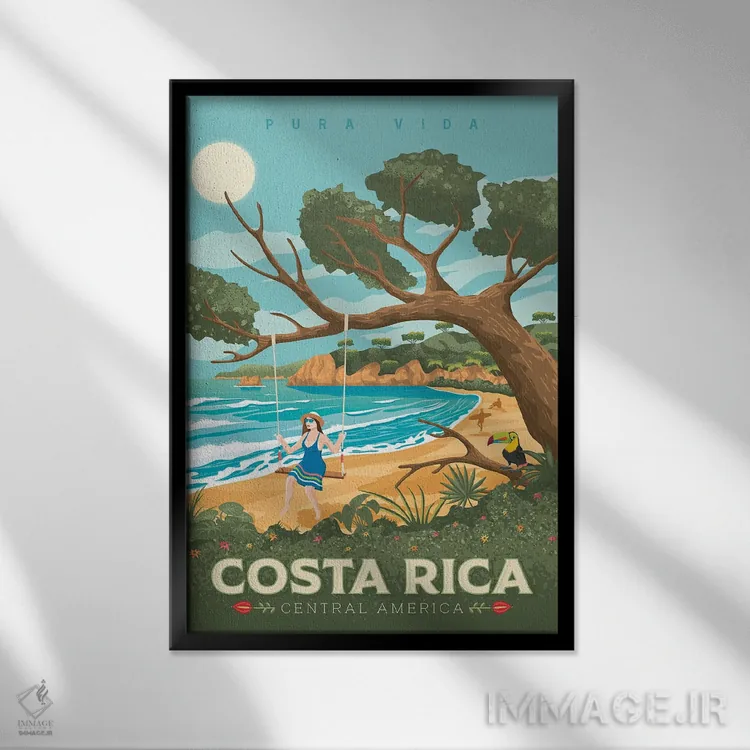 تابلو دکوراتیوِ «تصویر سفر ساحل کاستاریکا» با حالوهوای این اثر؛ مناسب برای فضاهای مدرن، مینیمال و حتی صنعتی اثرِ «اولا هوپ تراول پوسترز (پوسترهای مسافرتی؛ استودیو هنری)».
