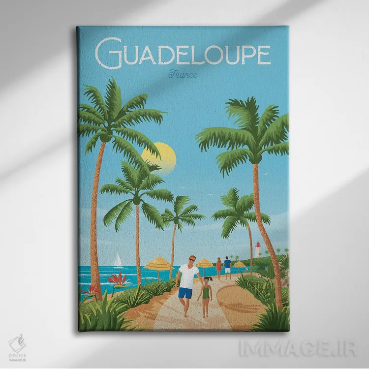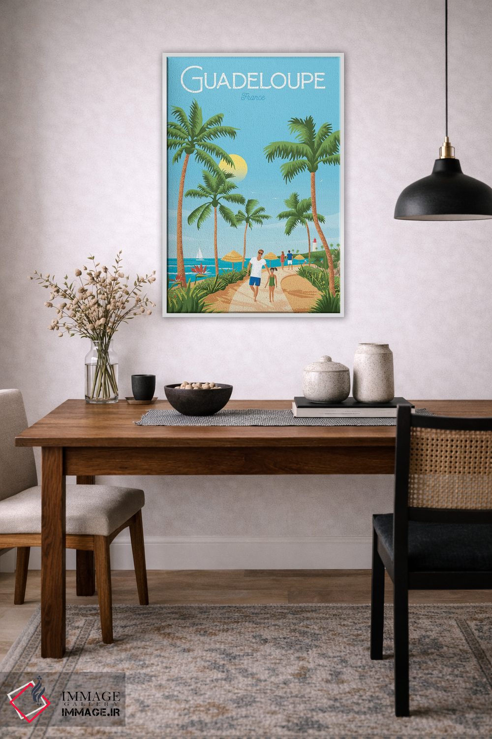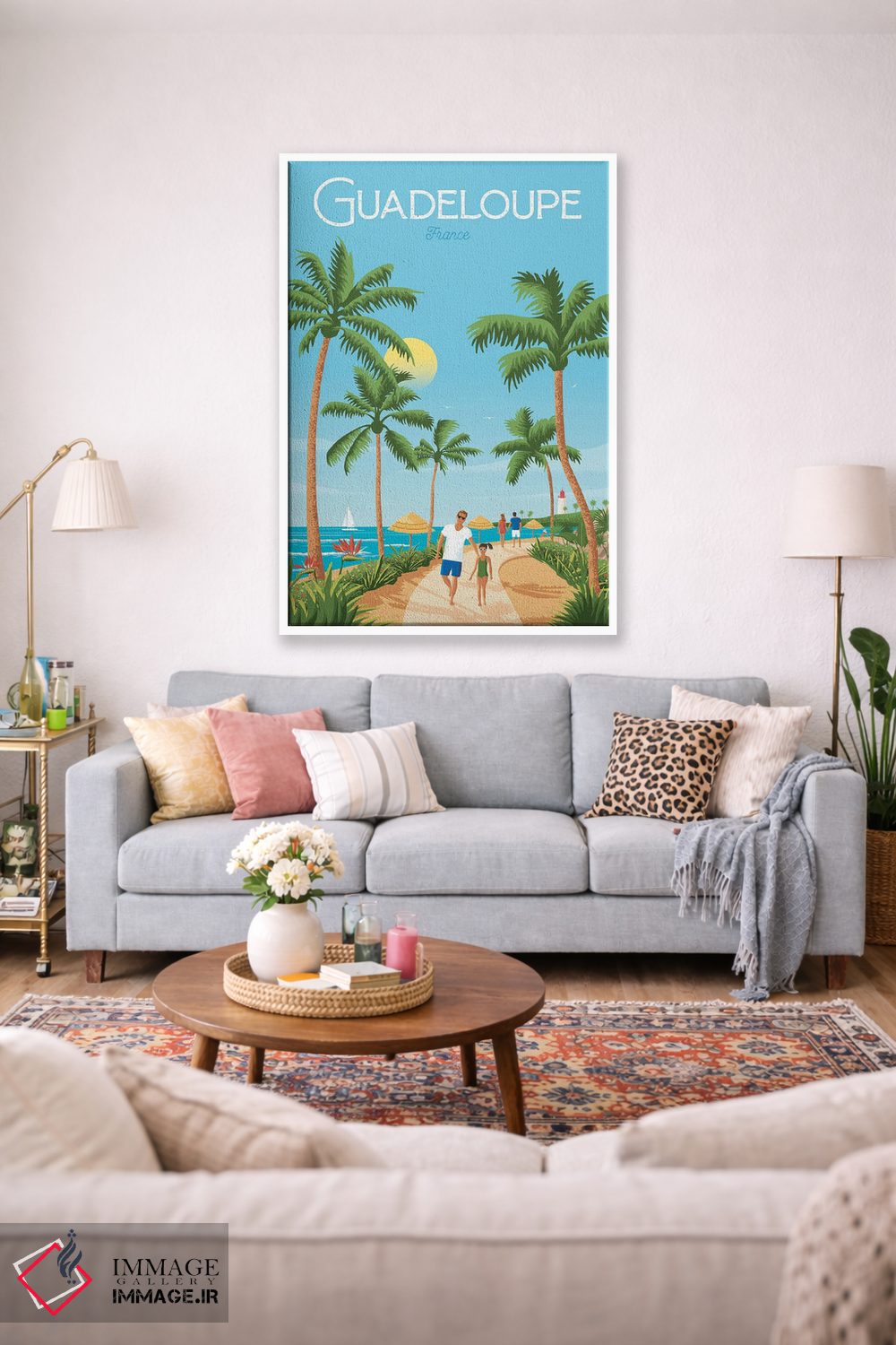 اگر میخواهید فضا «بهروز» به نظر برسد، «جزیره گوادلوپ فرانسه (تصویرسازی سفر)» اثرِ «اولا هوپ تراول پوسترز (پوسترهای مسافرتی؛ استودیو هنری)» با موضوعِ این اثر و سبک هنری انتخاب خوبی است.