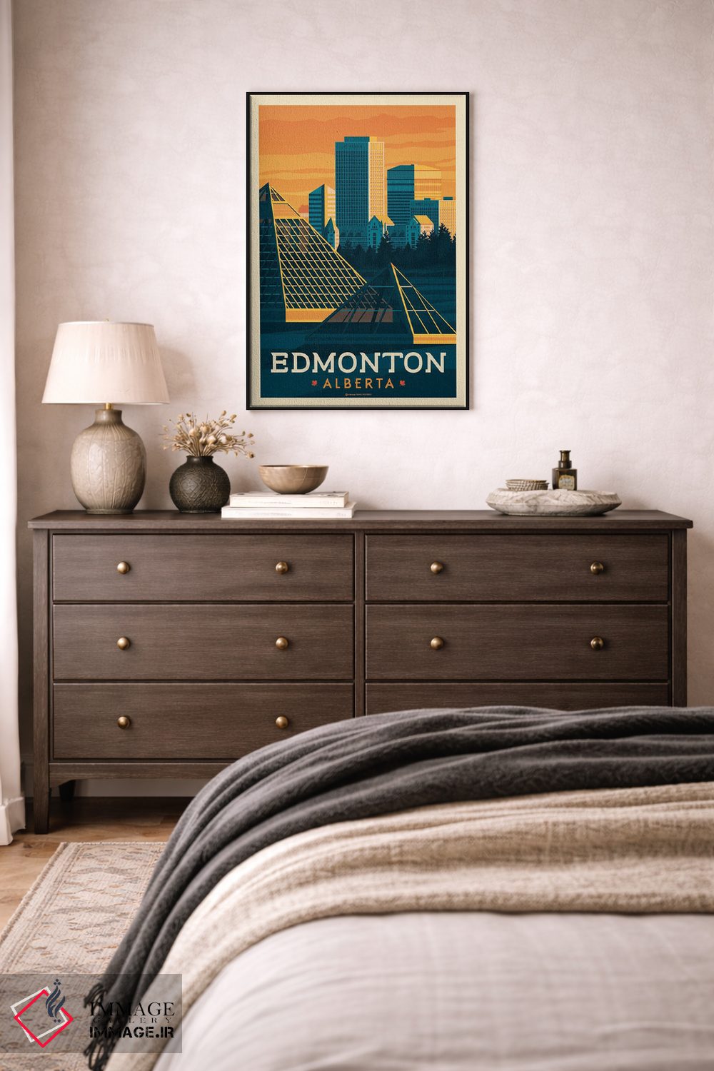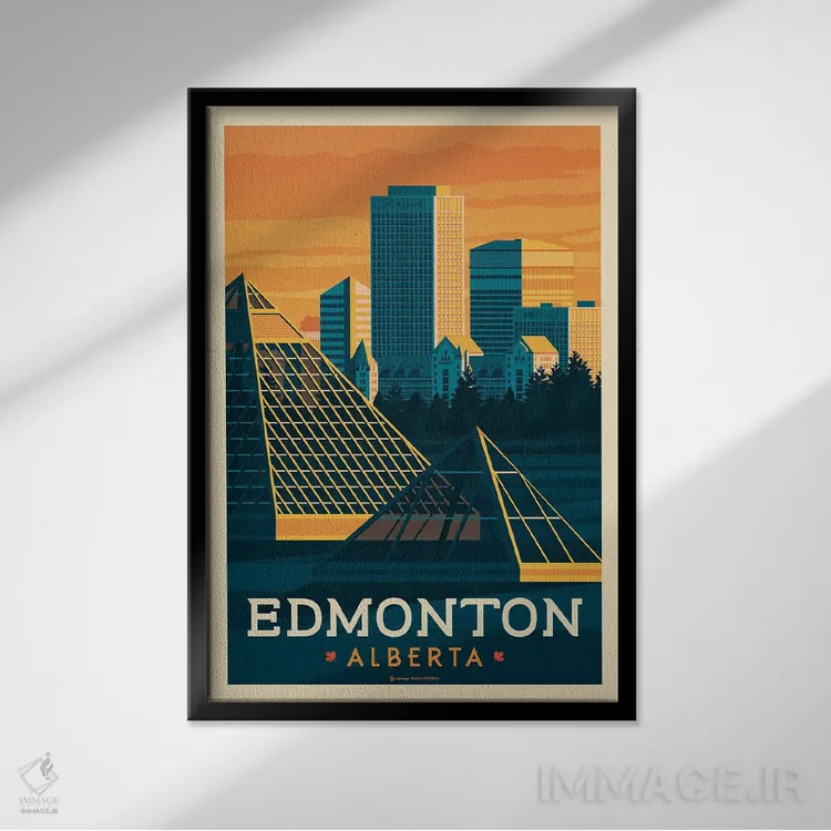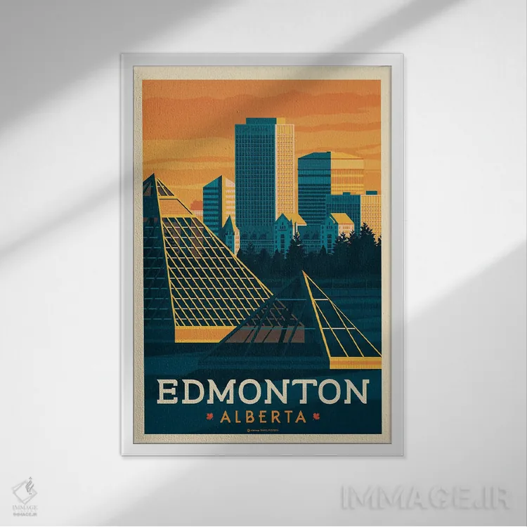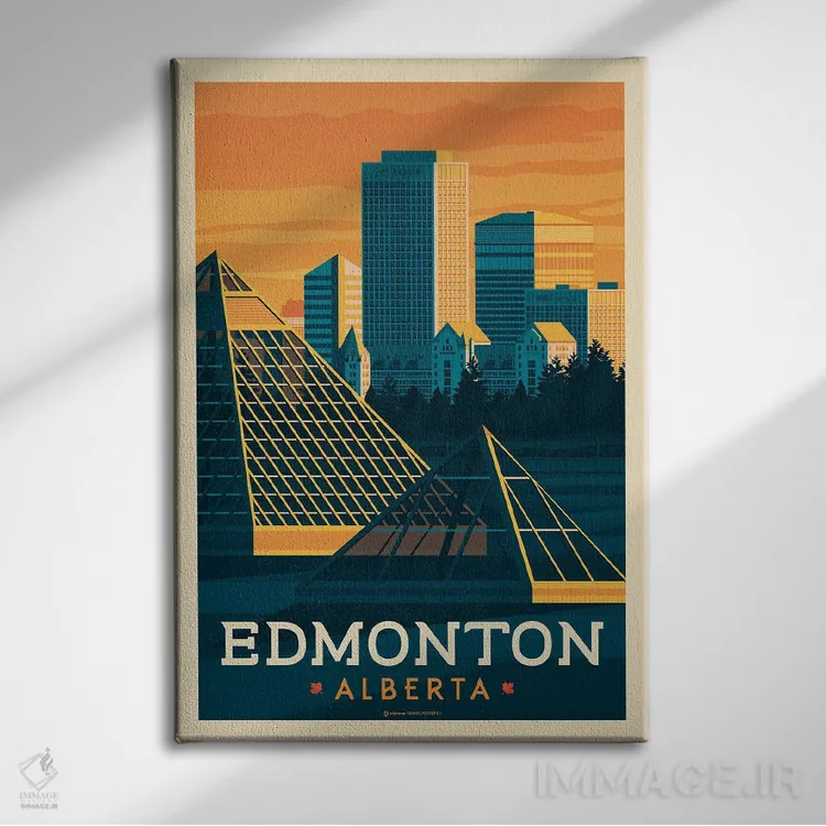 تابلو دکوراتیوِ «ادمونتون کانادا (پوستر سفر)» با موضوعِ این اثر؛ مناسب برای نشیمن، اتاق خواب یا دیوار کنار میز ناهارخوری اثرِ «اولا هوپ تراول پوسترز (پوسترهای مسافرتی؛ استودیو هنری)».