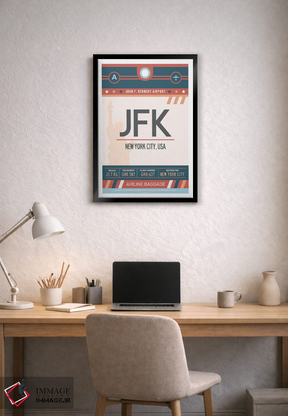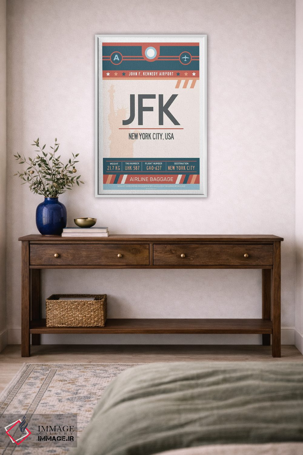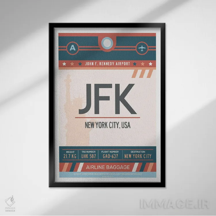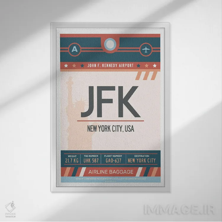 تابلو مدرن پوستر سفر با برچسب فرودگاه نیویورک اثر اولا هوپ تراول پوسترز