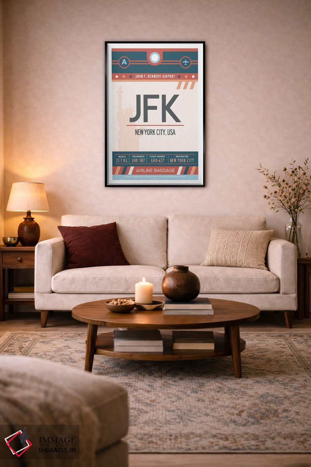 این اثرِ «اولا هوپ تراول پوسترز (پوسترهای مسافرتی؛ استودیو هنری)» با رویکرد پرداختِ هنری و تم این اثر، برای ستکردن با اکسسوریهای ساده (کوسن، گلدان، فرشهای روشن) عالی است.