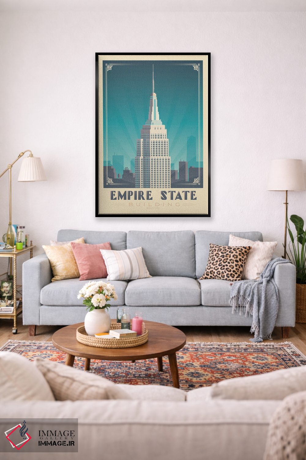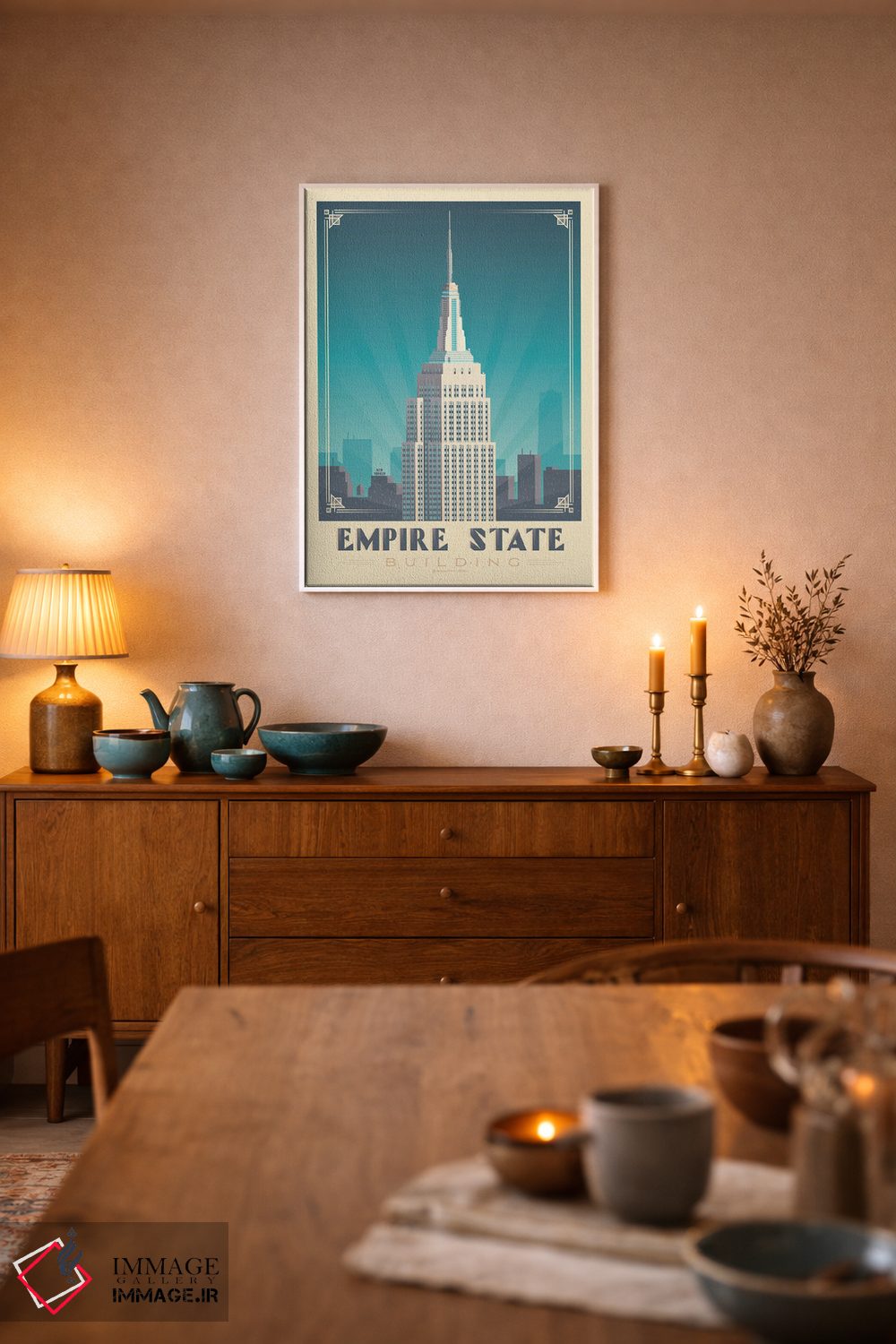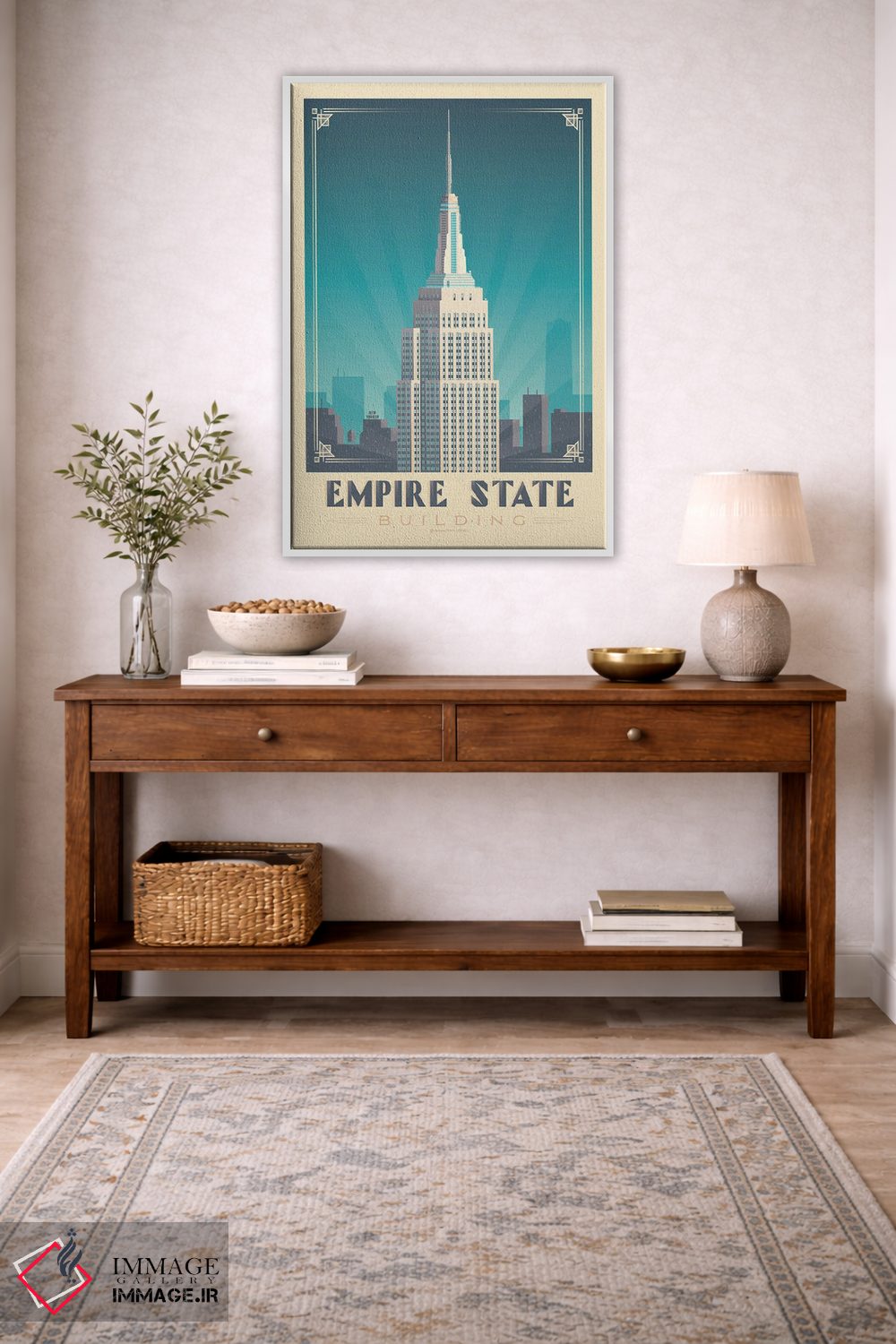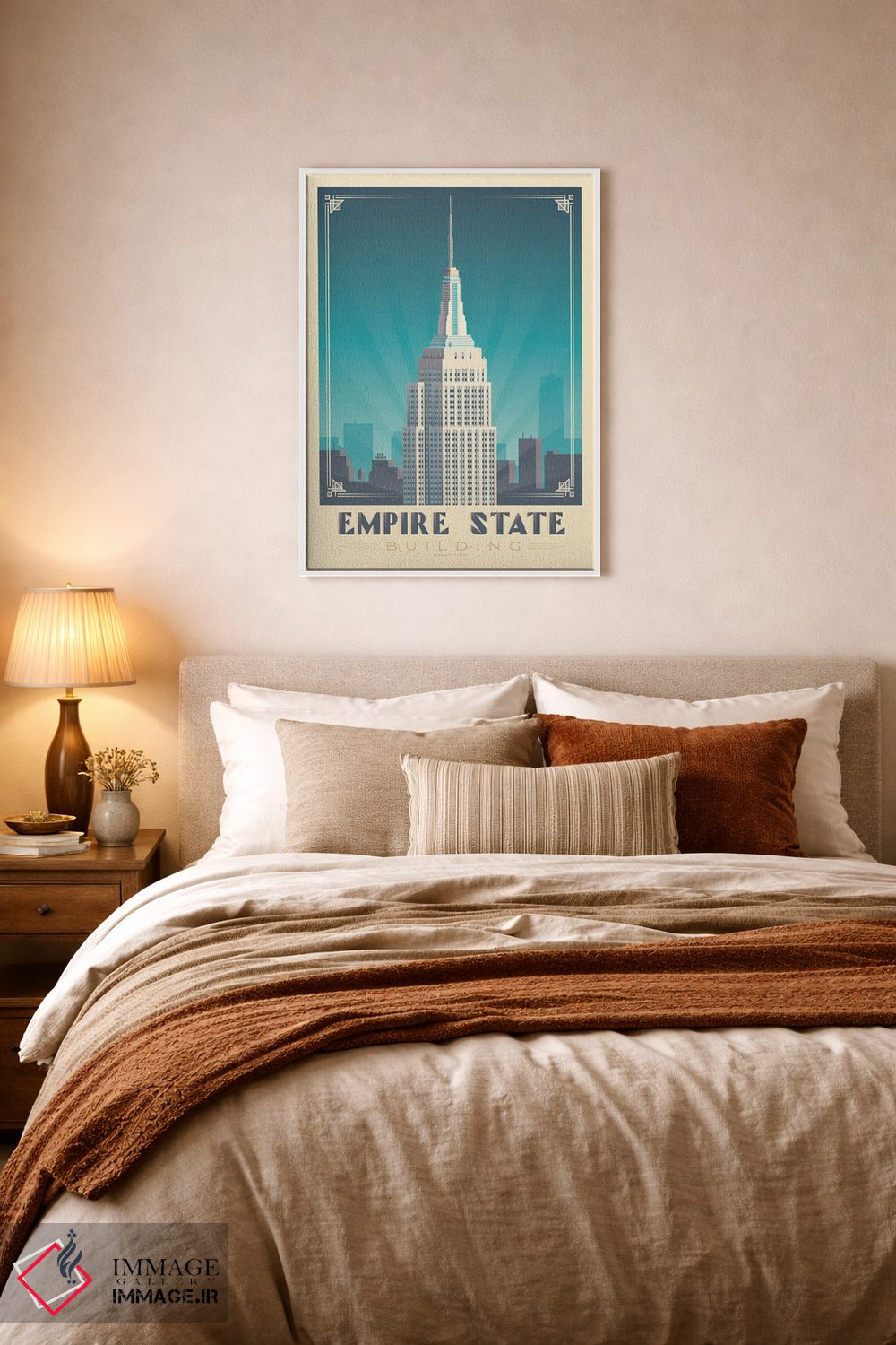 «پوستر سفر به ساختمان امپایر استیت نیویورک» اثرِ «اولا هوپ تراول پوسترز (پوسترهای مسافرتی؛ استودیو هنری)» برای دکورهای بوهو، اسکانباوراوی یا مینیمال هم جواب میدهد؛ چون عنصر اصلی، لطافت و تعادل است.