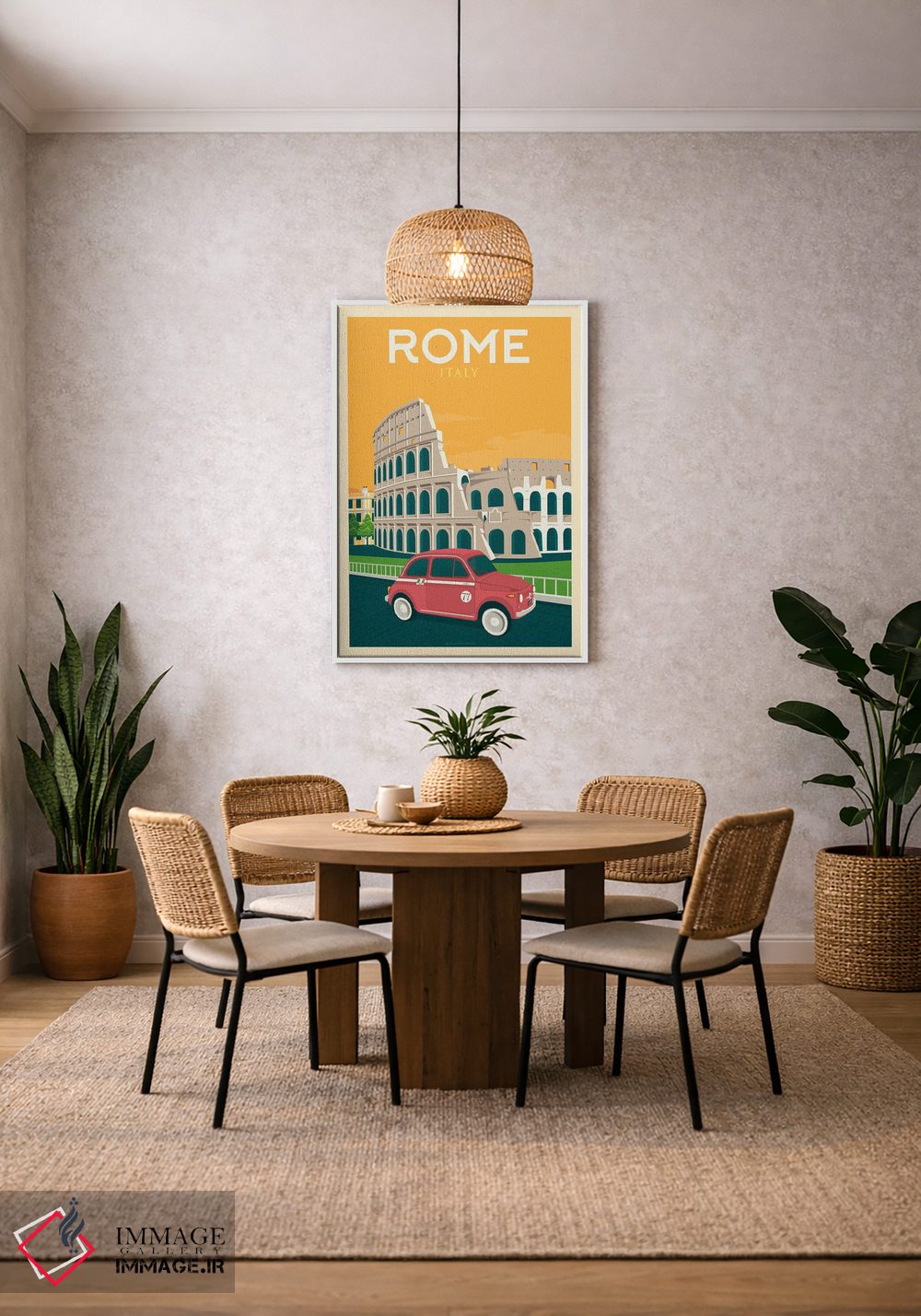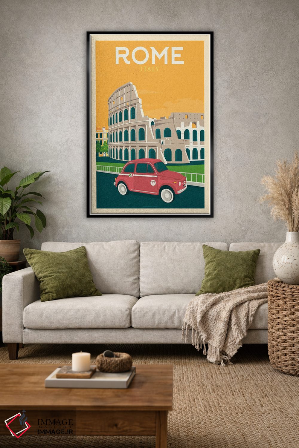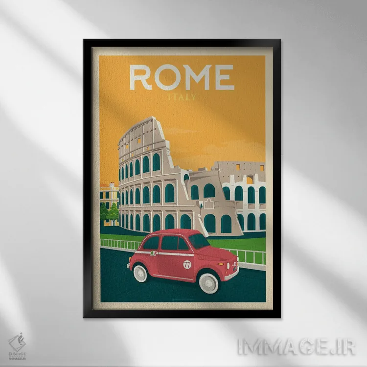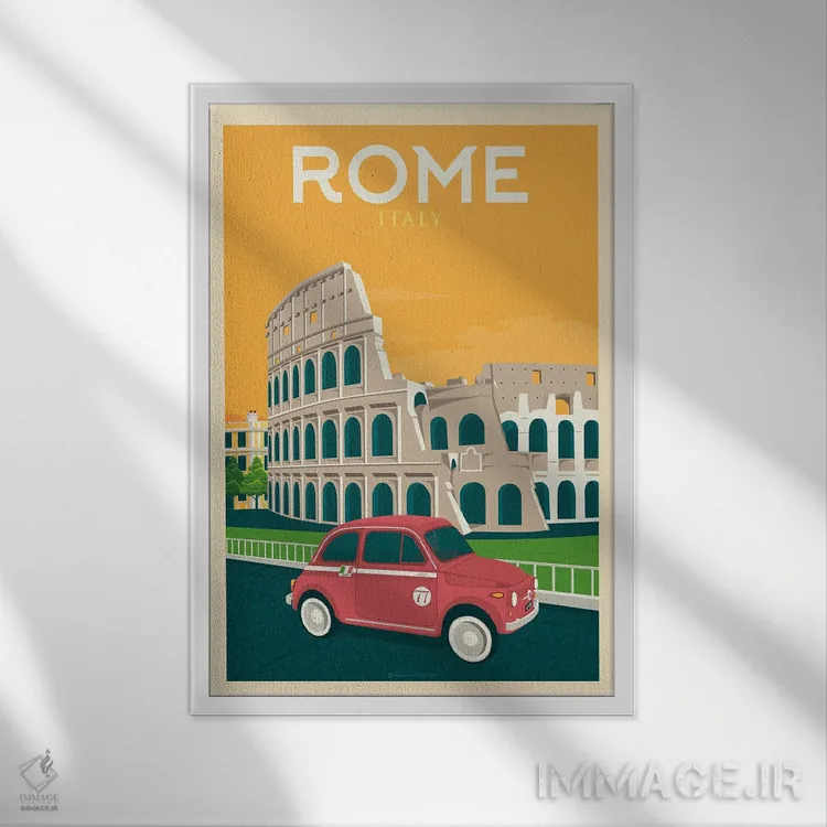این اثر با حس این اثر و پرداختِ هنری، برای دکورهای روشن و مینیمال عالی جواب میدهد: «پوستر سفر رم ایتالیا» اثرِ «اولا هوپ تراول پوسترز (پوسترهای مسافرتی؛ استودیو هنری)».