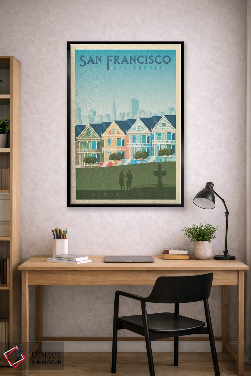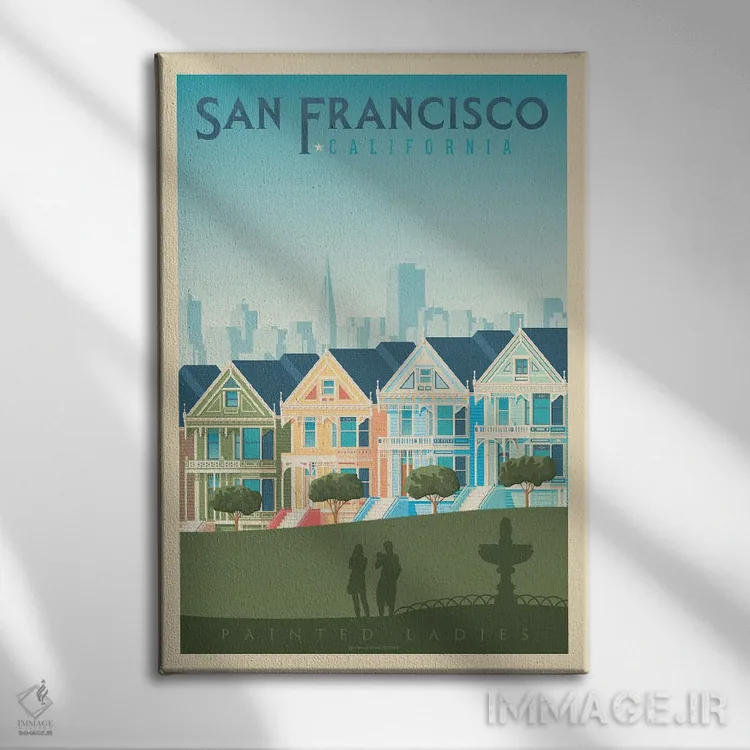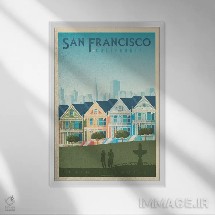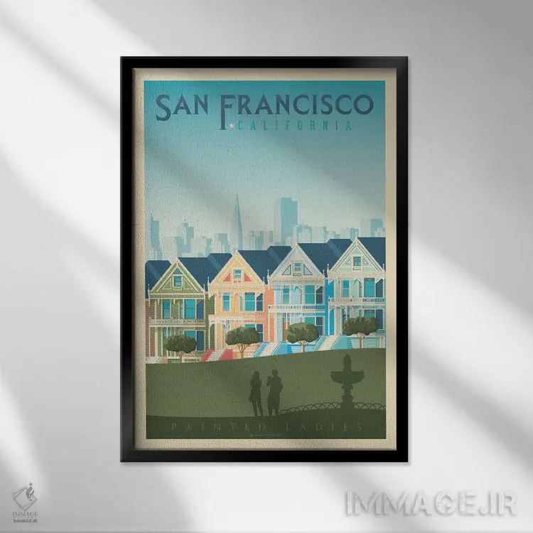 اگر دیوارِ راهرو یا گوشهی مطالعه نیاز به یک قاب خوشانرژی دارد، «پوستر سفر به خانههای رنگی سان فرانسیسکو (Painted Ladies)» اثرِ «اولا هوپ تراول پوسترز (پوسترهای مسافرتی؛ استودیو هنری)» با تم این اثر گزینهی مناسبی است.