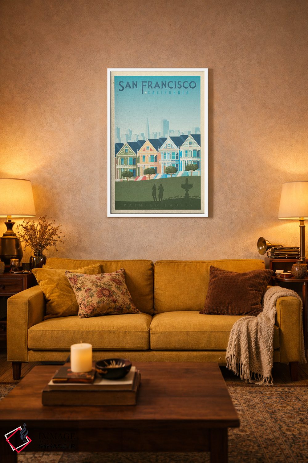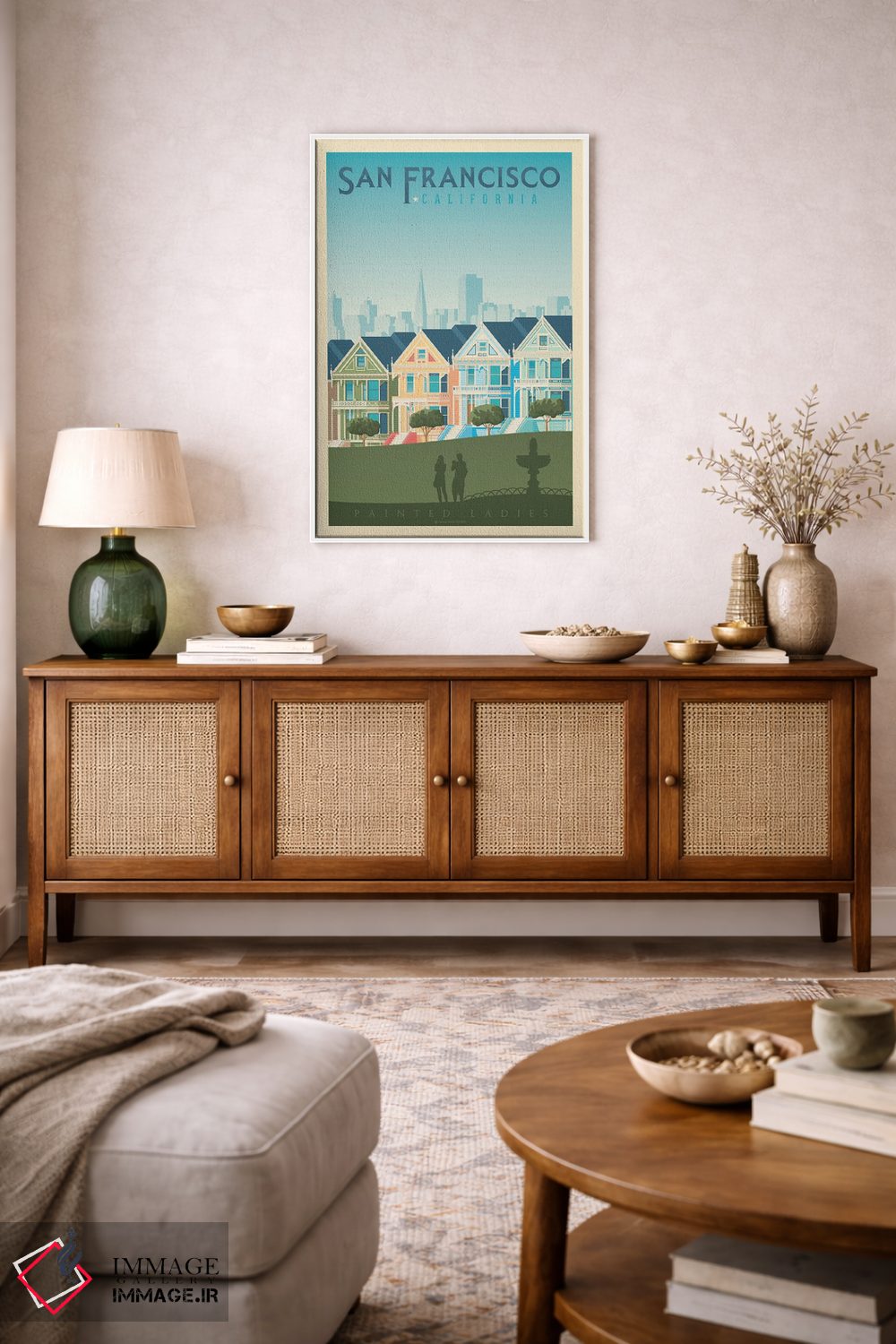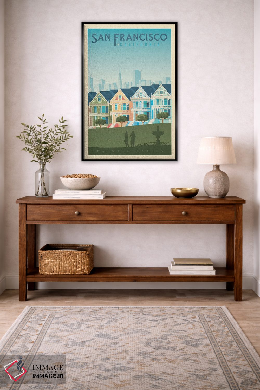 اگر دیوارِ راهرو یا گوشهی مطالعه نیاز به یک قاب خوشانرژی دارد، «پوستر سفر به خانههای رنگی سان فرانسیسکو (Painted Ladies)» اثرِ «اولا هوپ تراول پوسترز (پوسترهای مسافرتی؛ استودیو هنری)» با تم این اثر گزینهی مناسبی است.