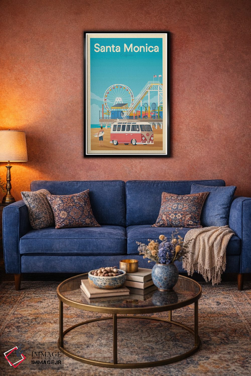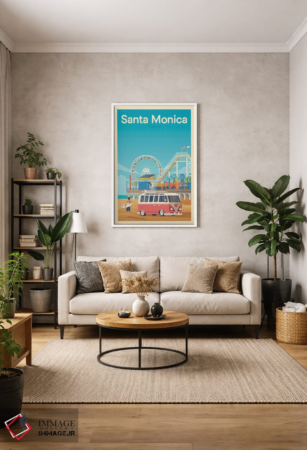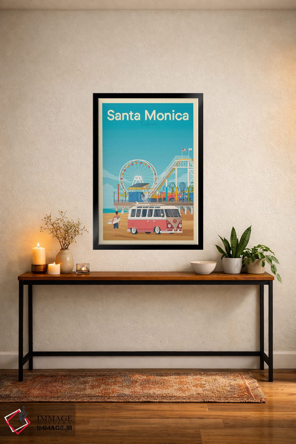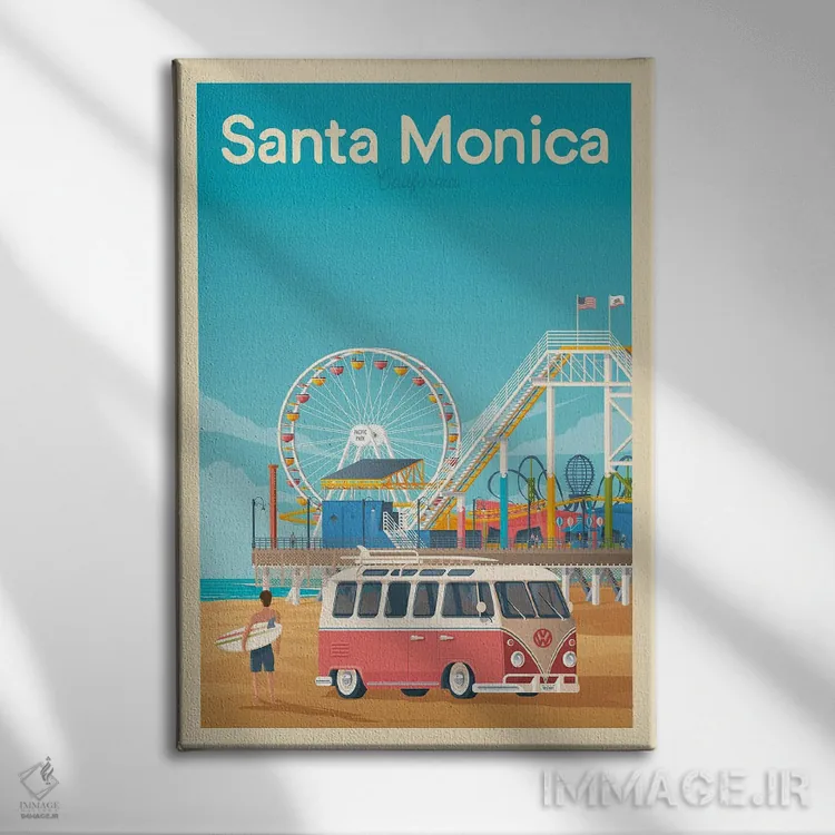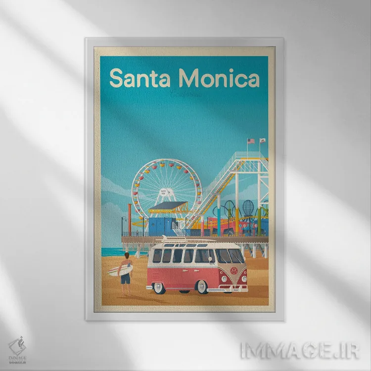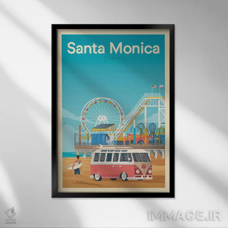 تابلو مدرن پوستر سفر سانتا مونیکا کالیفرنیا اثر اولا هوپ تراول پوسترز