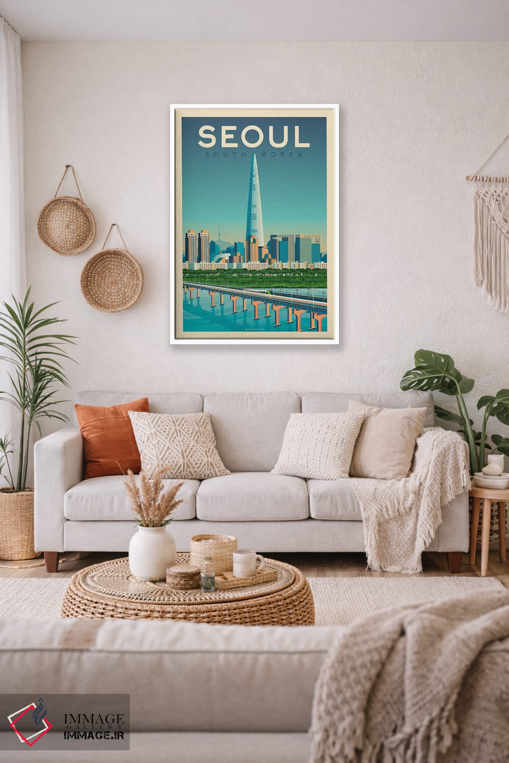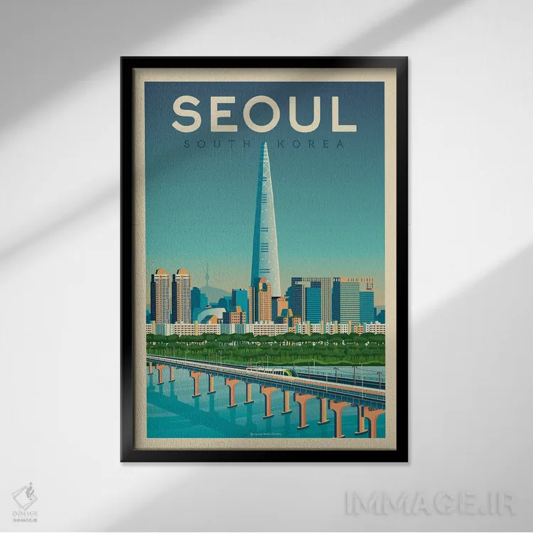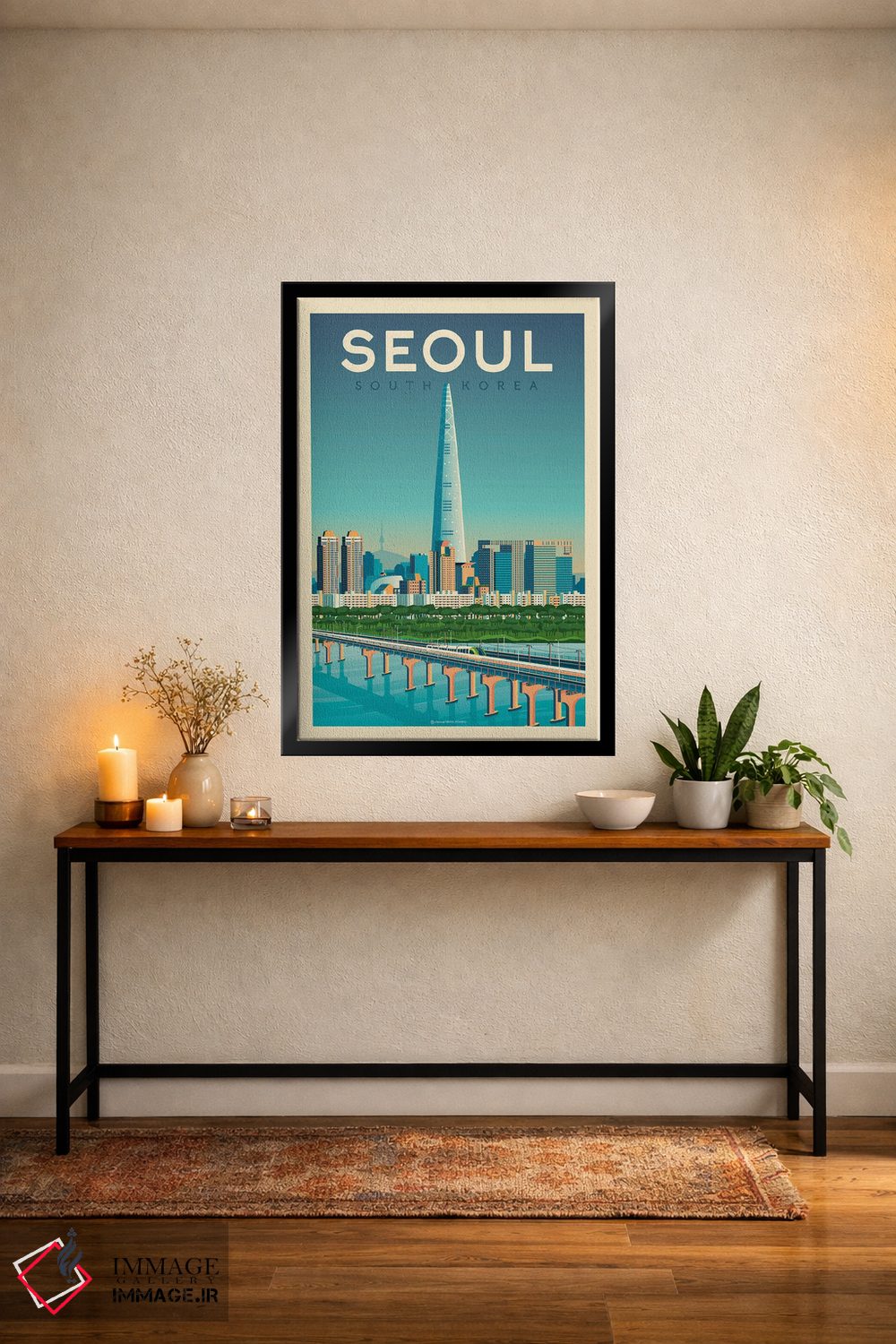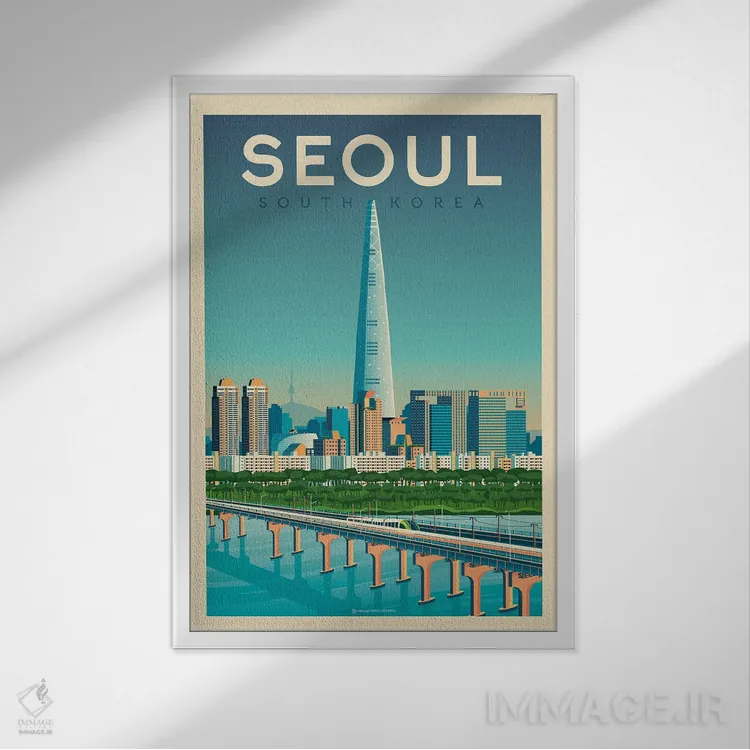 «پوستر سفر سئول کره جنوبی» اثرِ «اولا هوپ تراول پوسترز (پوسترهای مسافرتی؛ استودیو هنری)» از آن تابلوهاییست که هم لطیف است، هم دکورپذیر؛ مخصوصاًً با موضوعِ این اثر.