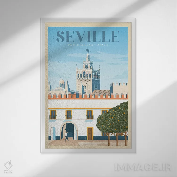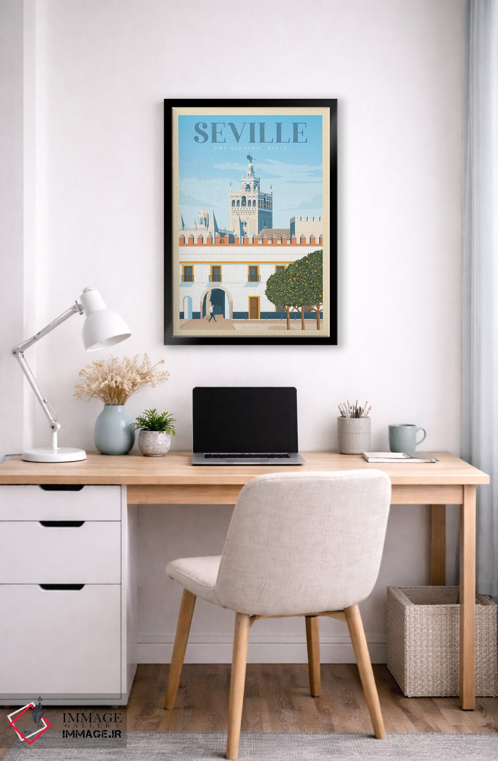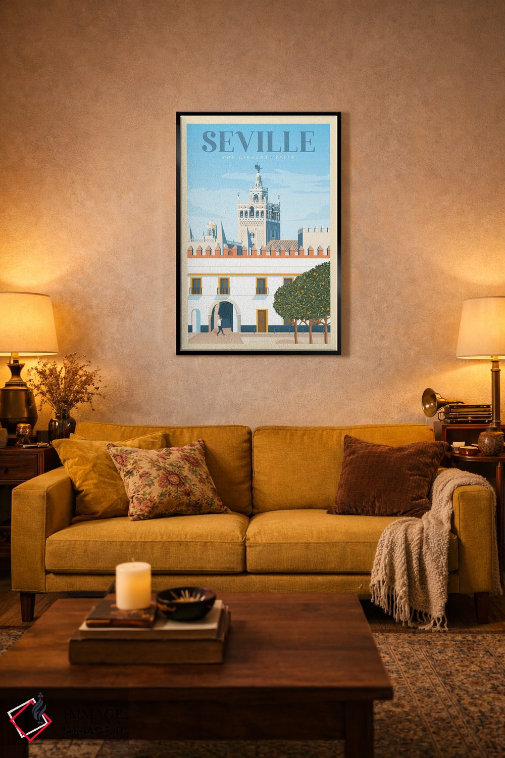 برای ترکیب با گلدانهای سبز، پارچههای ساده و نور گرم، «پوستر سفر سویل آندلسیا» اثرِ «اولا هوپ تراول پوسترز (پوسترهای مسافرتی؛ استودیو هنری)» با موضوعِ این اثر انتخابی هماهنگ است.